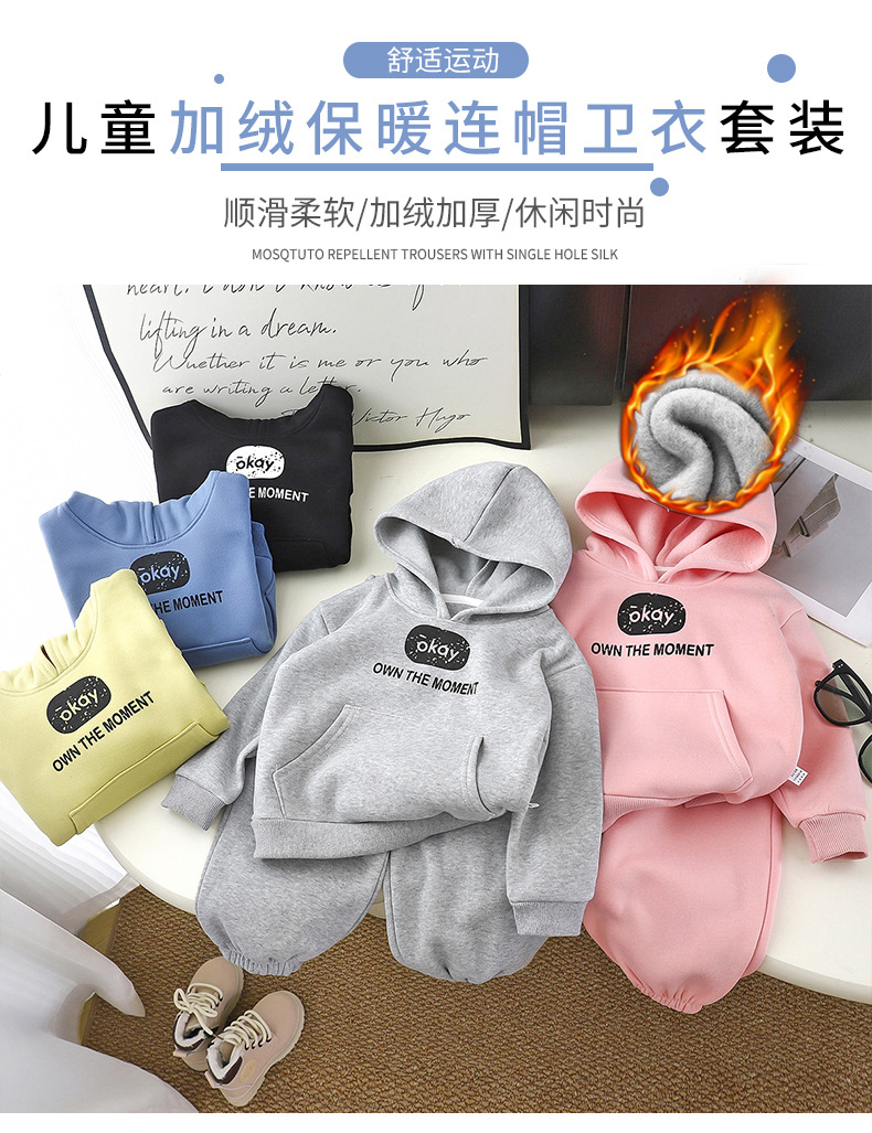 Детский велюровый спортивный костюм осень-зима 2025, утолщённый, с капюшоном для мальчиков и девочек