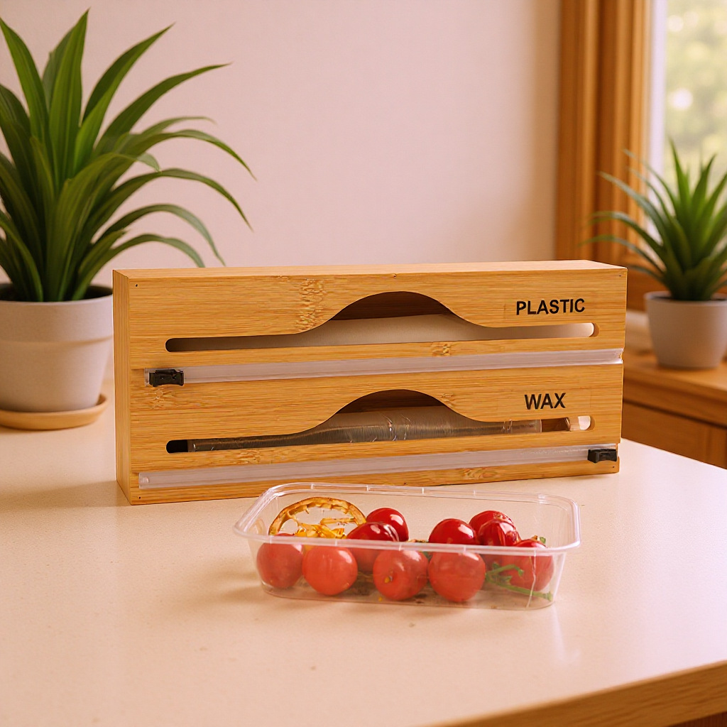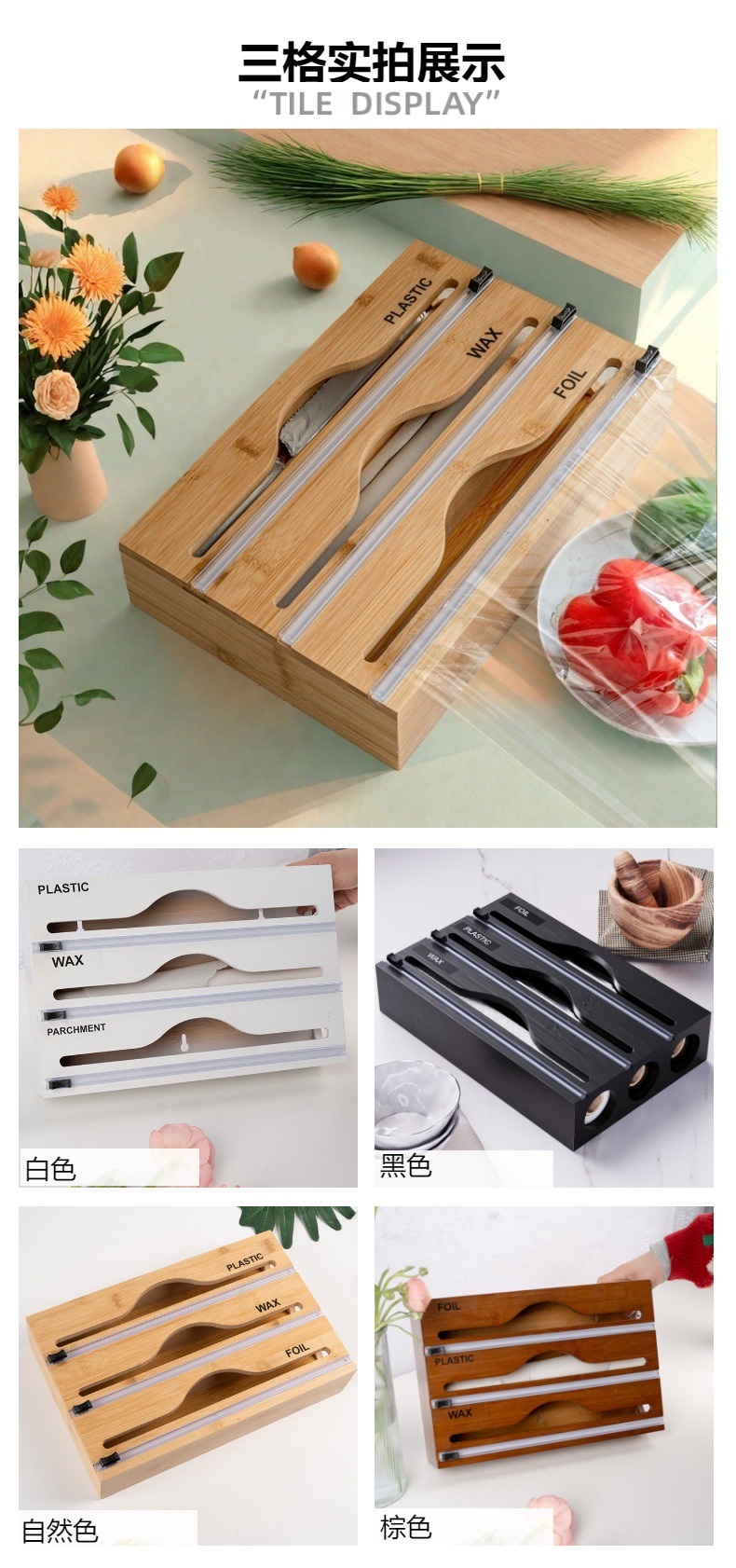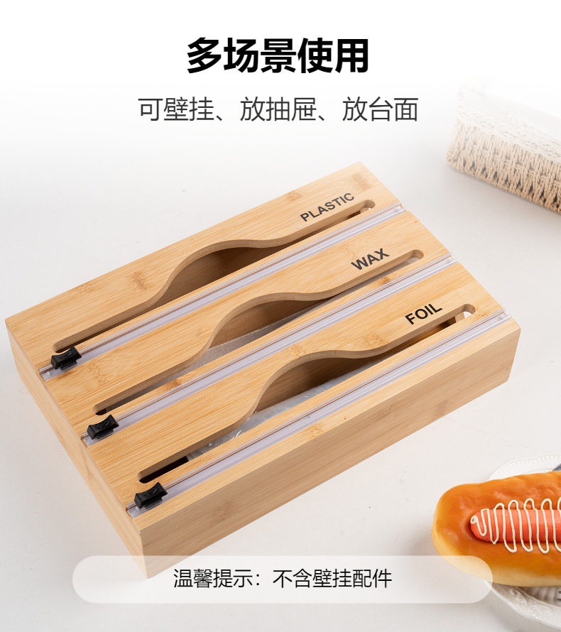 Новый экологически чистый бамбуковый кухонный резак для пластиковой пленки, коробка для хранения фольги, настенная коробка для хранения «три в одном»