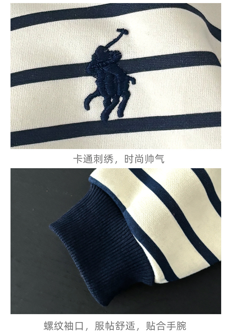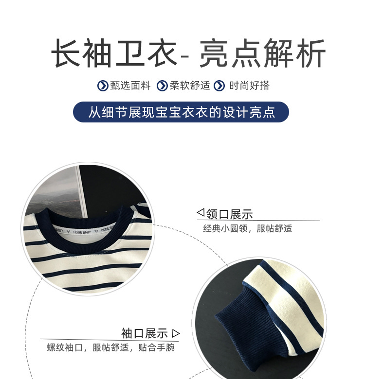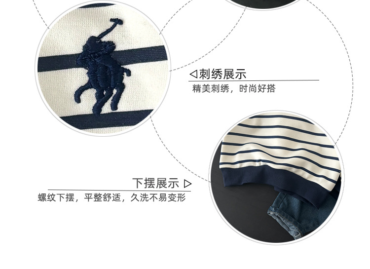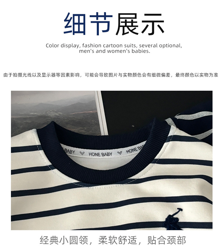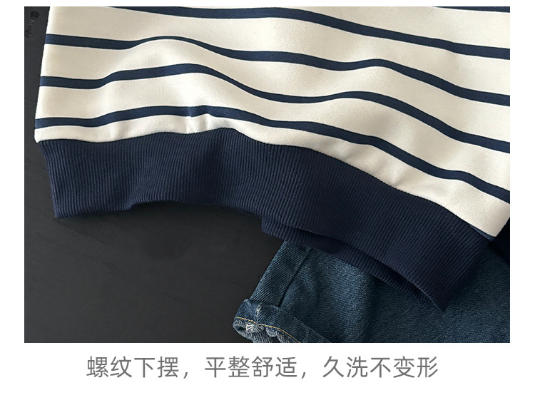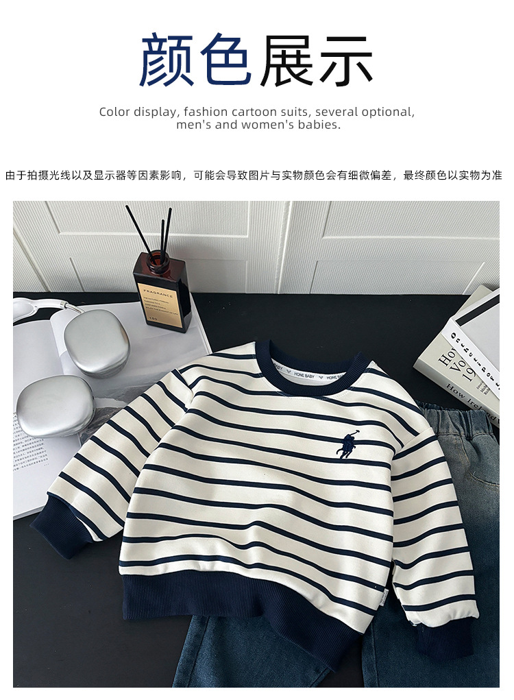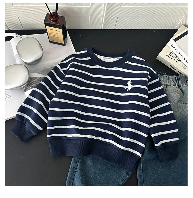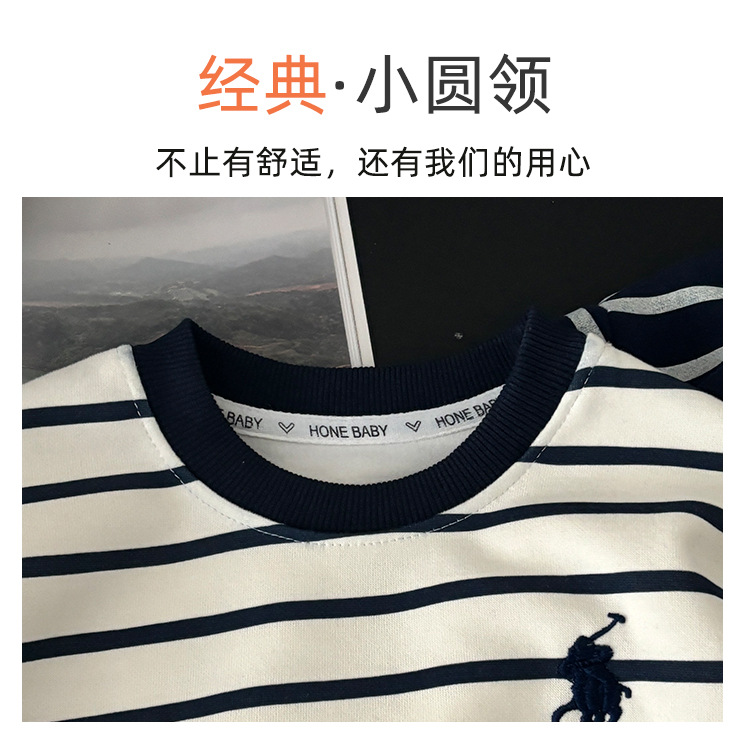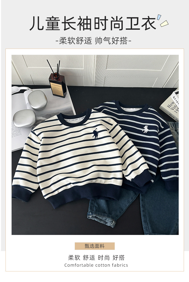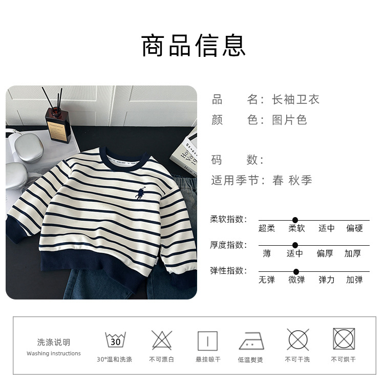 2025新款刺绣男女童条纹卫衣中小童时尚圆领套头长袖韩版上衣