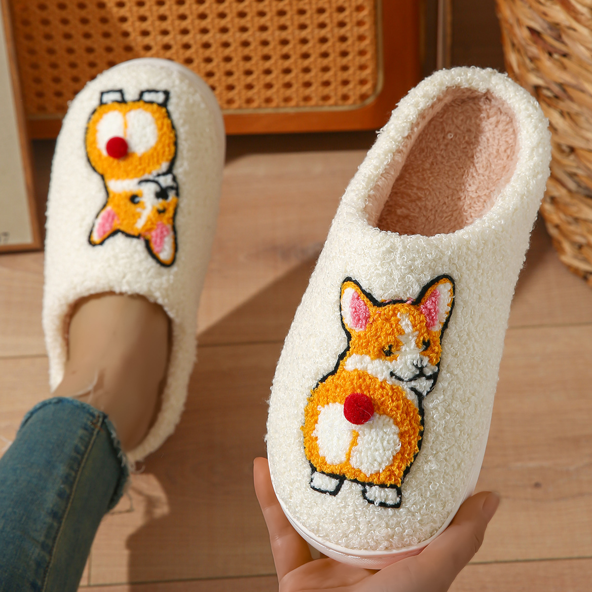 日本卡通腊肠狗毛毛拖鞋女高颜值情侣防滑包头休闲棉拖鞋可外穿潮