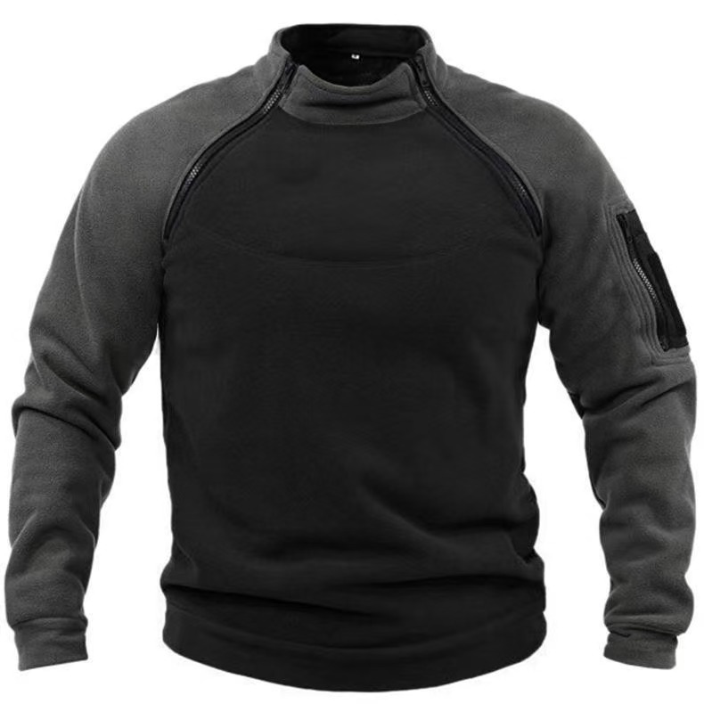 跨境外贸男士立领拉链长袖战术卫衣套头摇粒绒保暖外套
