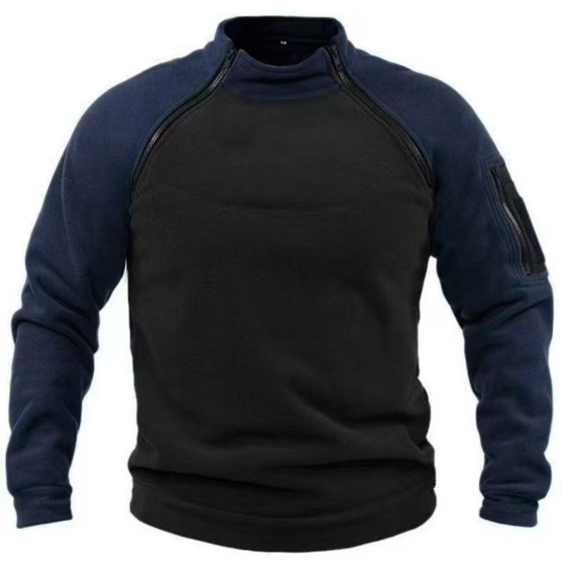 Мужская тактическая толстовка с воротником-стойкой, длинными рукавами и молнией, из полярной флисовой ткани, для трансграничной внешней торговли