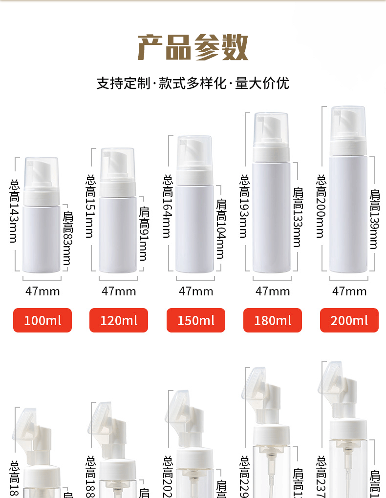 100 мл; прозрачный флакон + помпа для мусса; ПЭТ; 100 мл; белый флакон + помпа для мусса; ПЭТ; 100 мл; прозрачный флакон + силиконовая щеточка; ПЭТ; 100 мл; белый флакон + силиконовая кисточка; ПЭТ; 120 мл; прозрачный флакон + помпа для мусса; ПЭТ; 120 мл; белый флакон + помпа для мусса; ПЭТ; 120 мл; прозрачный флакон + силиконовая щеточка; ПЭТ; 120 мл; белый флакон + силиконовая щеточка; ПЭТ; 150 мл; прозрачный флакон + помпа для мусса; ПЭТ; 150 мл; белый флакон + помпа для мусса; ПЭТ; 150 мл; прозрачная бутылка + силиконовая щеточка; ПЭТ; 150 мл; белый флакон + силиконовая щеточка; ПЭТ; 180 мл; прозрачный флакон + помпа для мусса; ПЭТ; 180 мл; белый флакон + помпа для мусса; ПЭТ; 180 мл; прозрачная бутылка + силиконовая щеточка; ПЭТ; 180 мл; белая бутылка + силиконовая щеточка; ПЭТ; 200 мл; прозрачная бутылка + помпа для мусса; ПЭТ; 200 мл; белый флакон + помпа для мусса; ПЭТ; 200 мл; прозрачная бутылка + силиконовая щеточка; ПЭТ; 200 мл; белая бутылка + силиконовая щеточка; ПЭТ