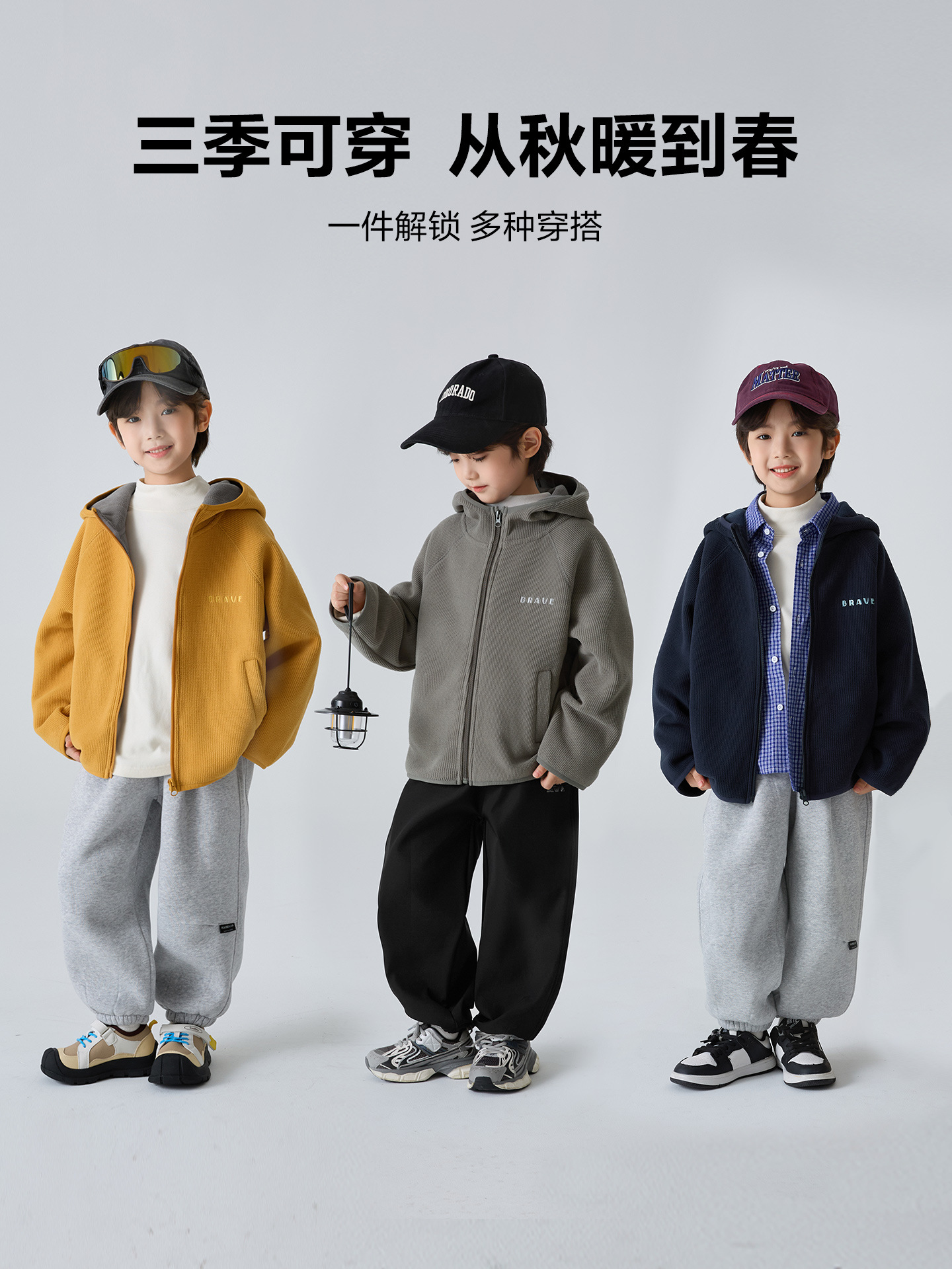 海妈家男童外套儿童摇粒绒2025新款男孩加绒保暖上衣厚秋冬童装潮