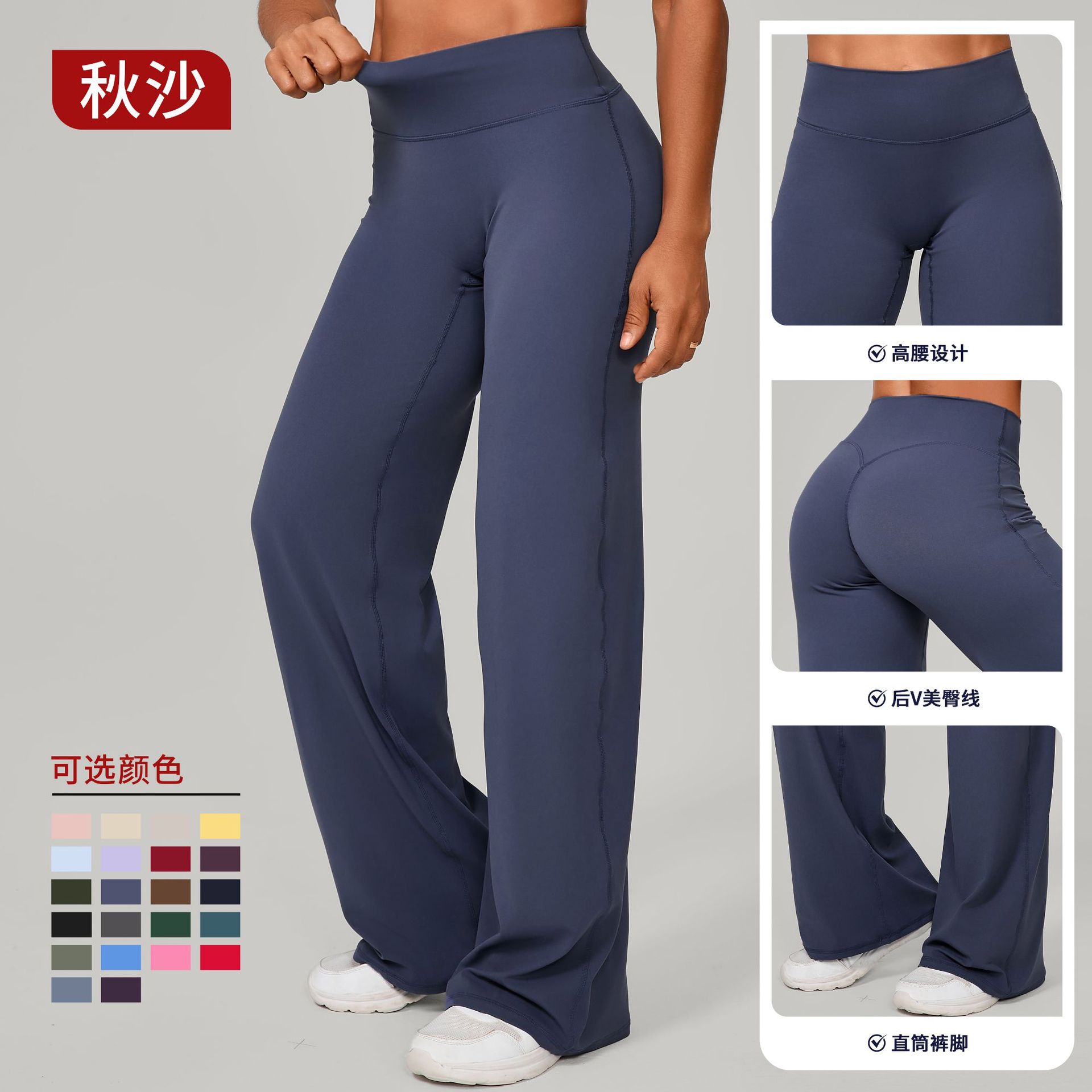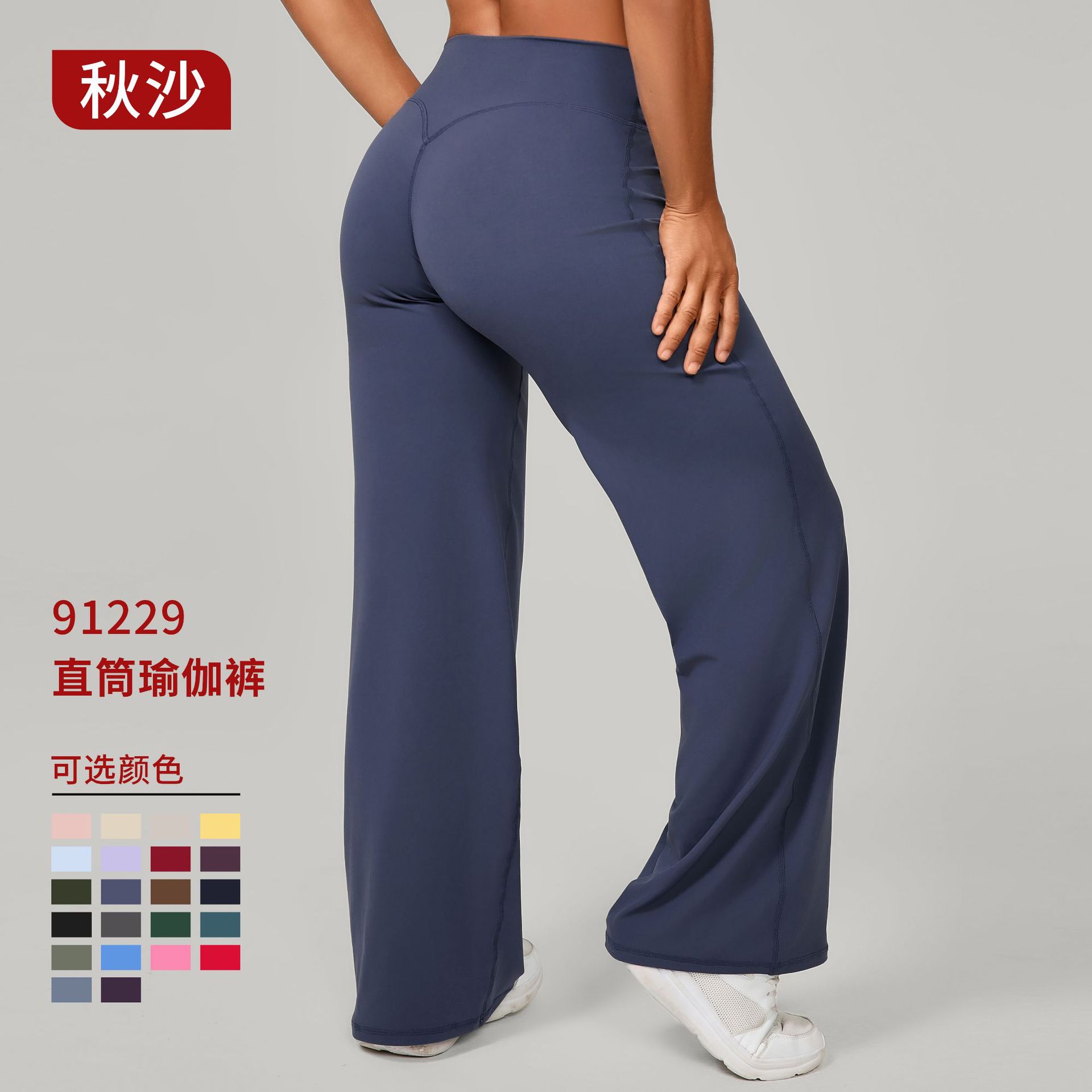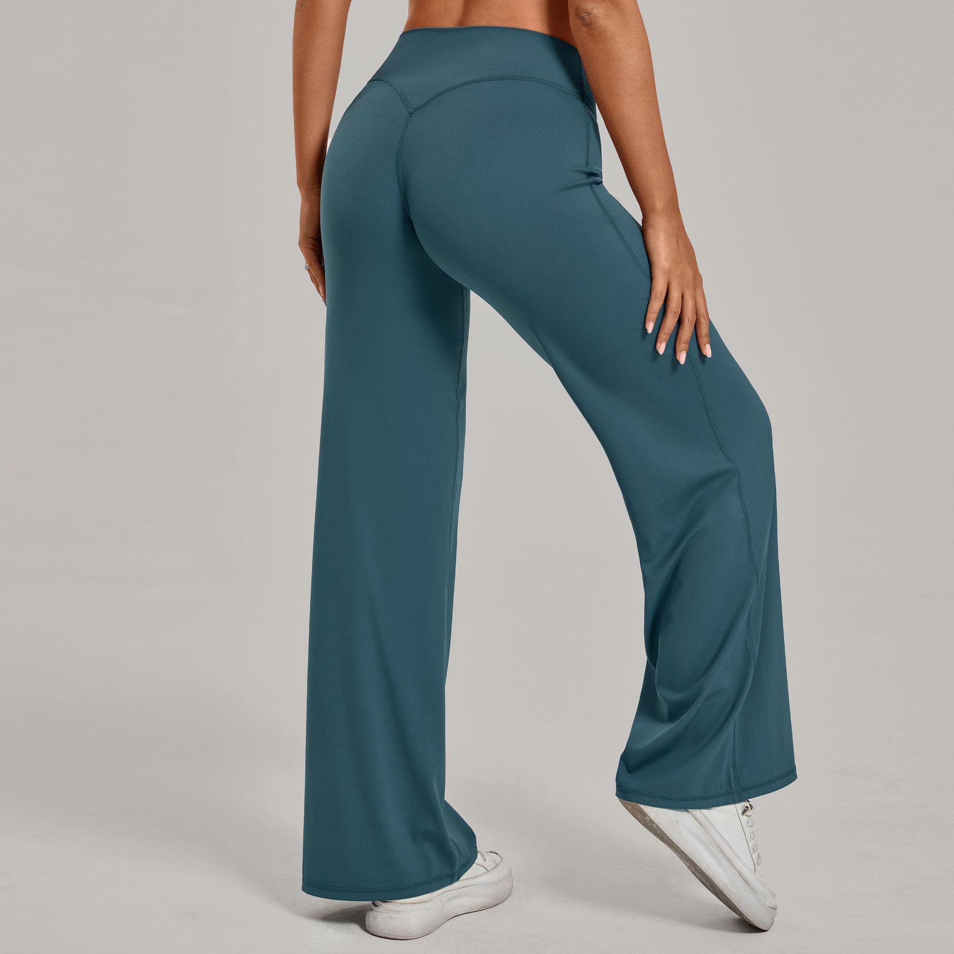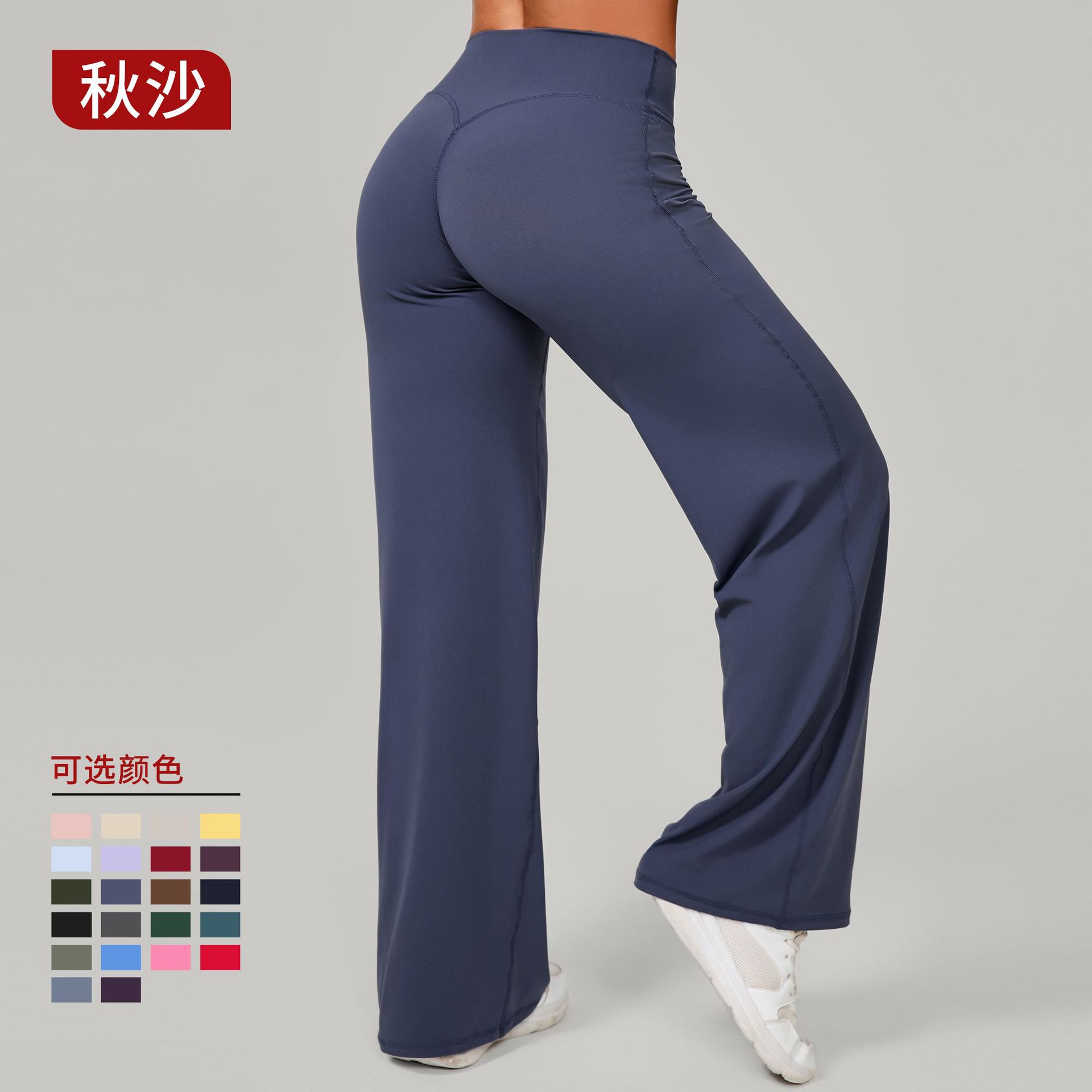 Осенние брюки для пилатеса с прямыми штанинами, универсальные свободные широкие брюки для йоги, бега, спорта и фитнеса, подчеркивающие изгибы бедер, длинные брюки 91229