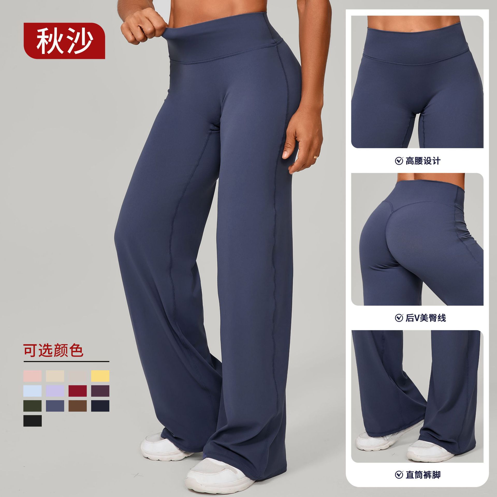 秋沙普拉提直筒瑜伽裤百搭宽松阔腿裤跑步运动健身显臀长裤91229