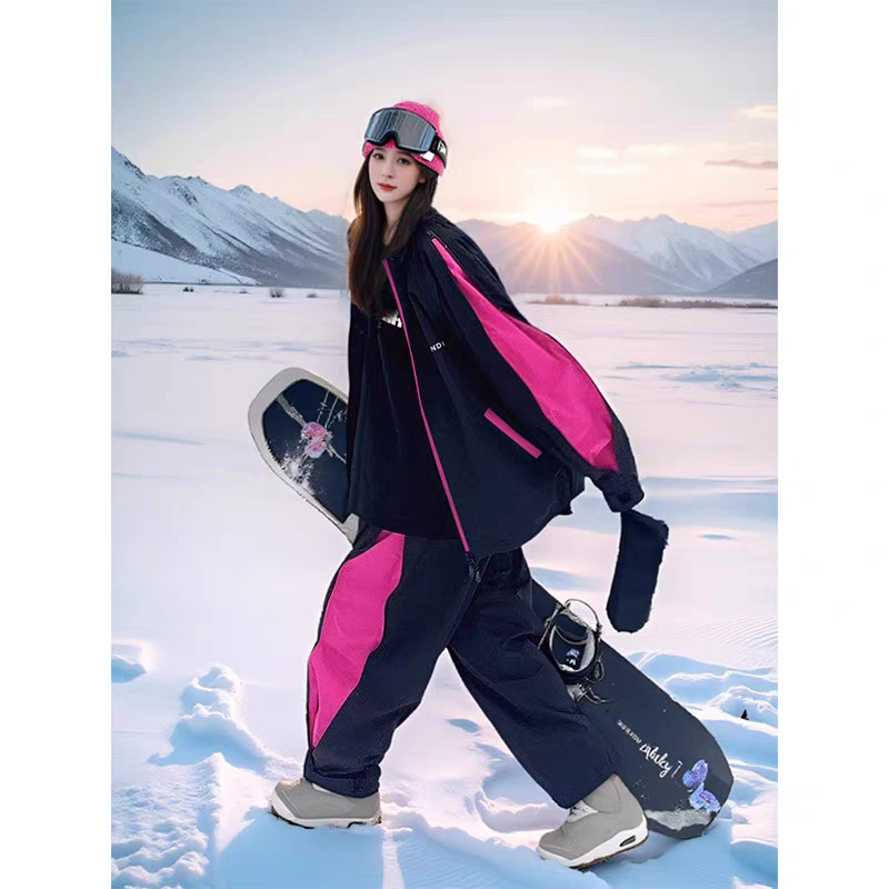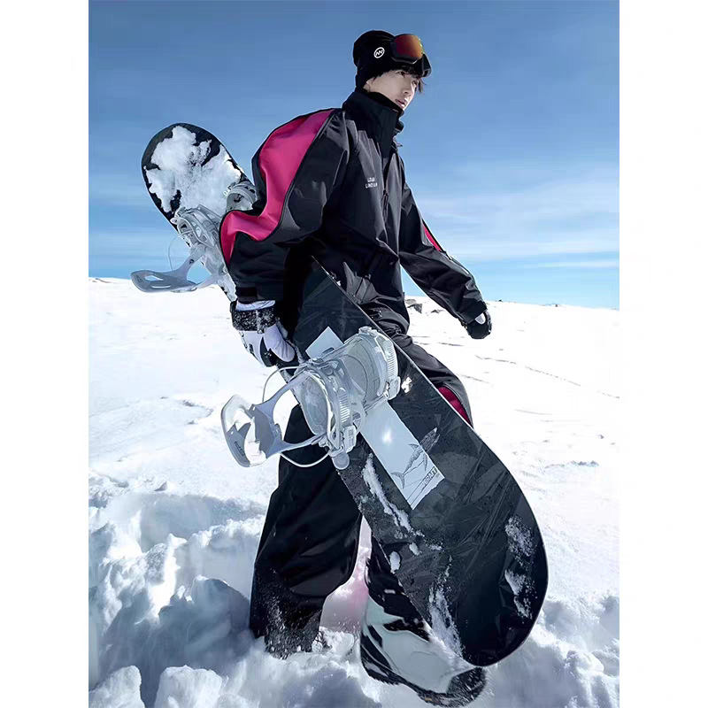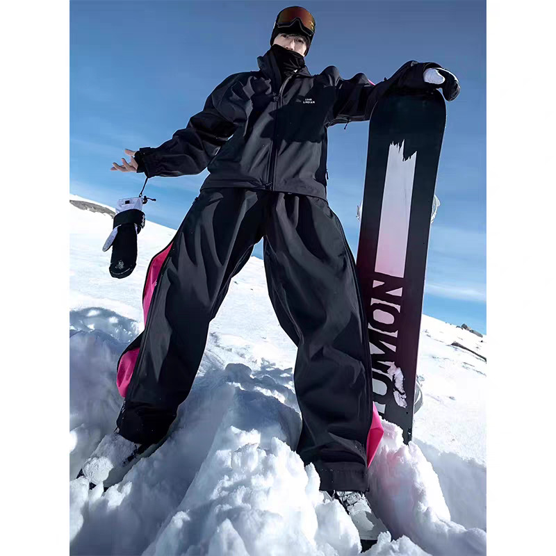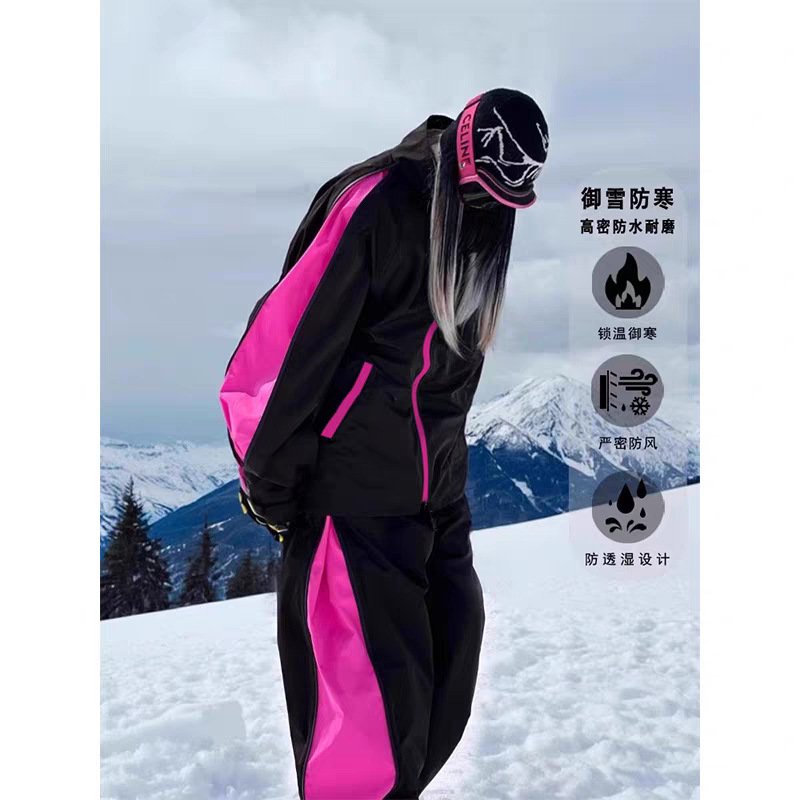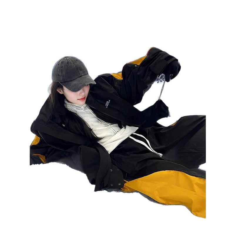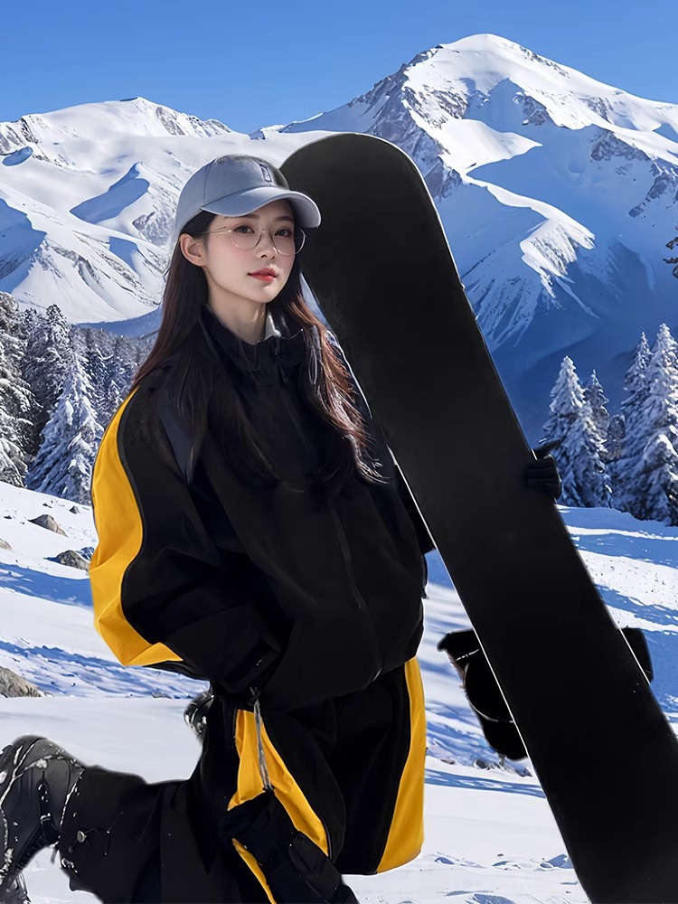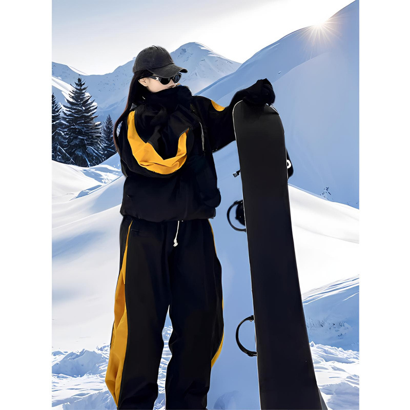 芙沿黄黑拼色滑雪服套装外套女2025秋冬新款小众防风单板雪服男