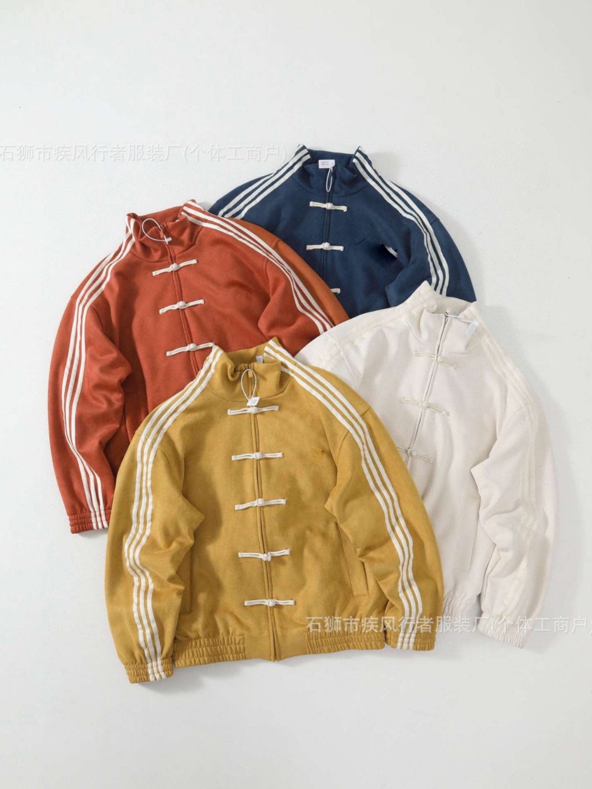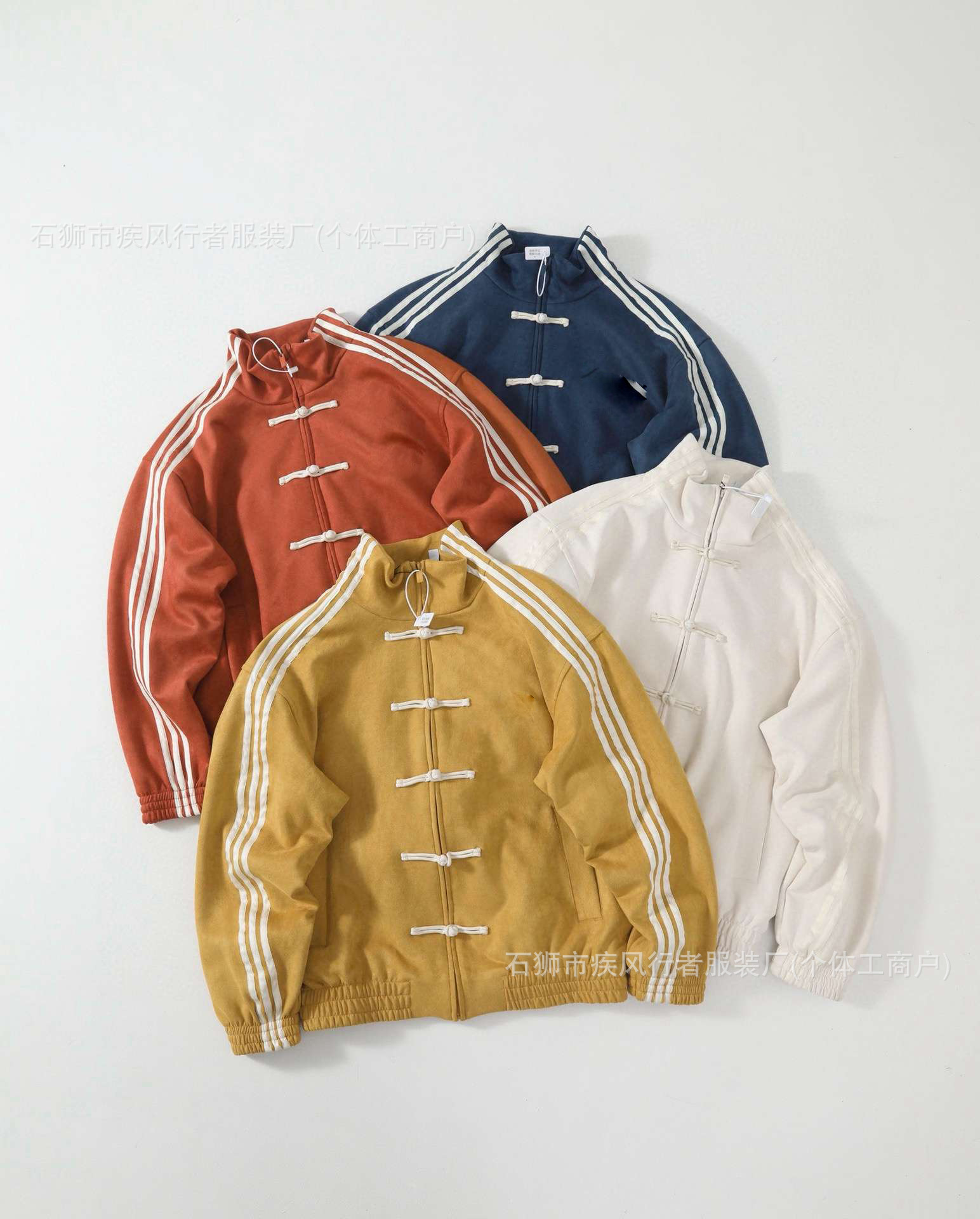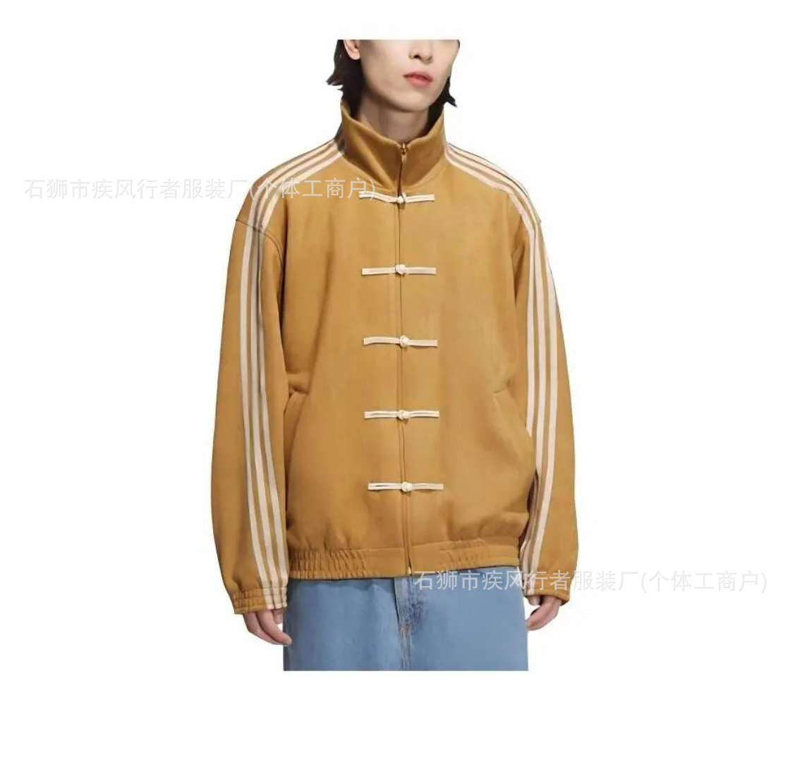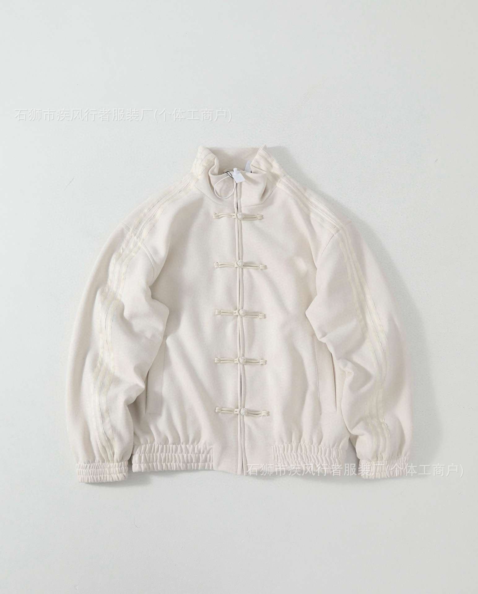 王安宇同款新中式唐装麂皮运动外套夹克盘扣夹克立领JZ9926三条杠