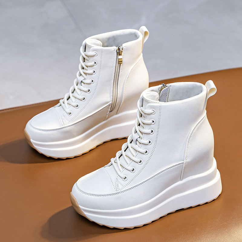 Женские новые ботинки на толстой подошве с клиновидным каблуком, короткие ботинки до середины икры, осень-зима 2025, противоскользящие.