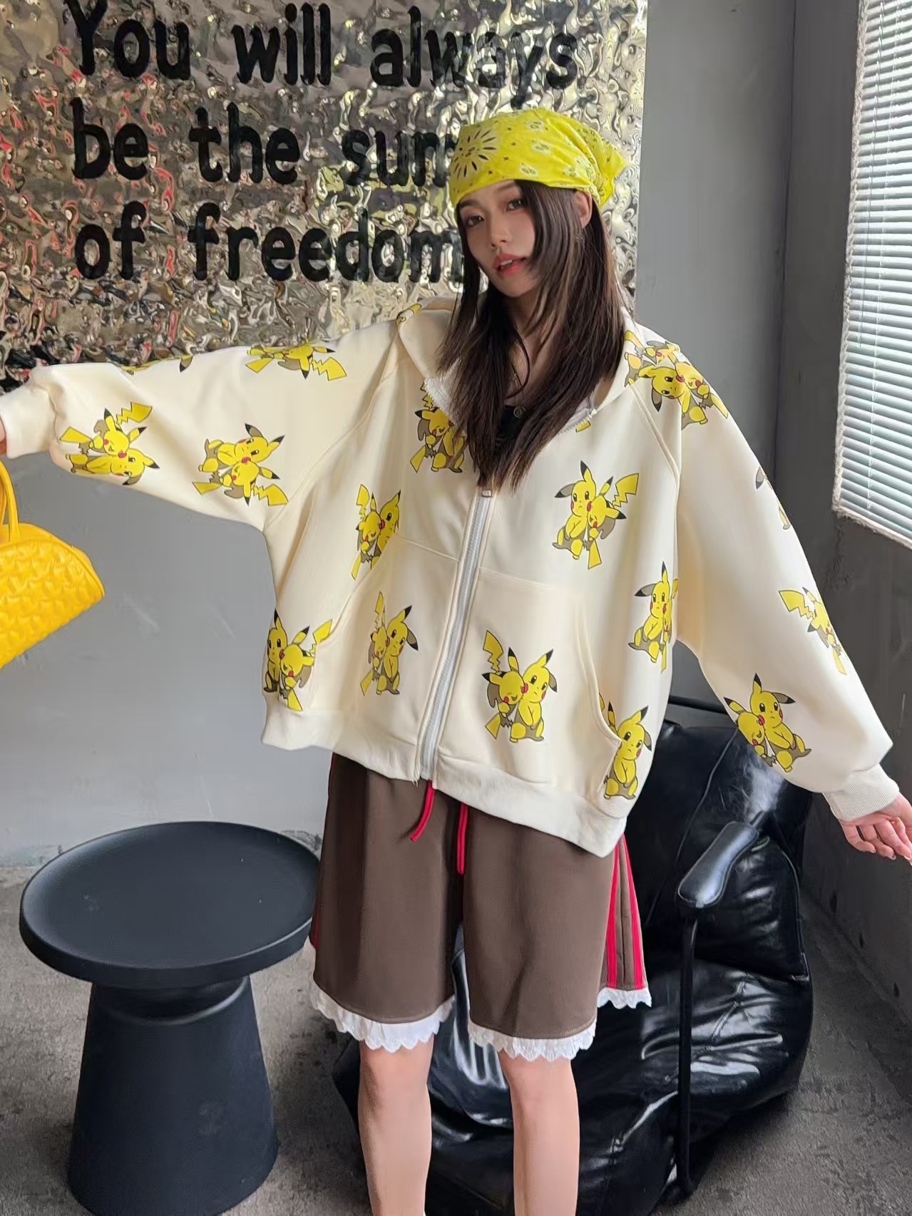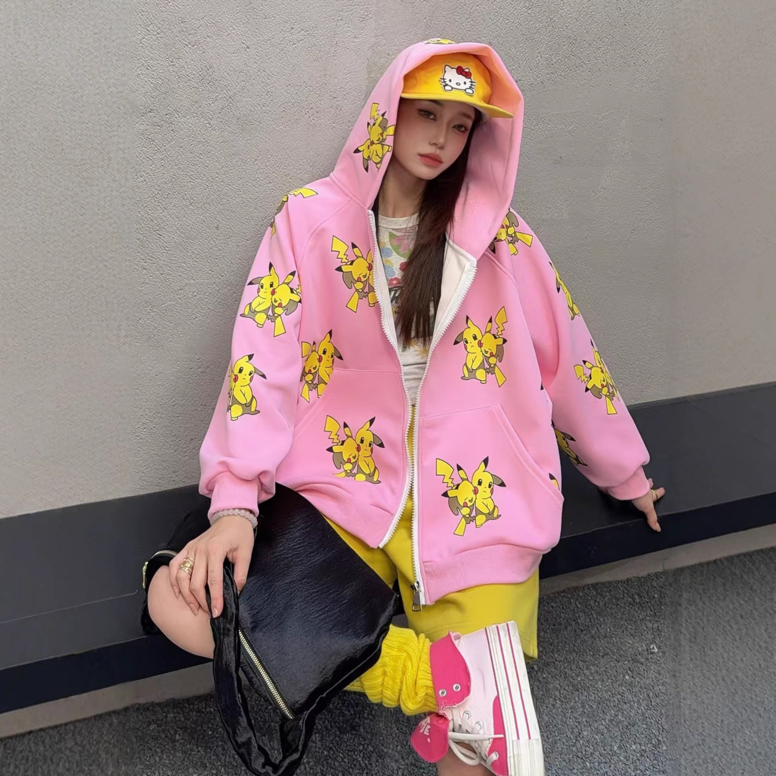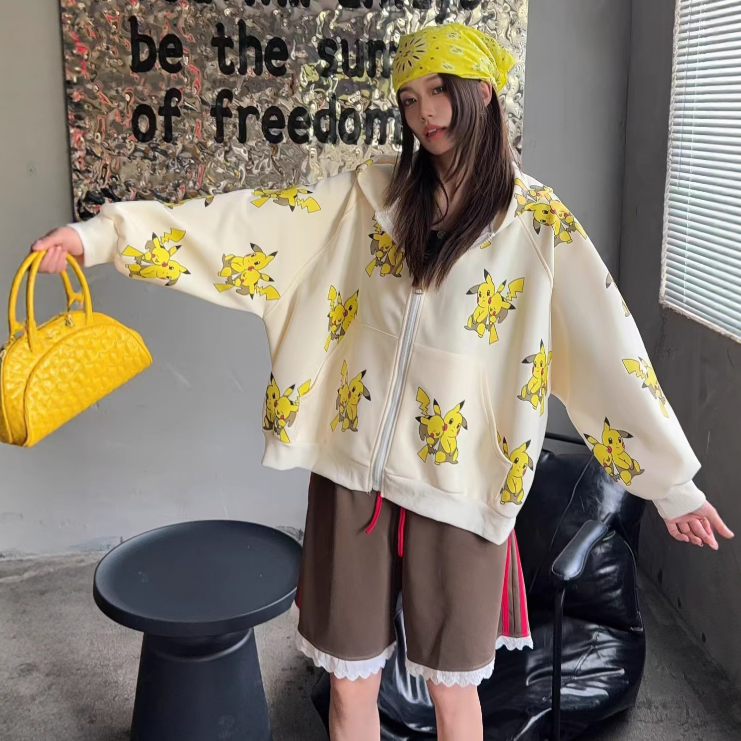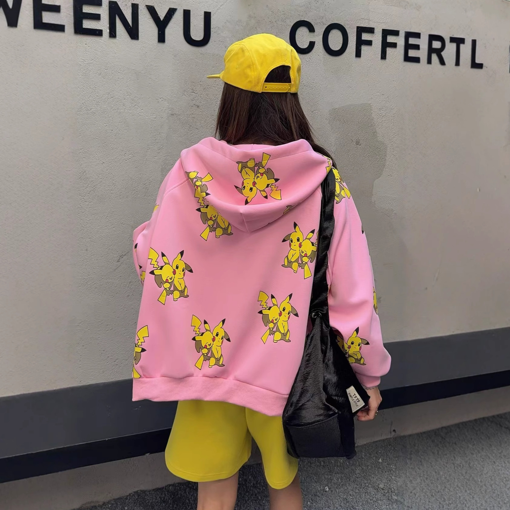 Милая толстовка с капюшоном с мультяшным принтом для женщин на весну и осень, свободный соленый или сладкий кардиган на молнии, шикарная корейская куртка