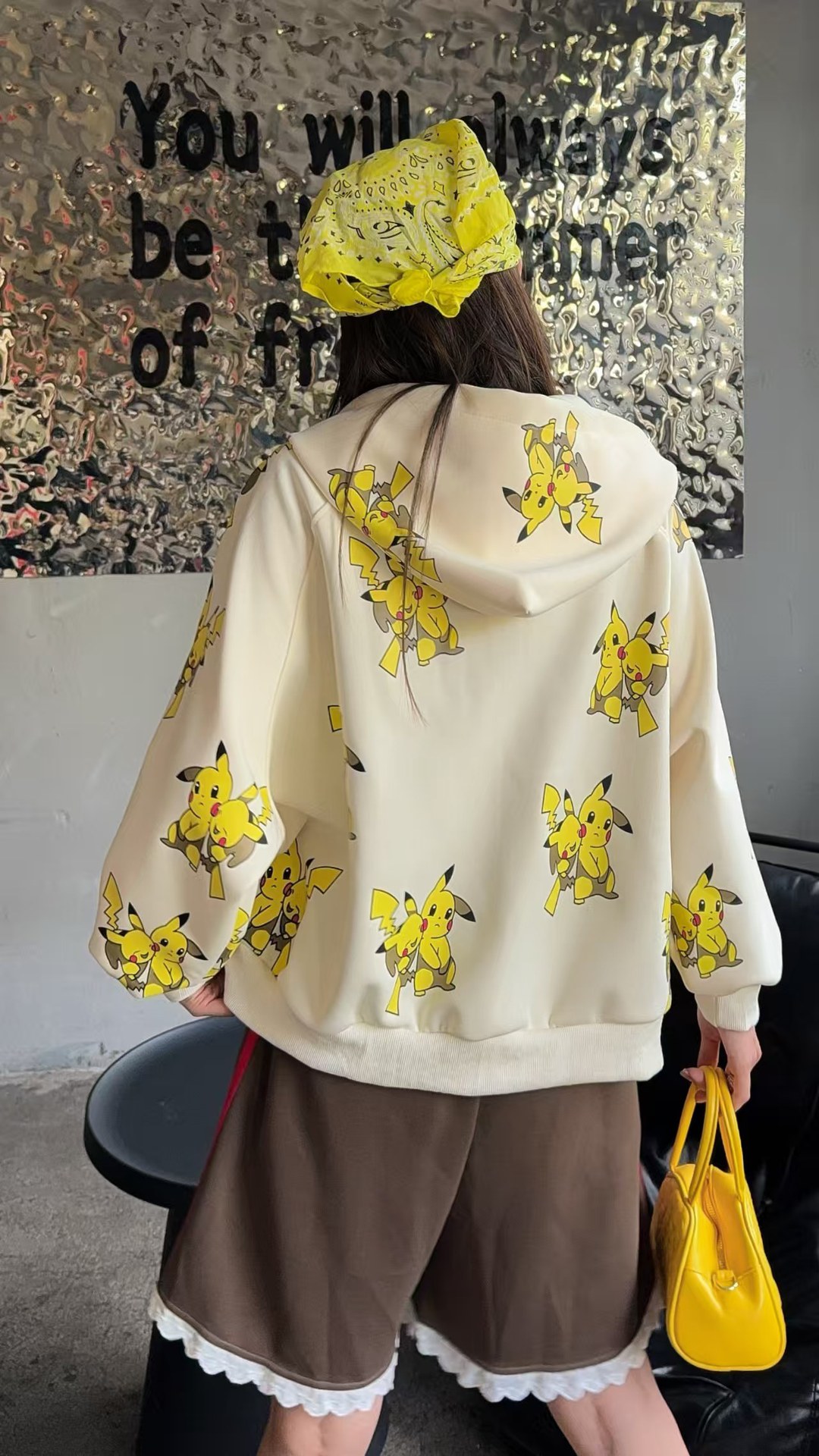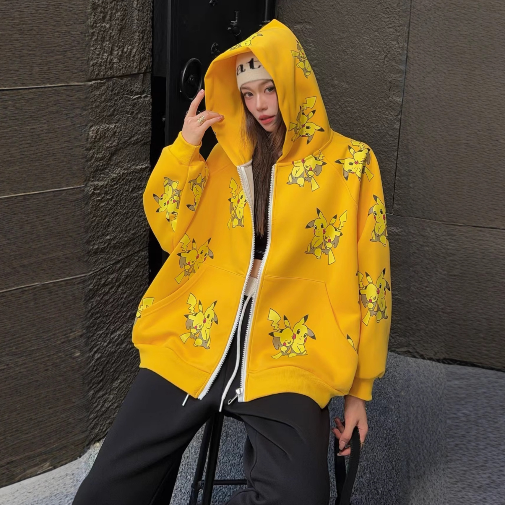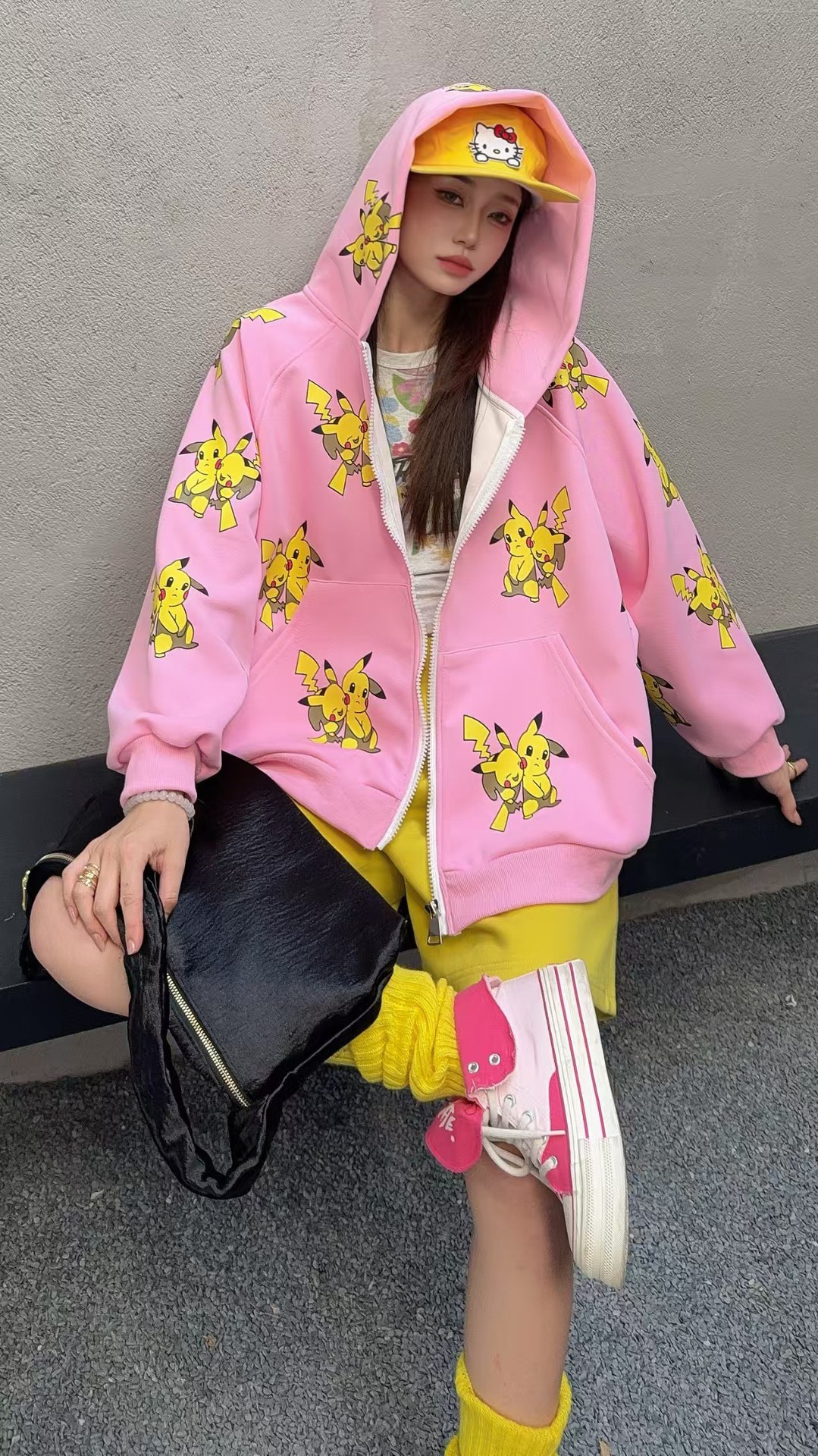 Милая толстовка с капюшоном с мультяшным принтом для женщин на весну и осень, свободный соленый или сладкий кардиган на молнии, шикарная корейская куртка