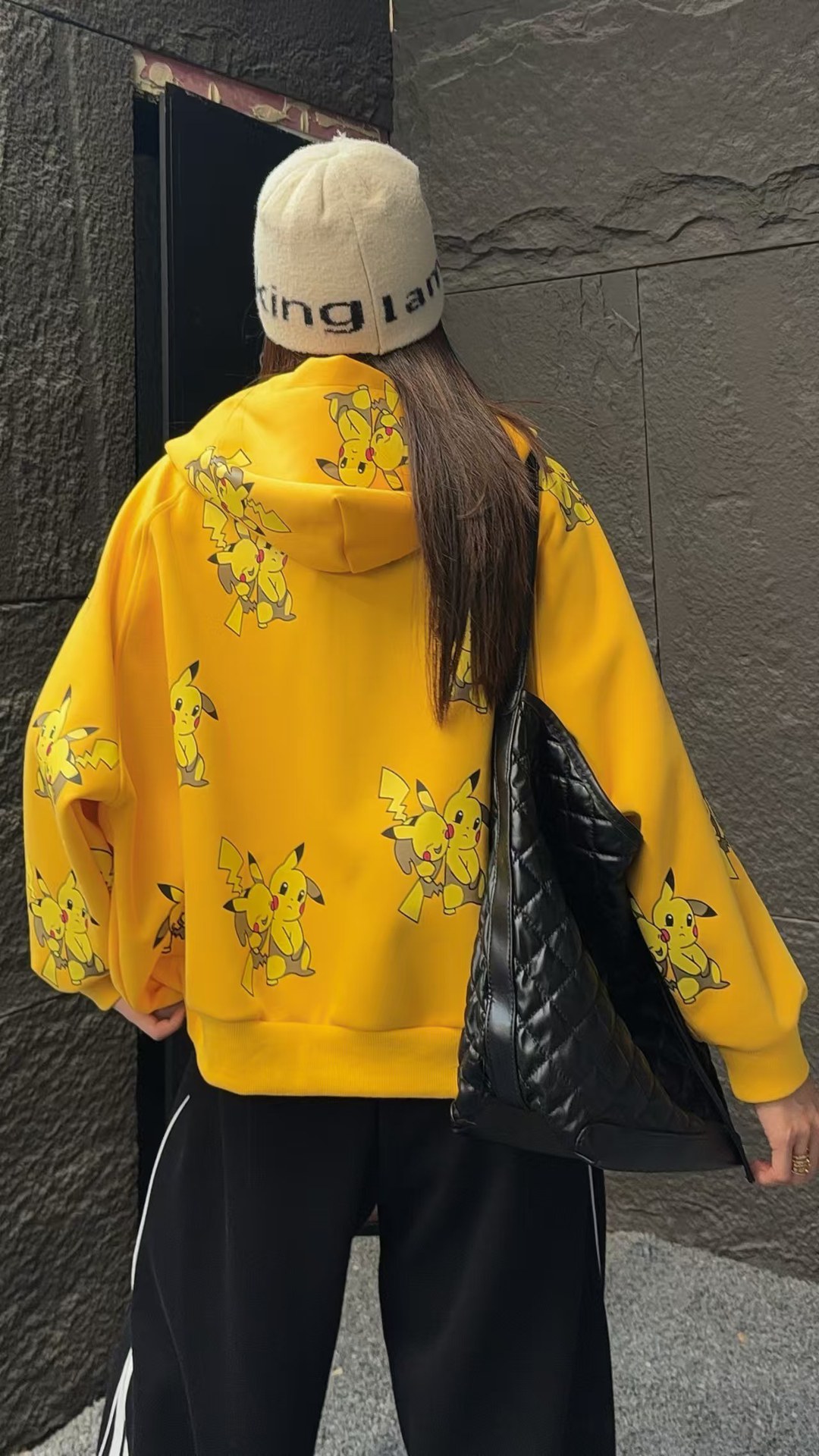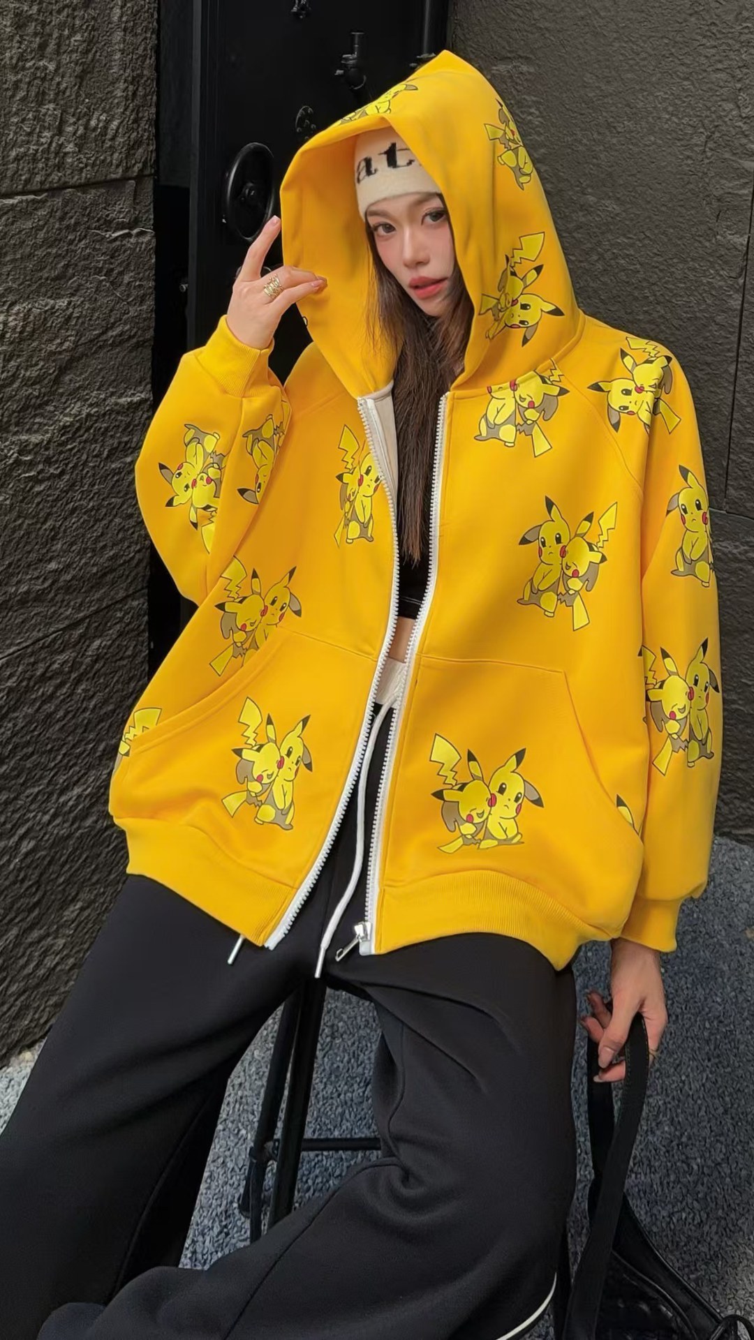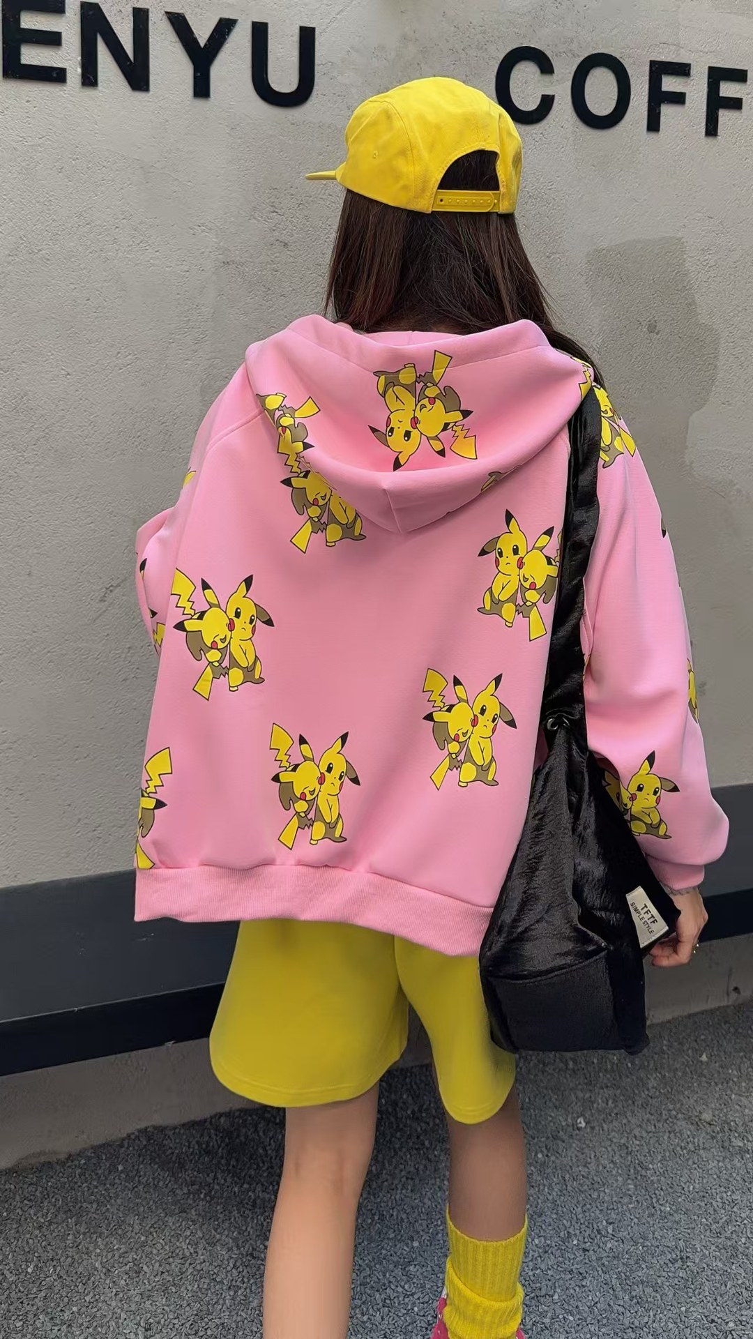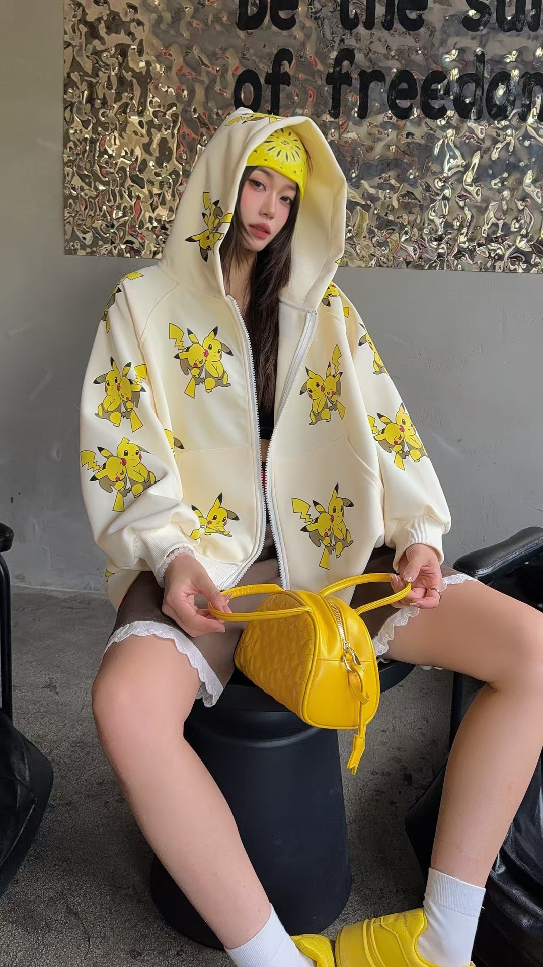 Милая толстовка с капюшоном с мультяшным принтом для женщин на весну и осень, свободный соленый или сладкий кардиган на молнии, шикарная корейская куртка