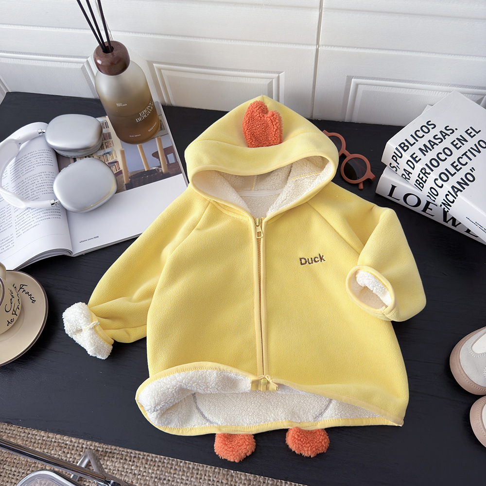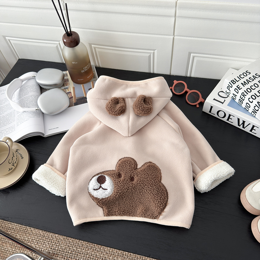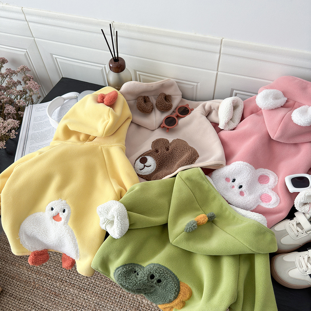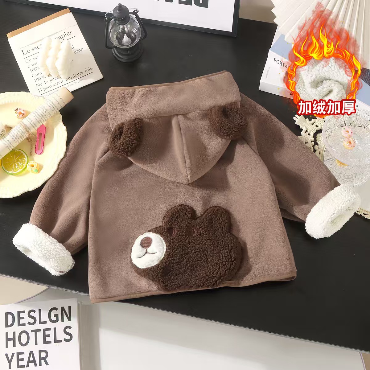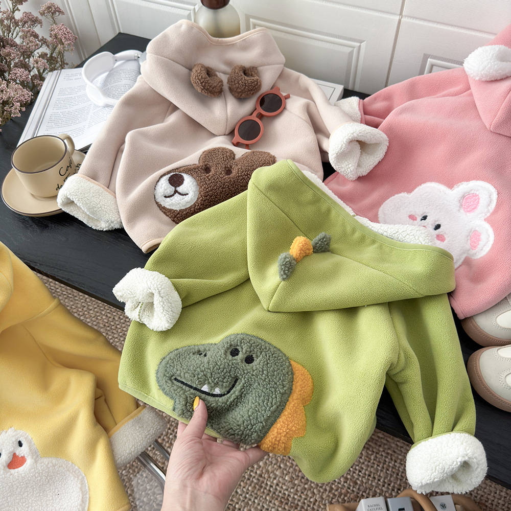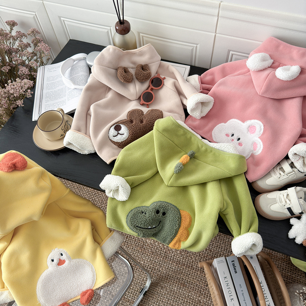 儿童外套加绒加厚韩版2025保暖洋气秋冬季卡通连帽毛绒小童外套