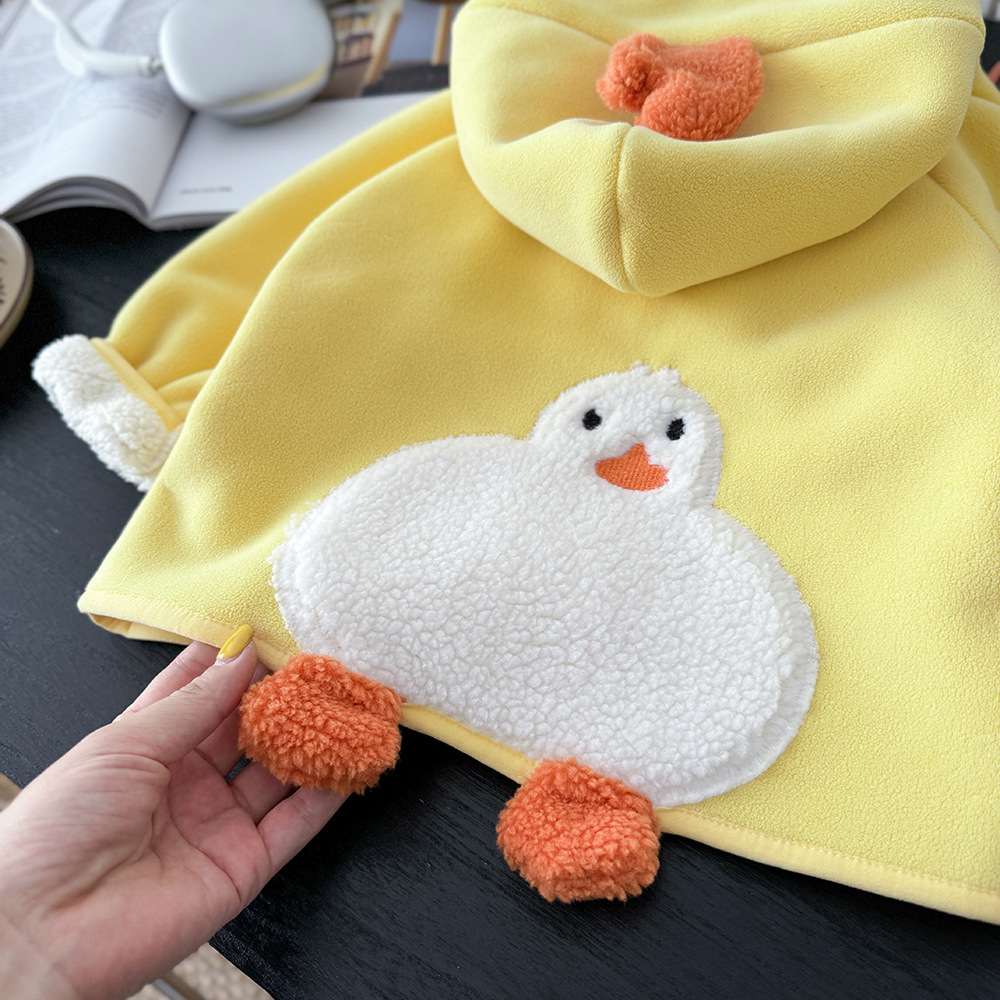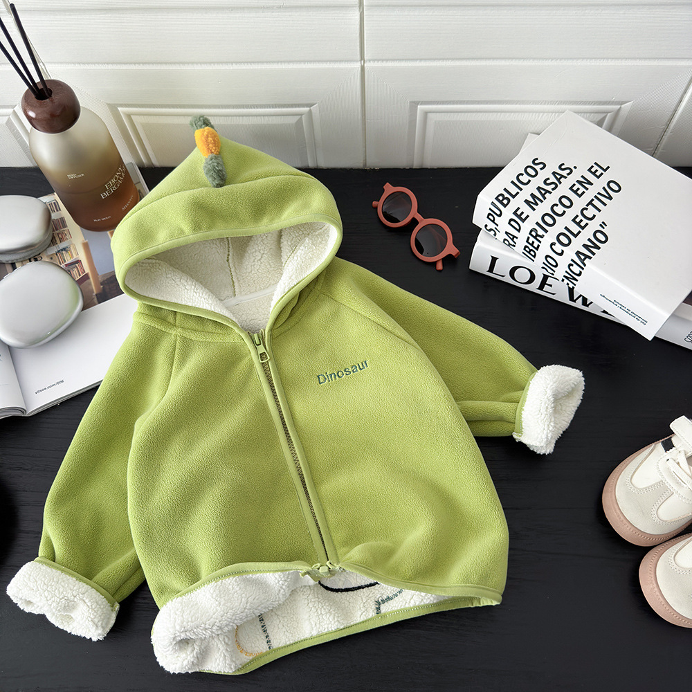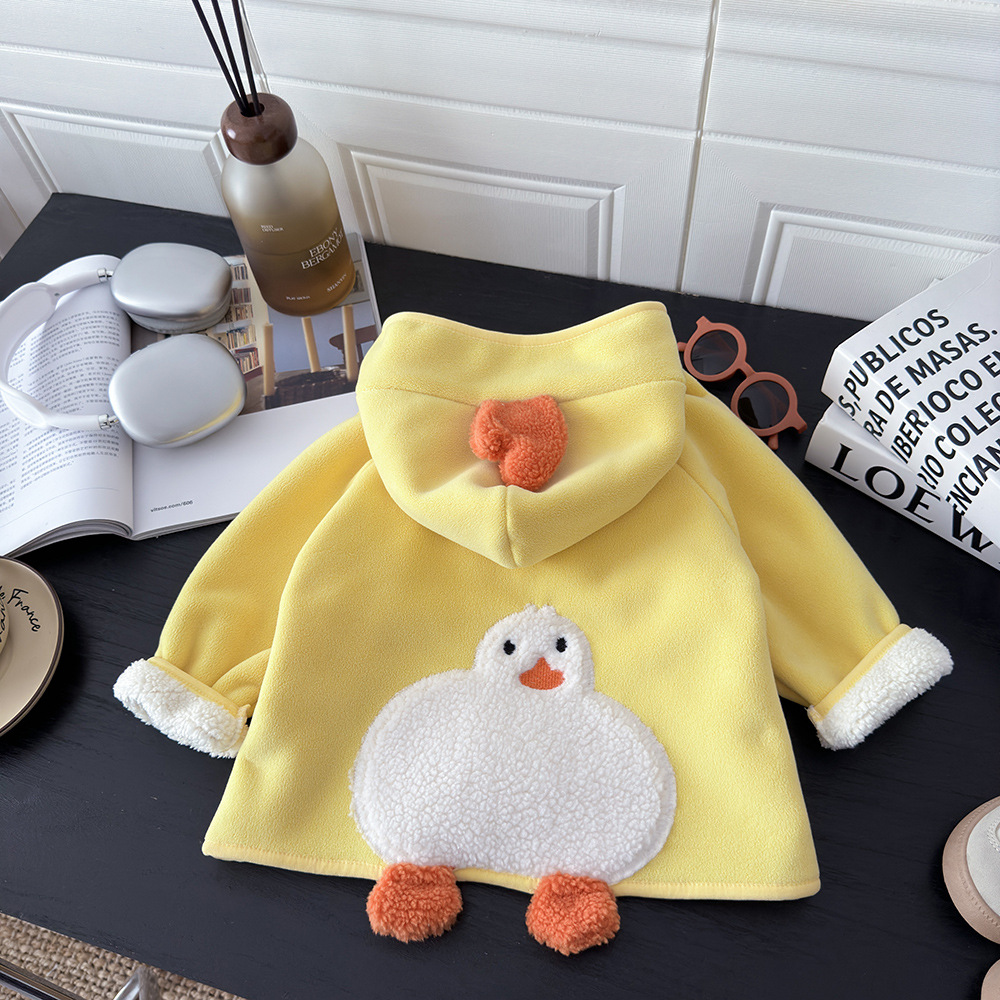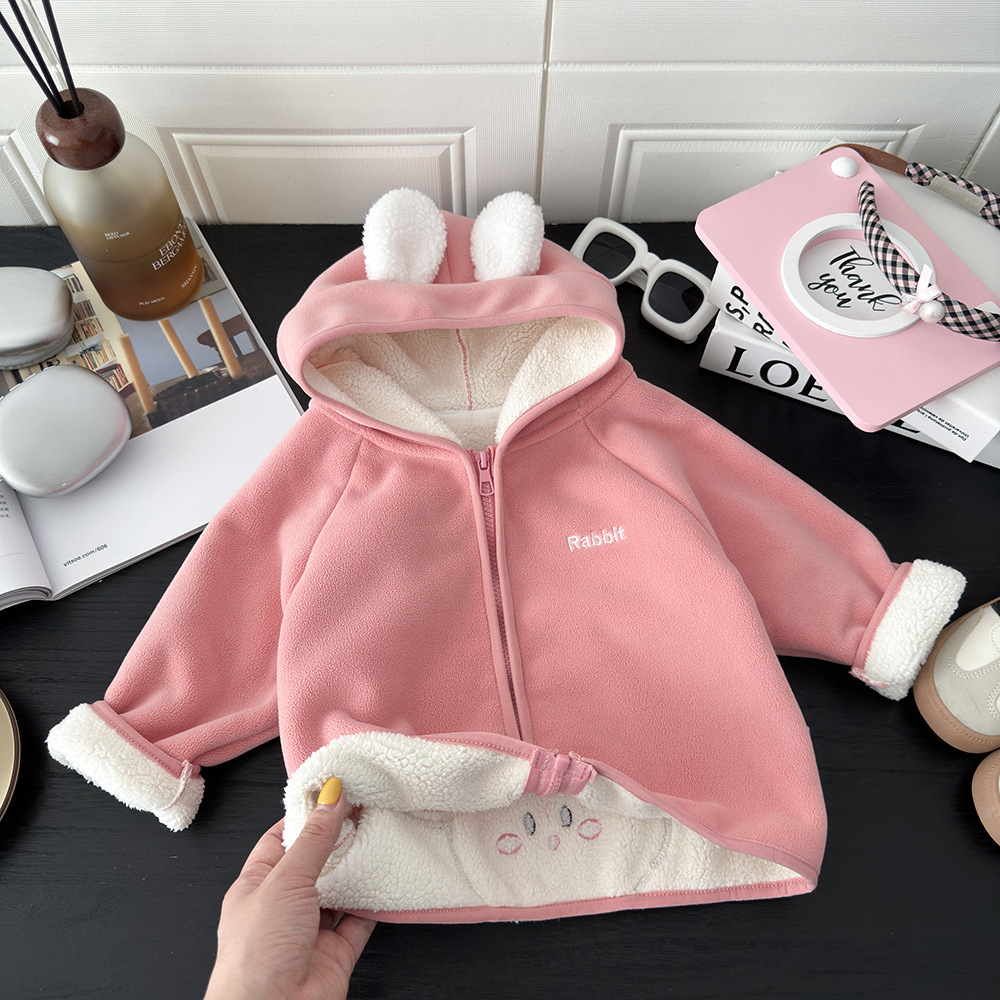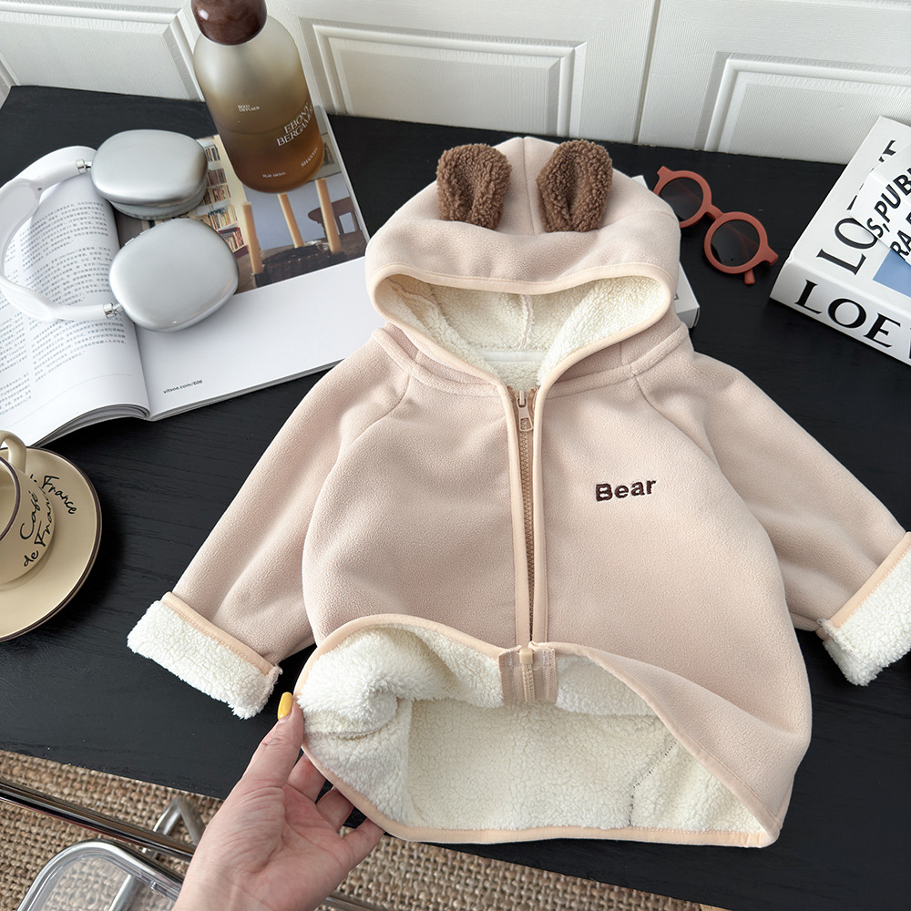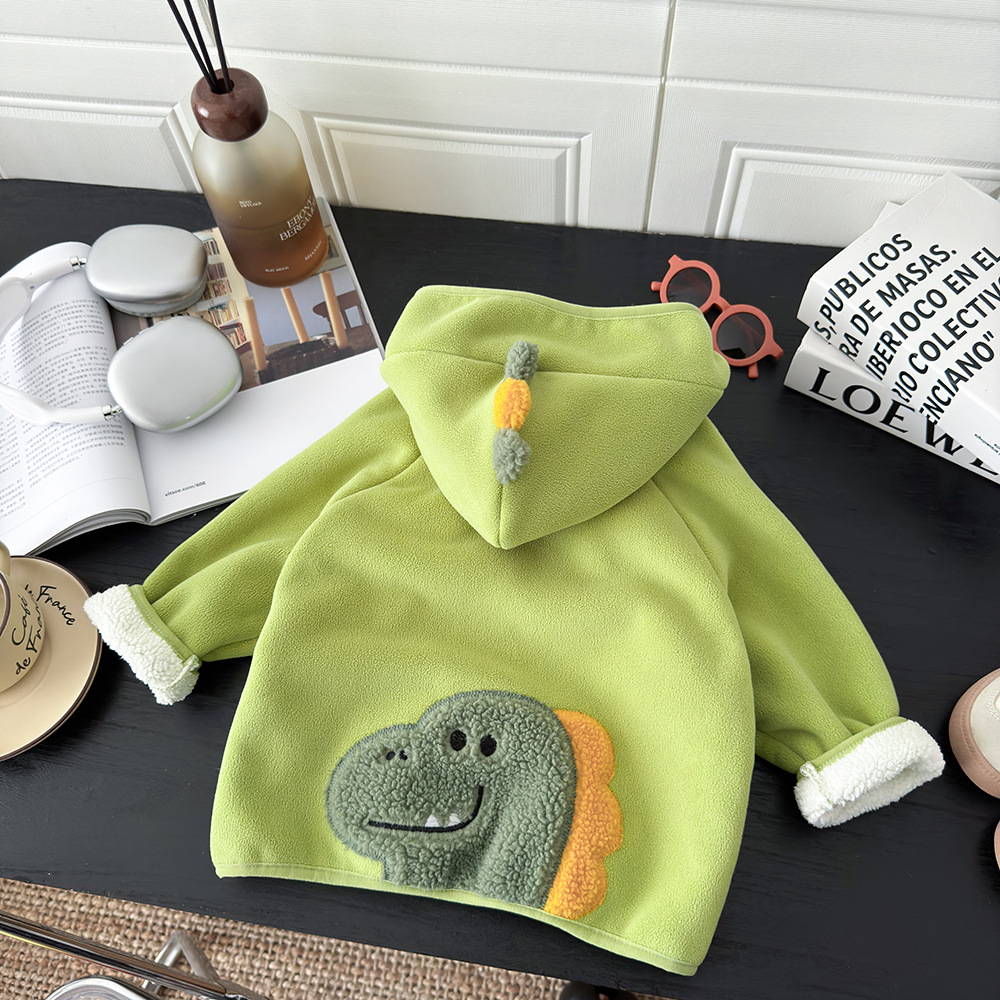 儿童外套加绒加厚韩版2025保暖洋气秋冬季卡通连帽毛绒小童外套