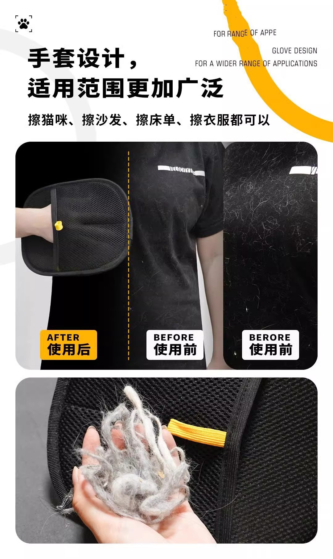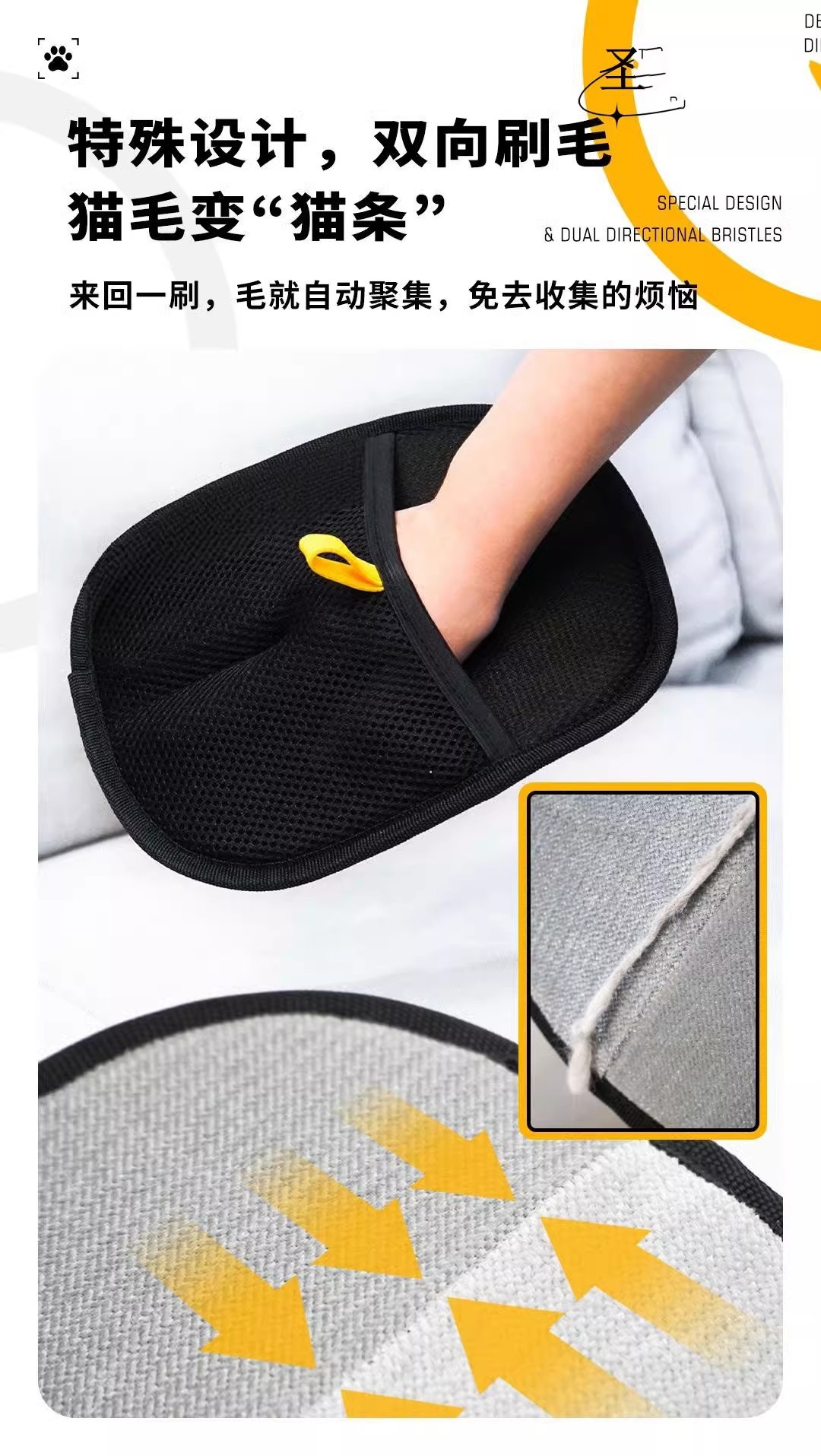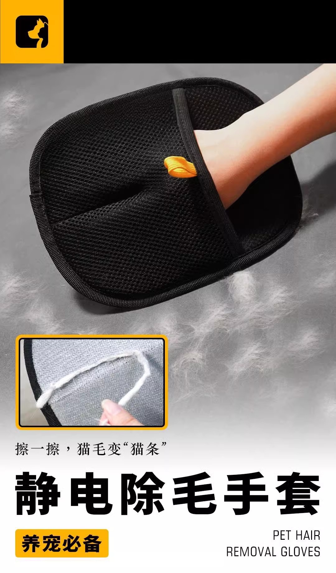 大号宠物静电除毛手套双向刷毛粘毛神器猫狗养宠必备手套猫毛清理