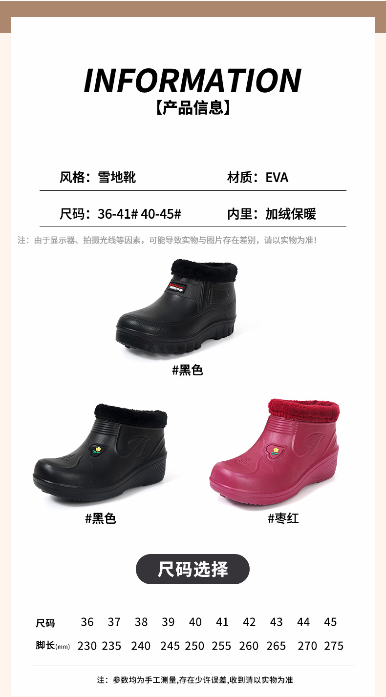 男黑色雨鞋加绒加厚; 女黑色雨鞋加绒加厚; 女红色雨鞋加绒加厚; 2258毛口; 6517平口