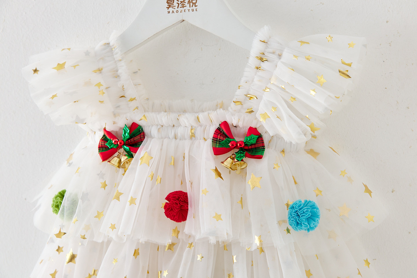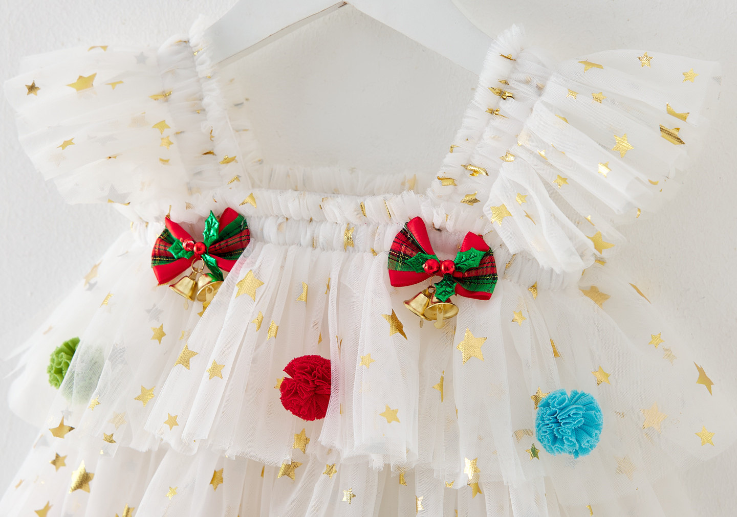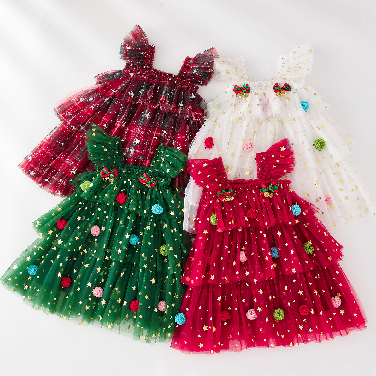 新款童裙飞袖圣诞节日星星网纱蛋糕裙公主蓬蓬裙喜庆宝宝吊带