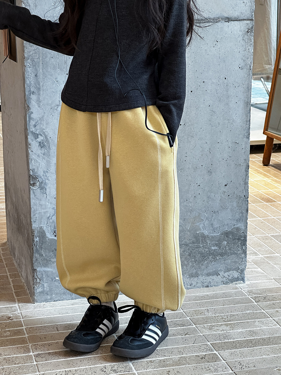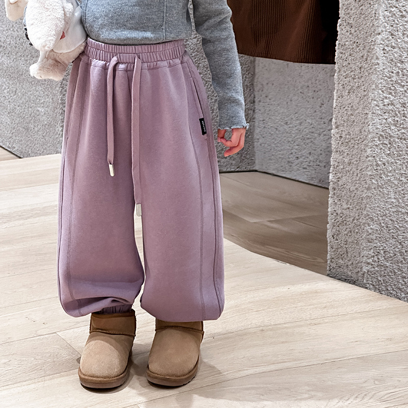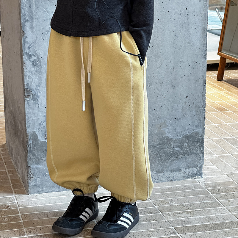 艾摩贝贝男女童秋季韩版宽松运动裤子儿童质感水洗复合棉休闲卫裤