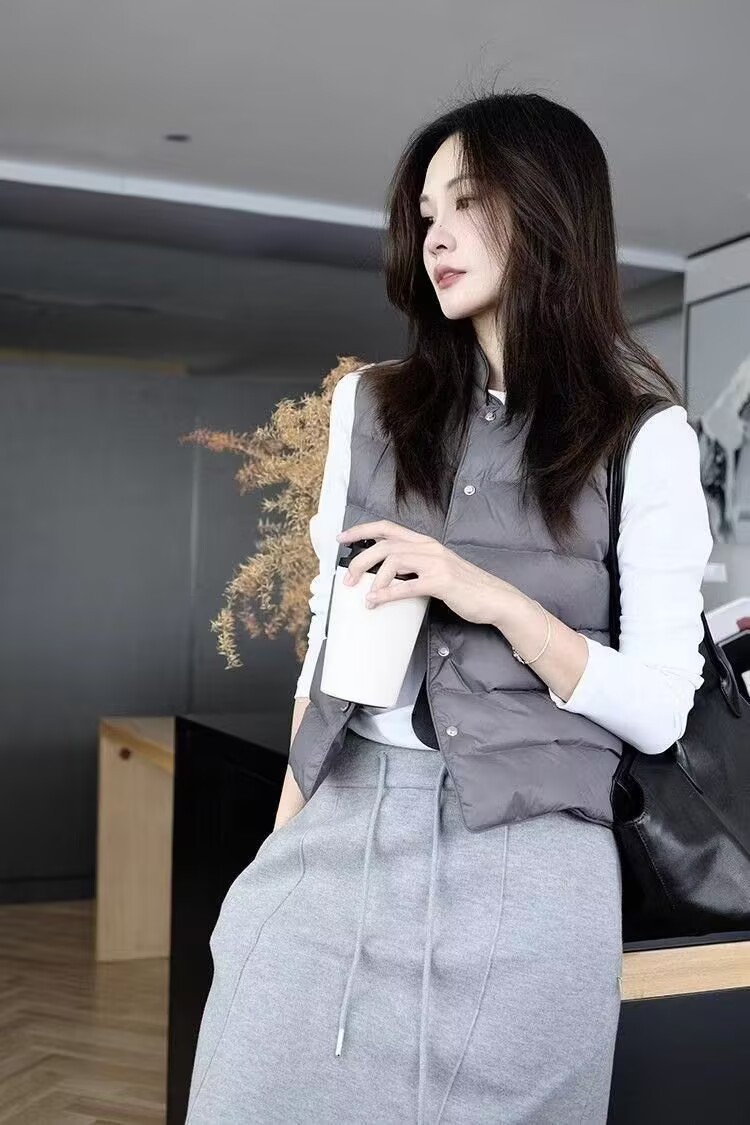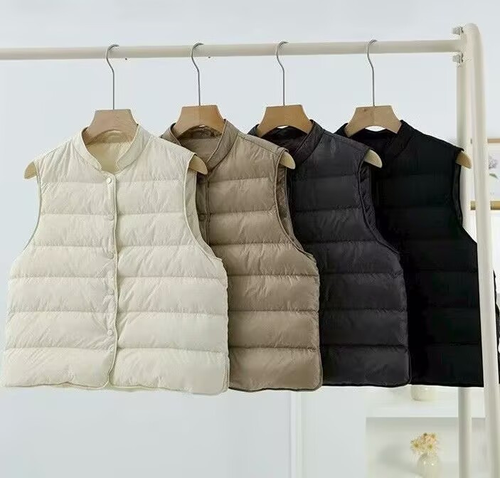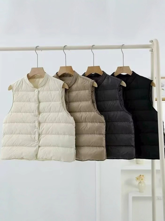 Лёгкий короткий пуховик-жилет с воротником-стойкой для женщин, новинка осени-зимы 2025 года, без рукавов, утеплённый, белый, из утиного пуха, модный.