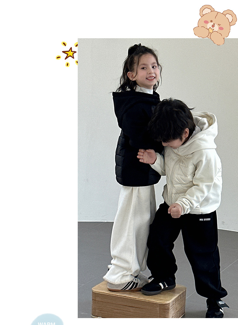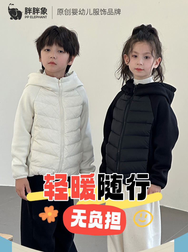 秋冬季男女儿童小孩连帽羽绒服外套中大童卫衣保暖上短款保暖新款