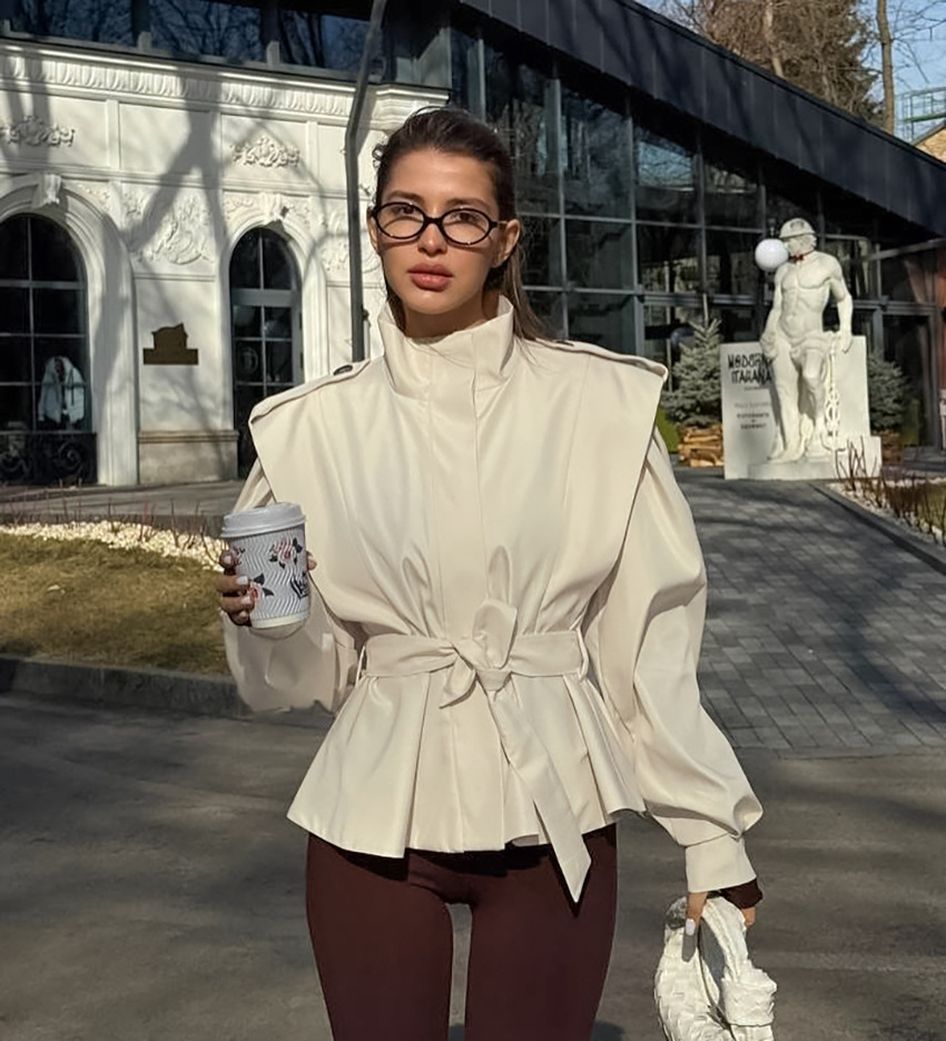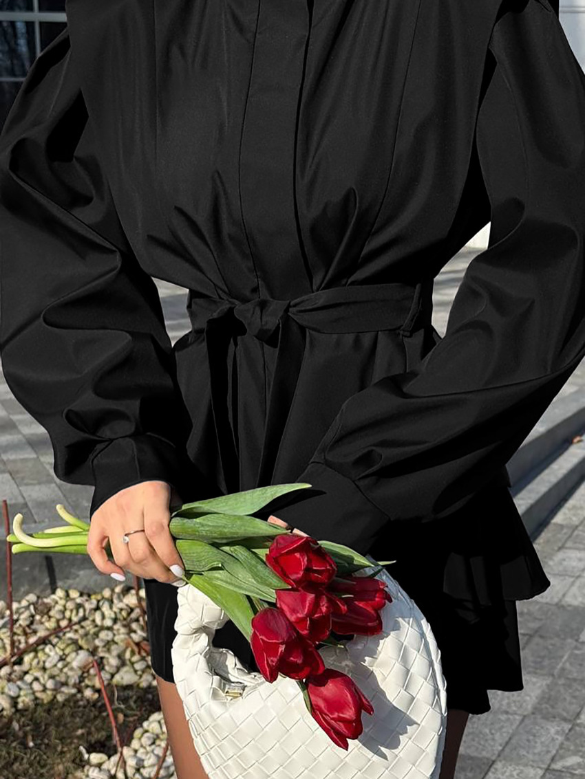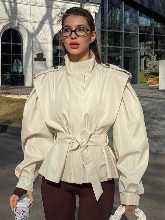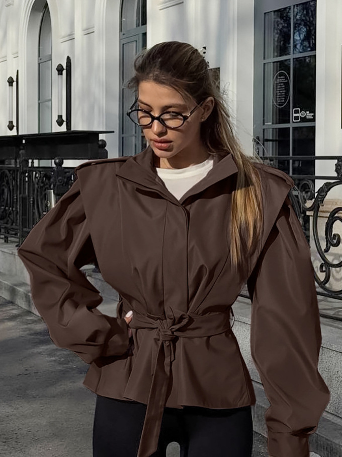 Нишевый дизайн во французском стиле, осенне-зимний свободный утягивающий универсальный плащ с длинными рукавами и отложным воротником на шнуровке для женщин.