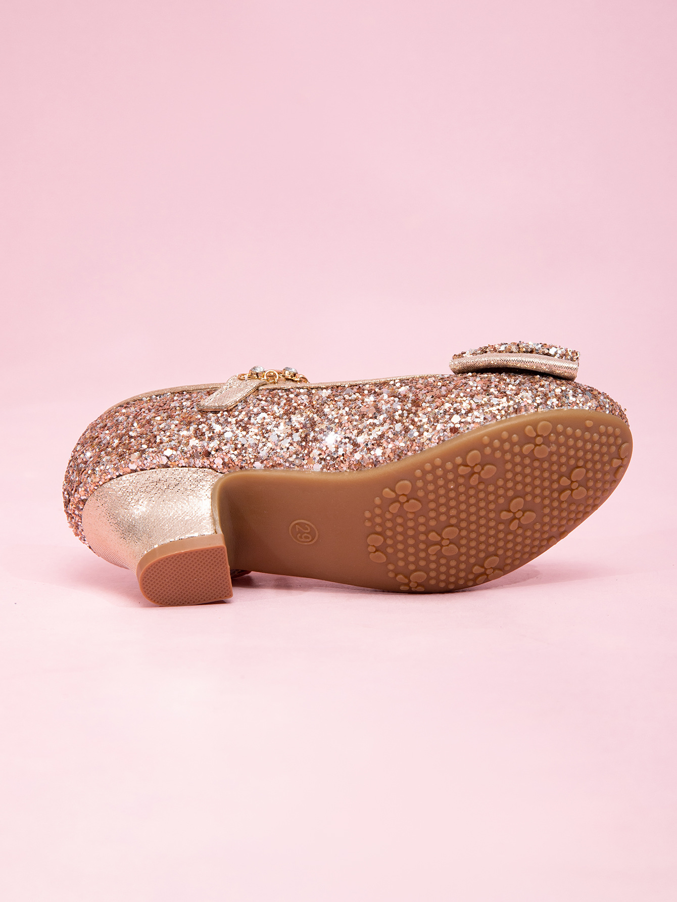 跨境秋季新款女童亮片公主鞋小女孩舞蹈演出高跟鞋儿童链条金色单