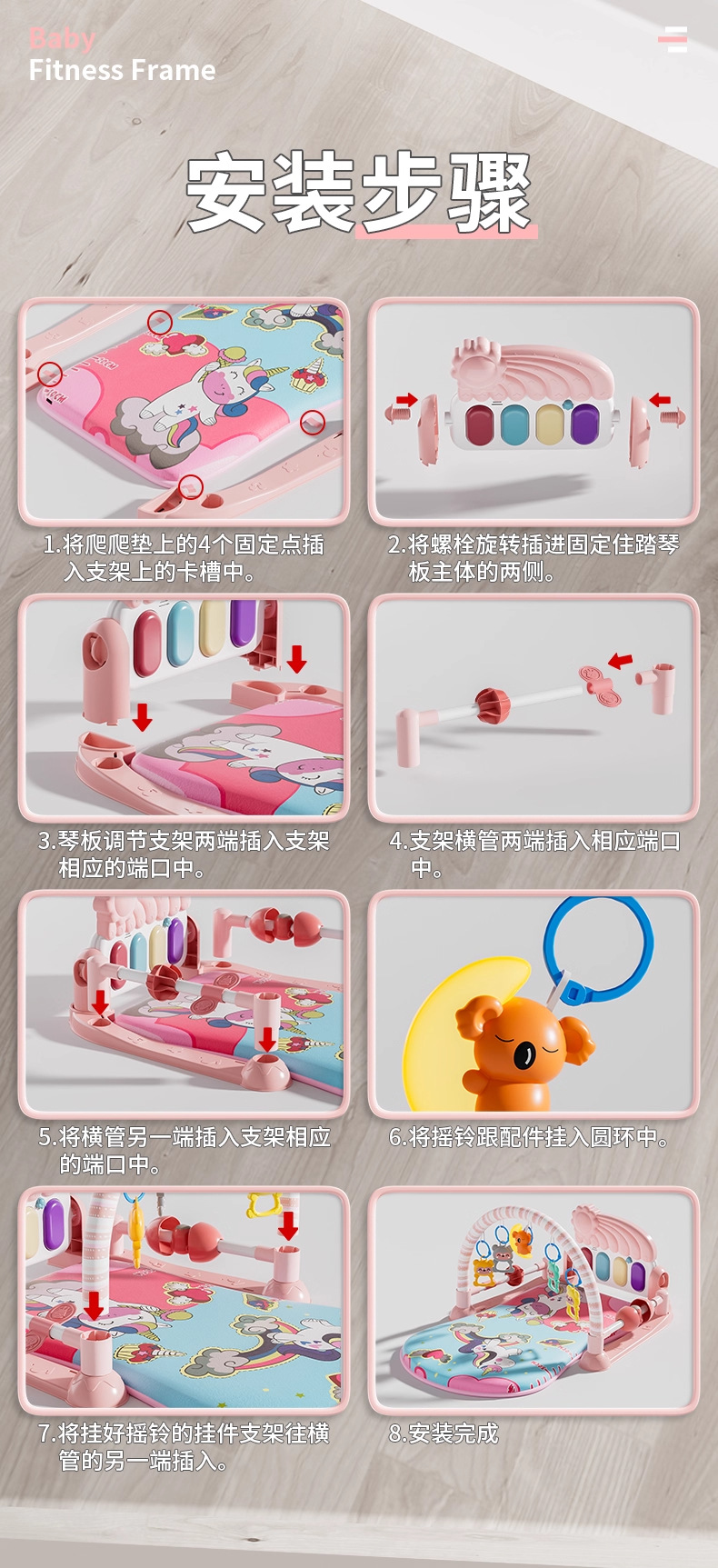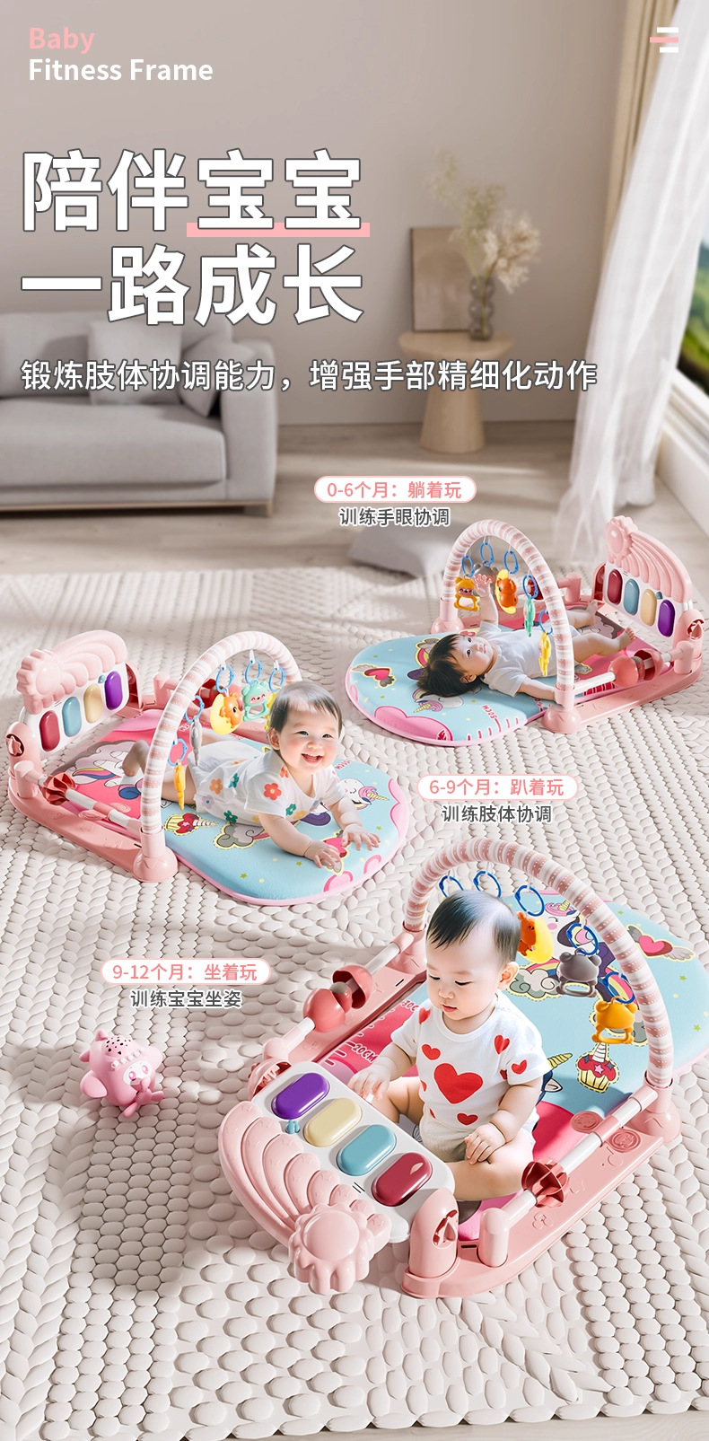 Детская игрушка-пианино с педалями, развивающая игрушка для раннего обучения, для мальчиков и девочек 0-3 лет, подарок, ночник, игрушка с функцией прыгания.