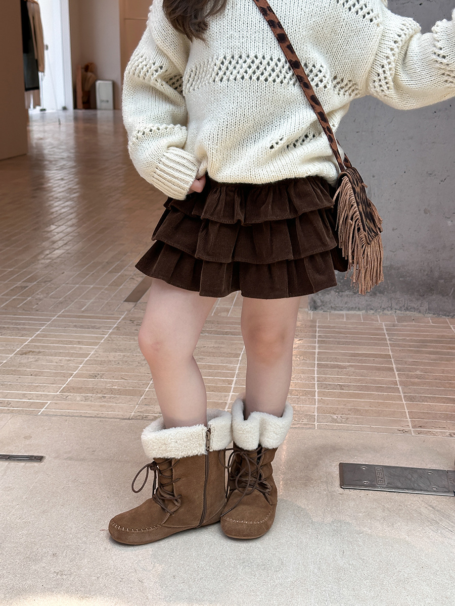 艾摩贝贝2025秋季女童洋气垂感花边蛋糕裙质感棉坑条百褶半身短裙