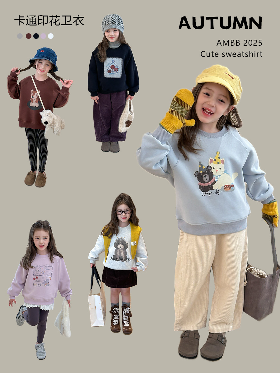 艾摩贝贝2025秋季韩版童装男女童宝宝休闲韩范可爱卡通宽松卫衣潮