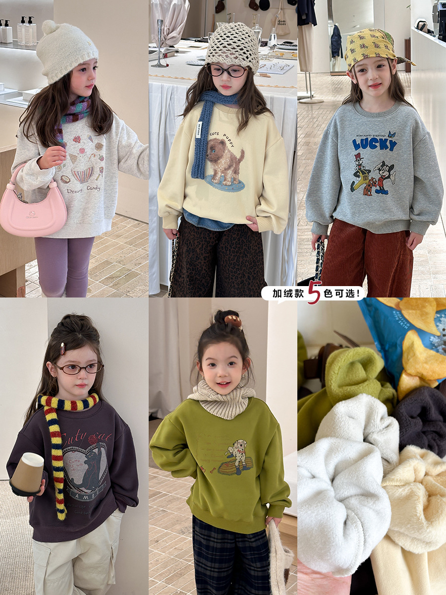 【加绒款】男女童宝宝休闲韩版宽松保暖套头衫珍珠绒加厚卡通卫衣