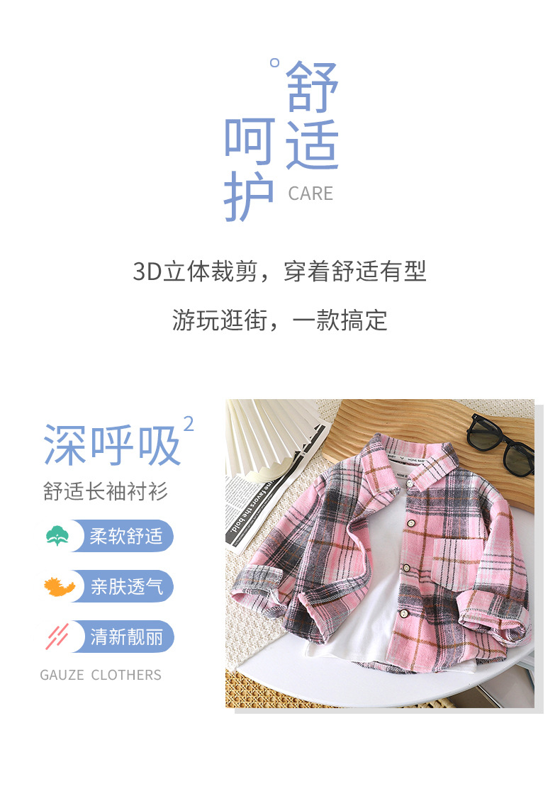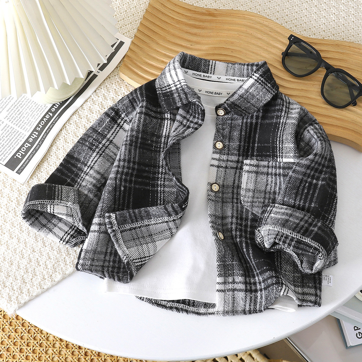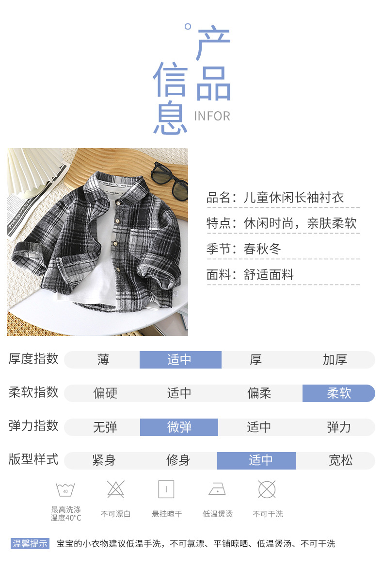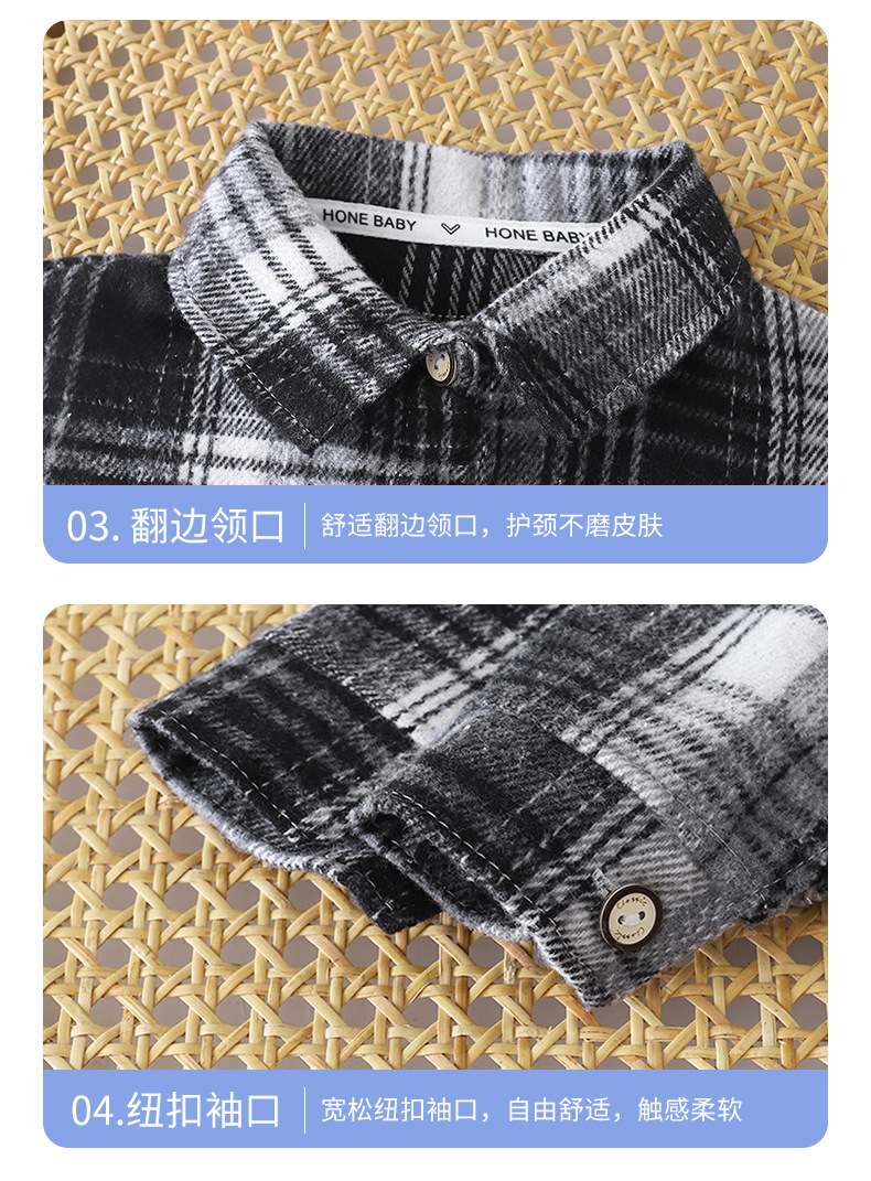 男童衬衫长袖秋款格子衬衣儿童复古拼色开衫新款翻领上衣外套童装