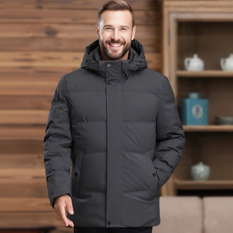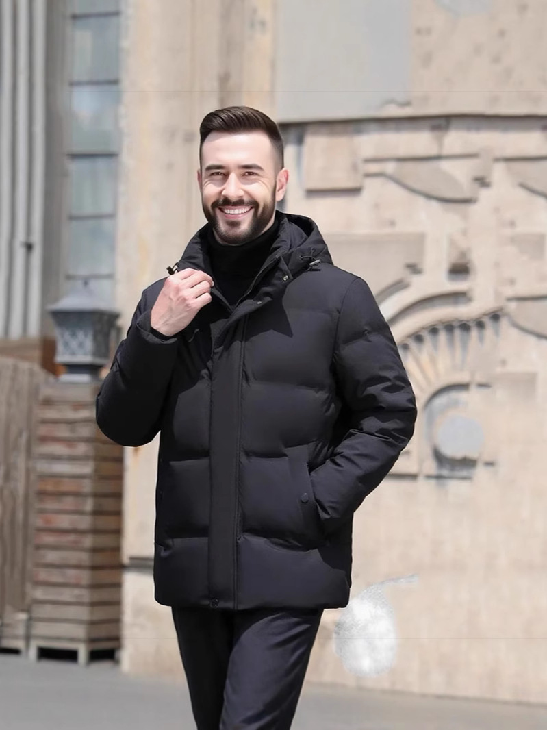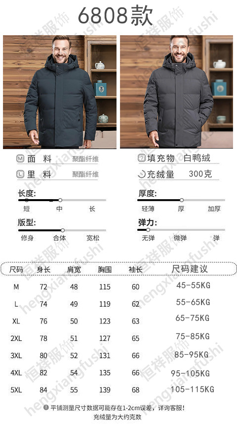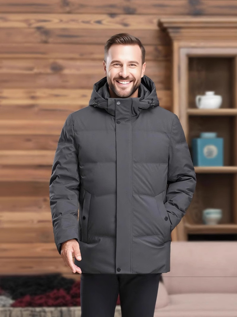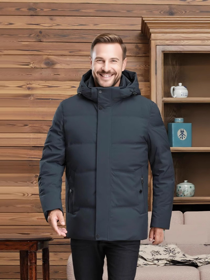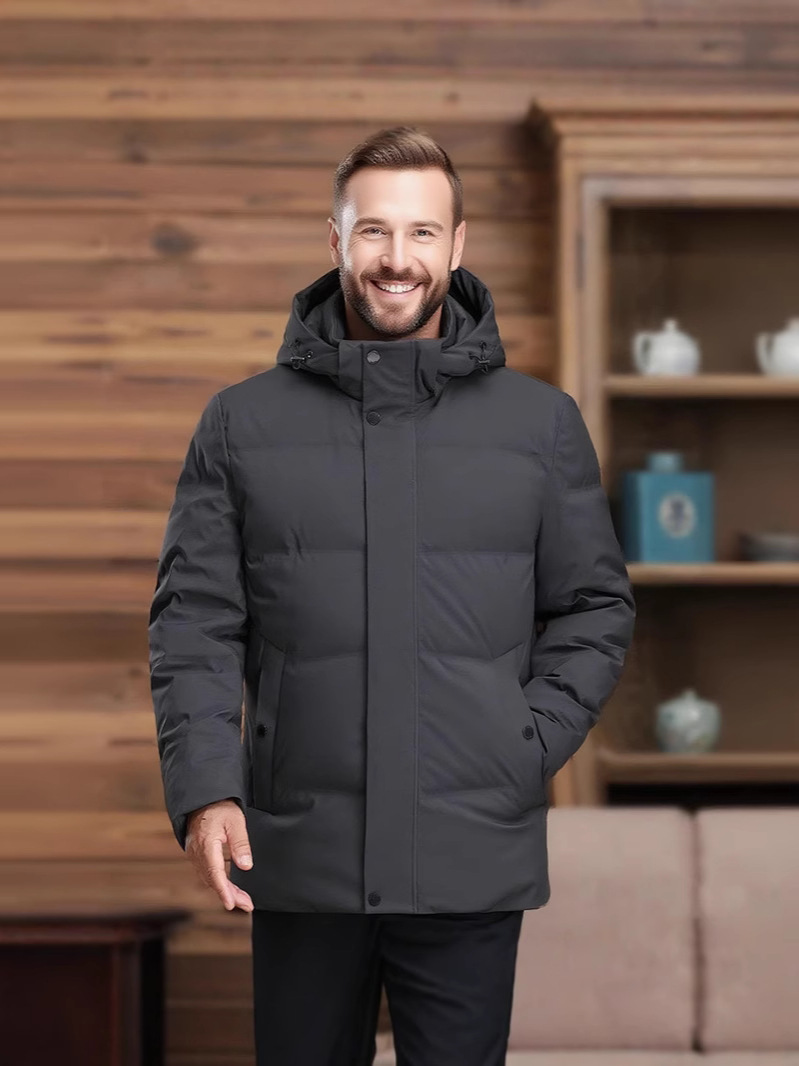 【跨境外贸】新款羽绒服男士冬季欧美大码商务正装连帽上衣爸爸装