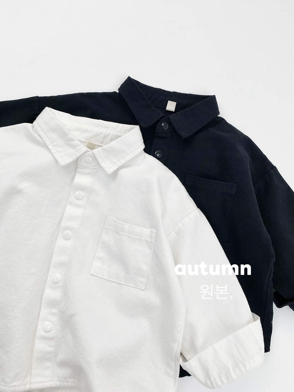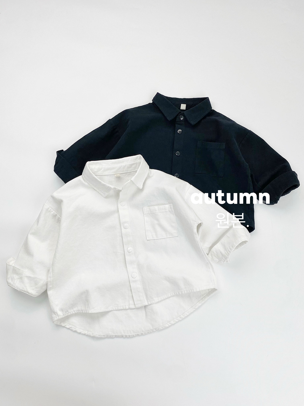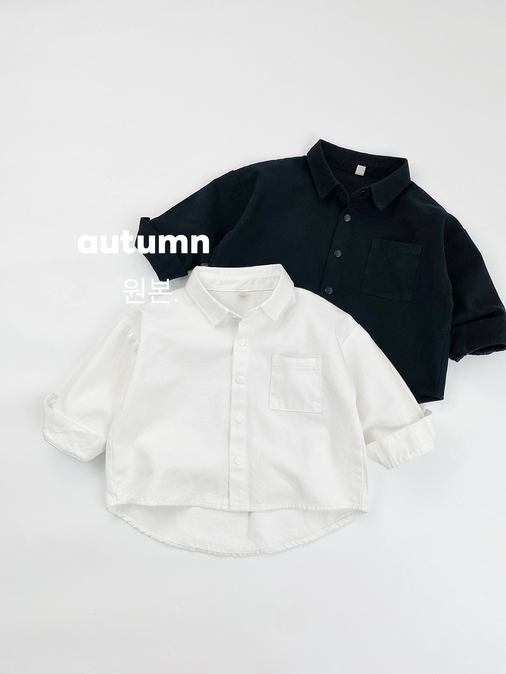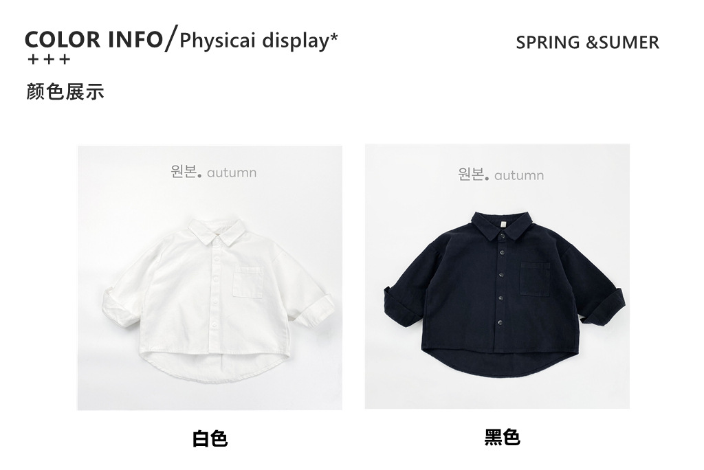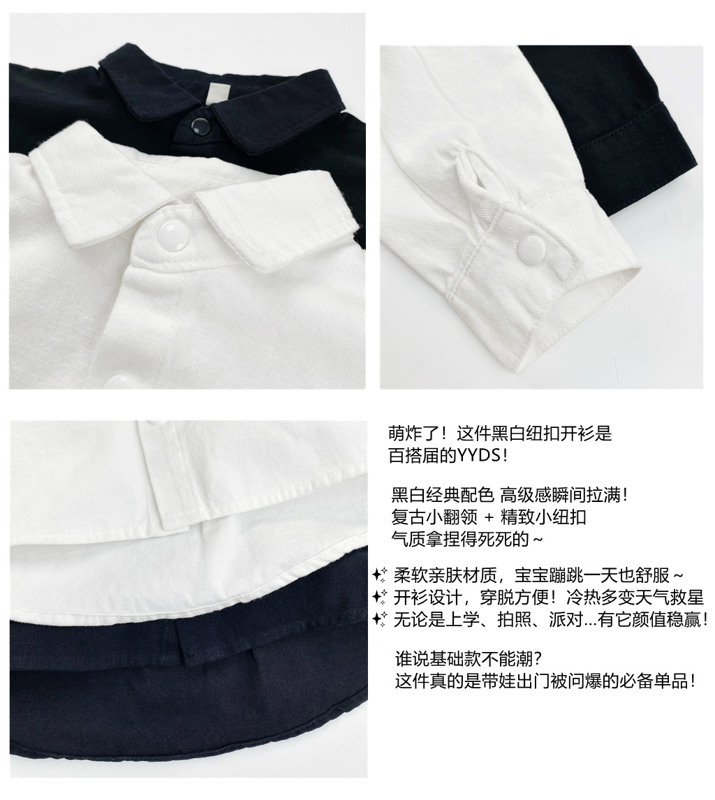 Детская рубашка с длинными рукавами, черно-белая однотонная универсальная базовая осенняя рубашка в корейском стиле, японская темпераментная куртка-рубашка для мальчиков и девочек