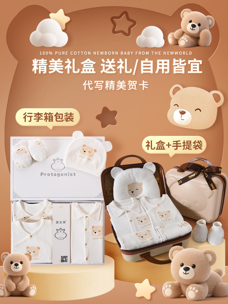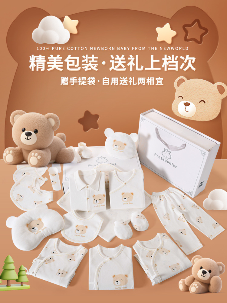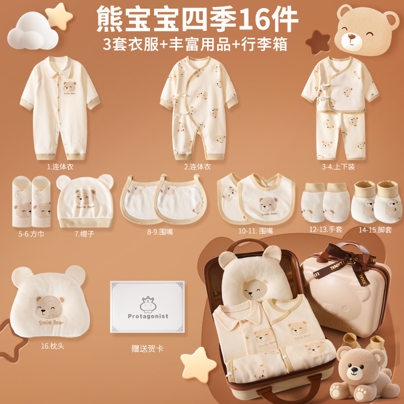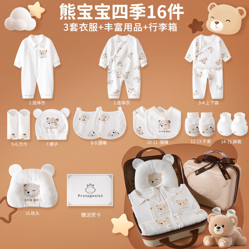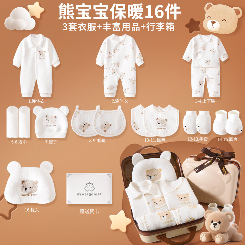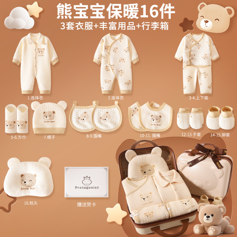 Подарочный набор для новорожденных с медвежонком: осенне-зимний комплект одежды, индивидуальный пошив, трансграничная кастомизация.
