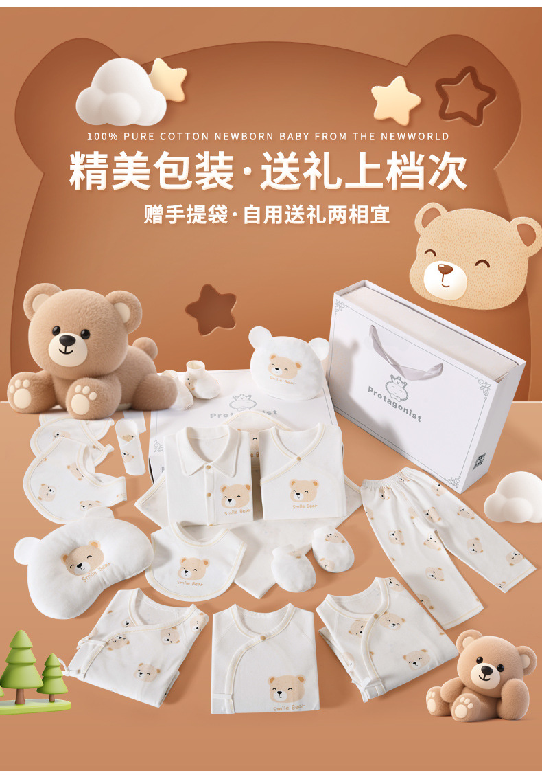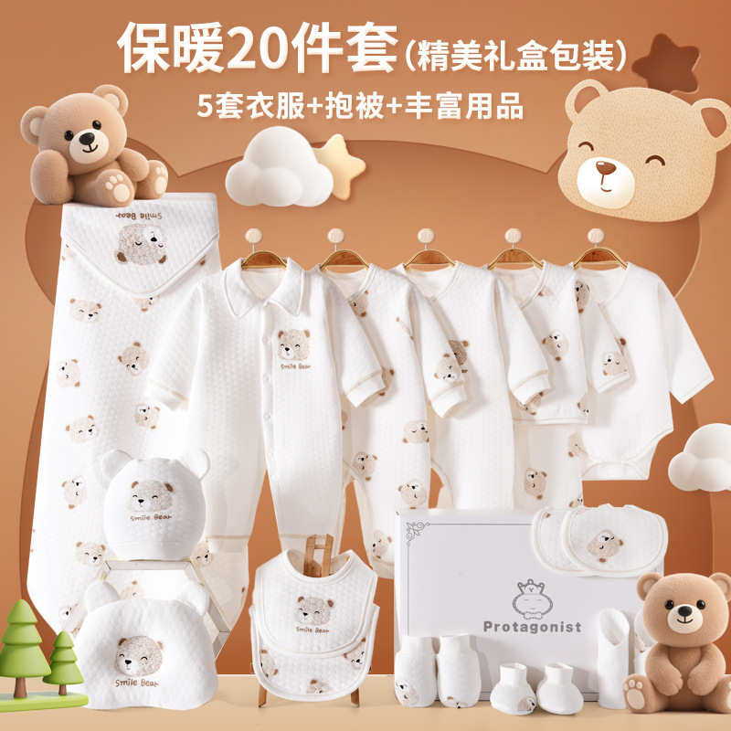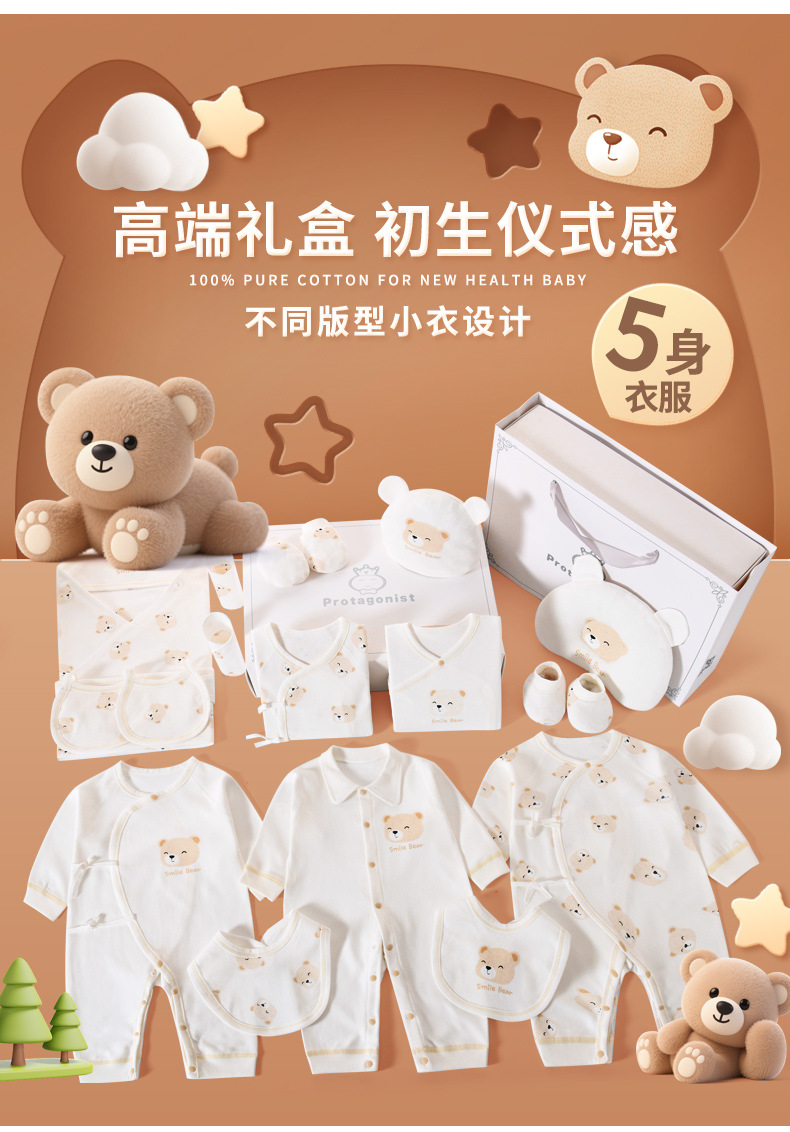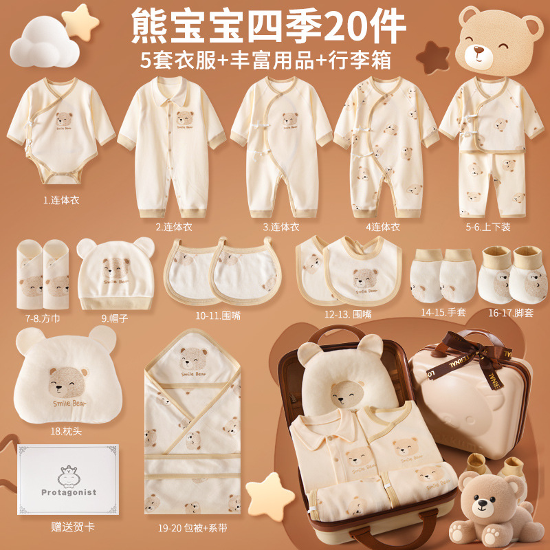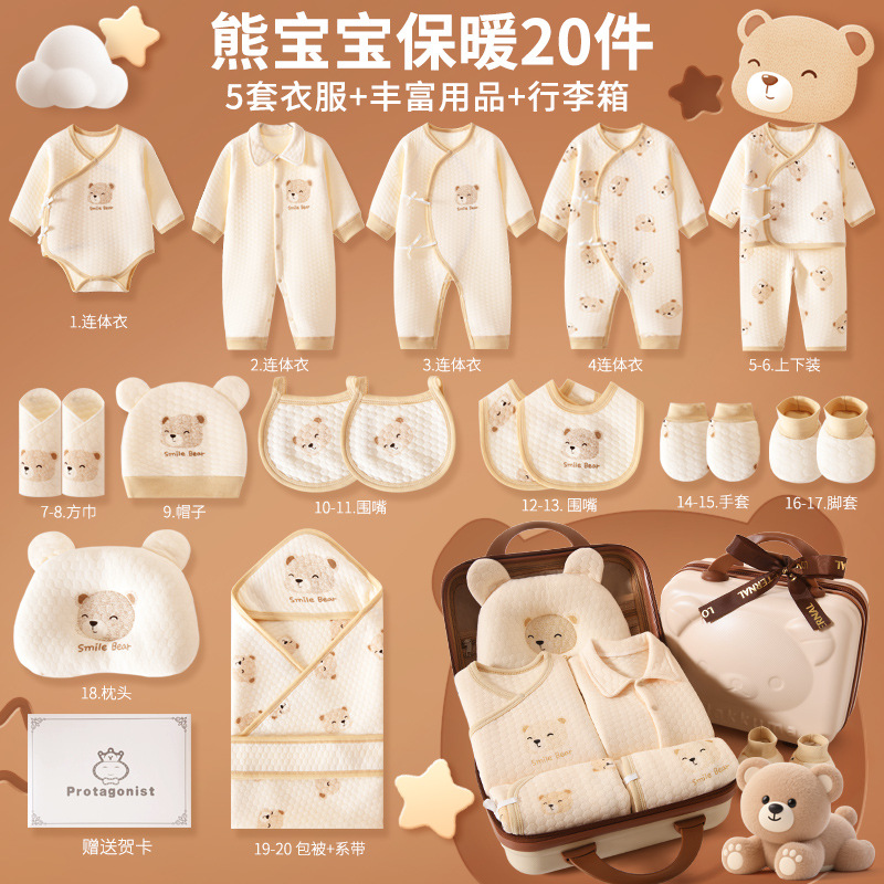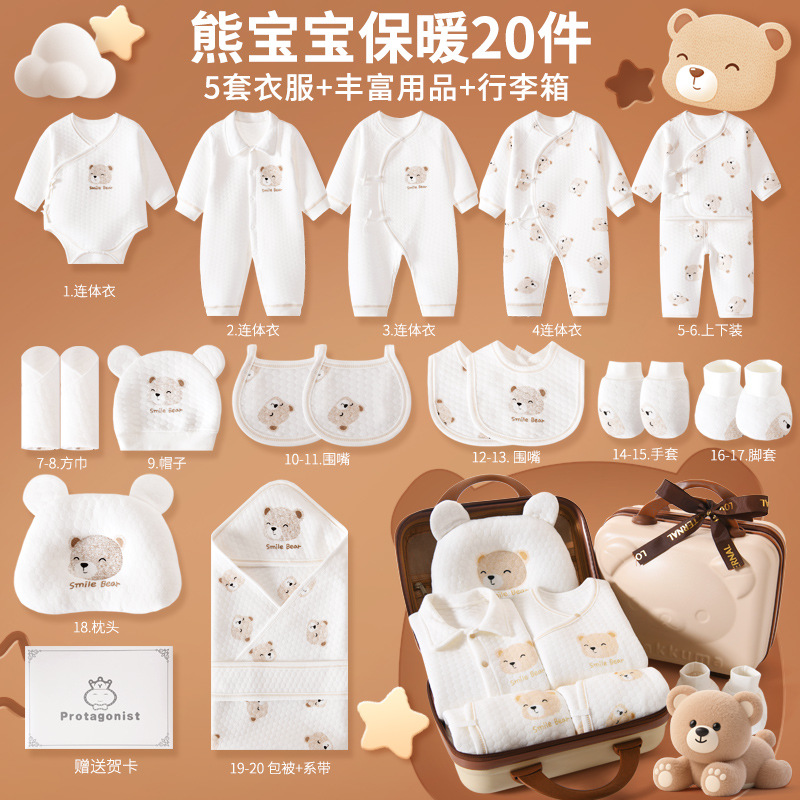 Подарочный набор для новорожденных с медвежонком: осенне-зимний комплект одежды, индивидуальный пошив, трансграничная кастомизация.