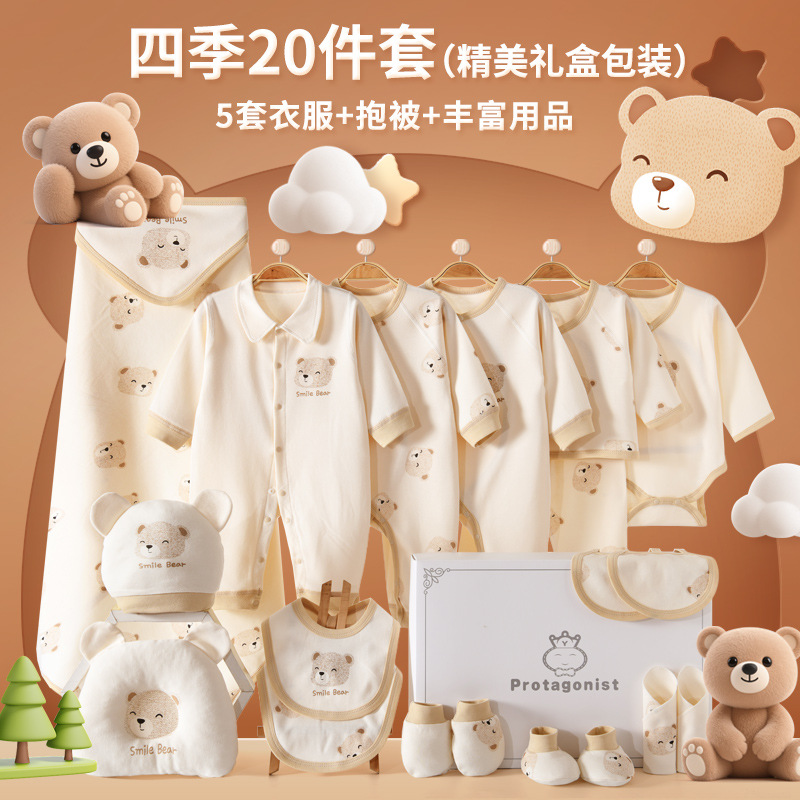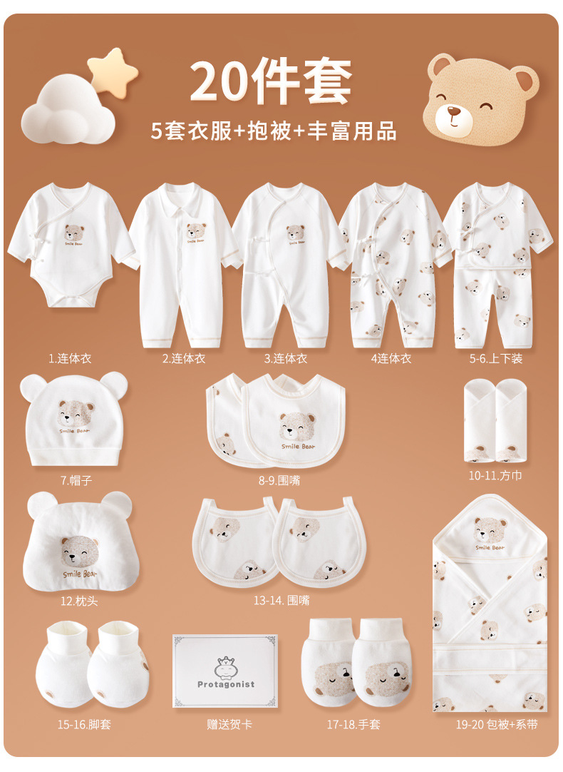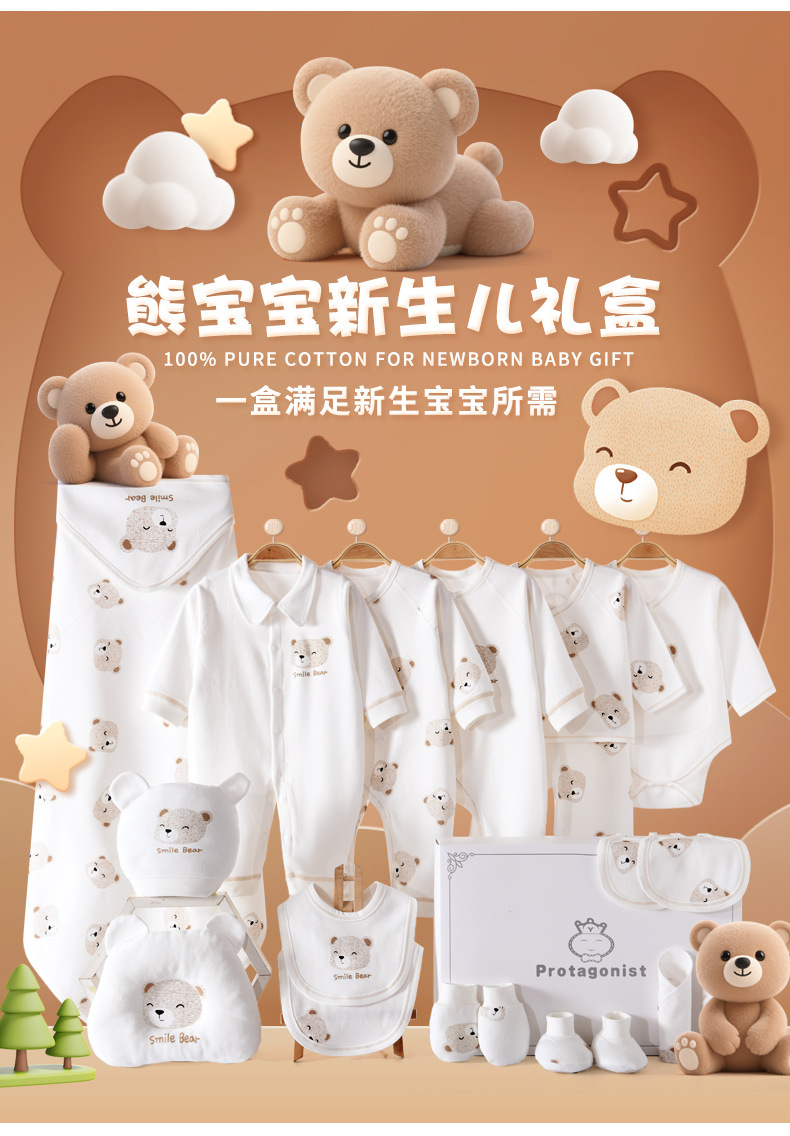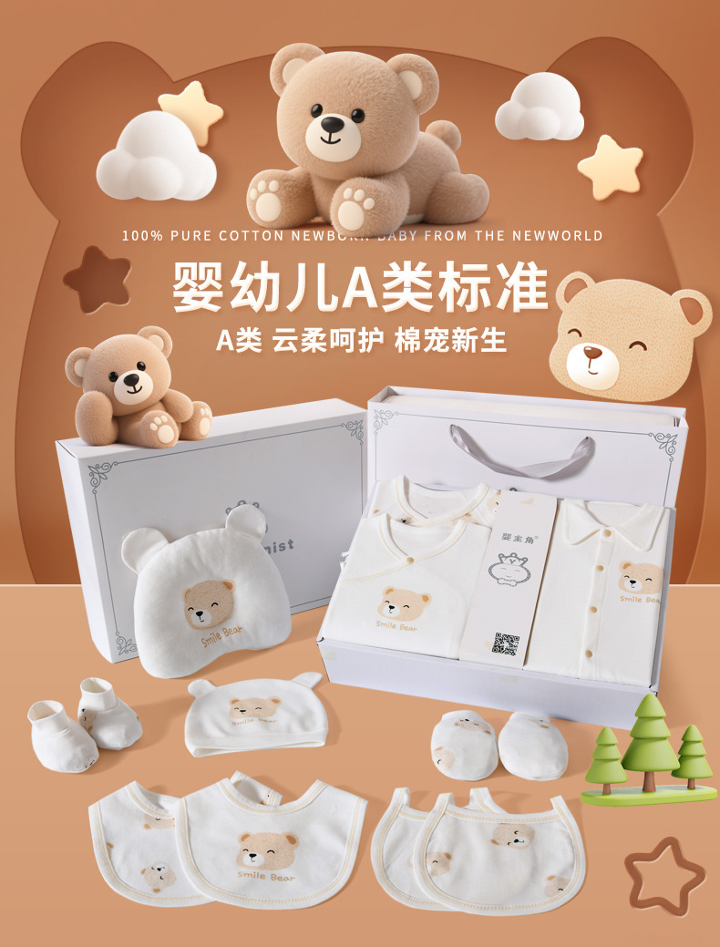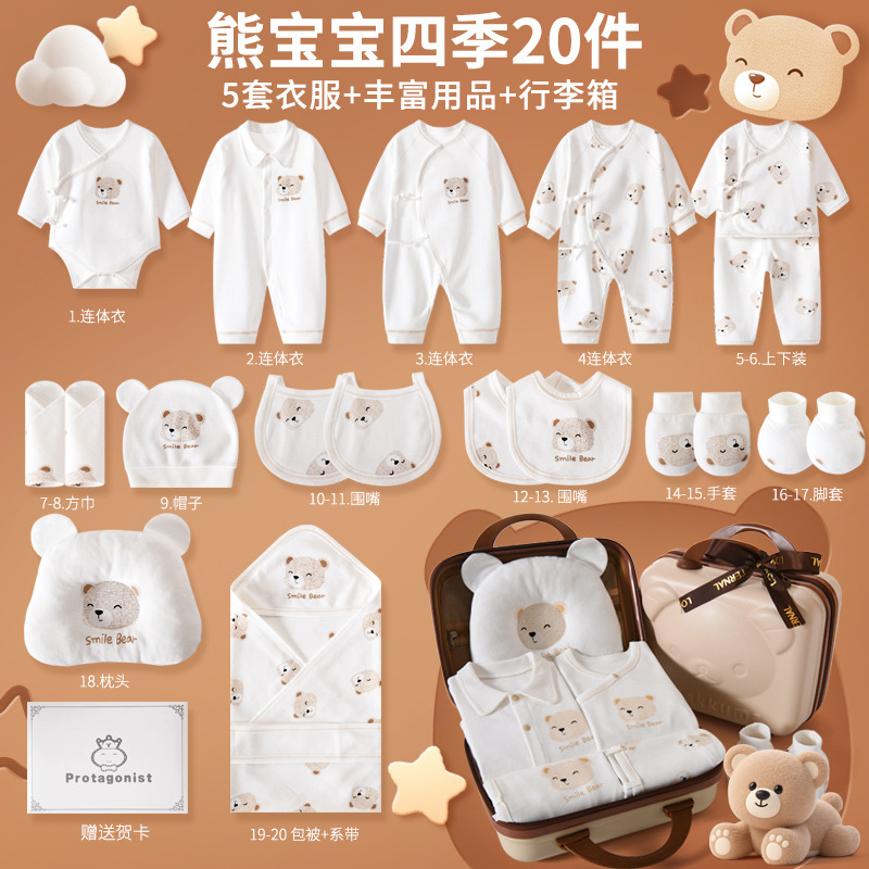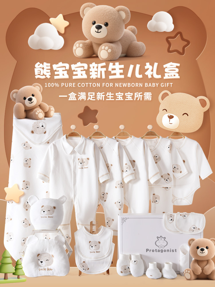 Подарочный набор для новорожденных с медвежонком: осенне-зимний комплект одежды, индивидуальный пошив, трансграничная кастомизация.