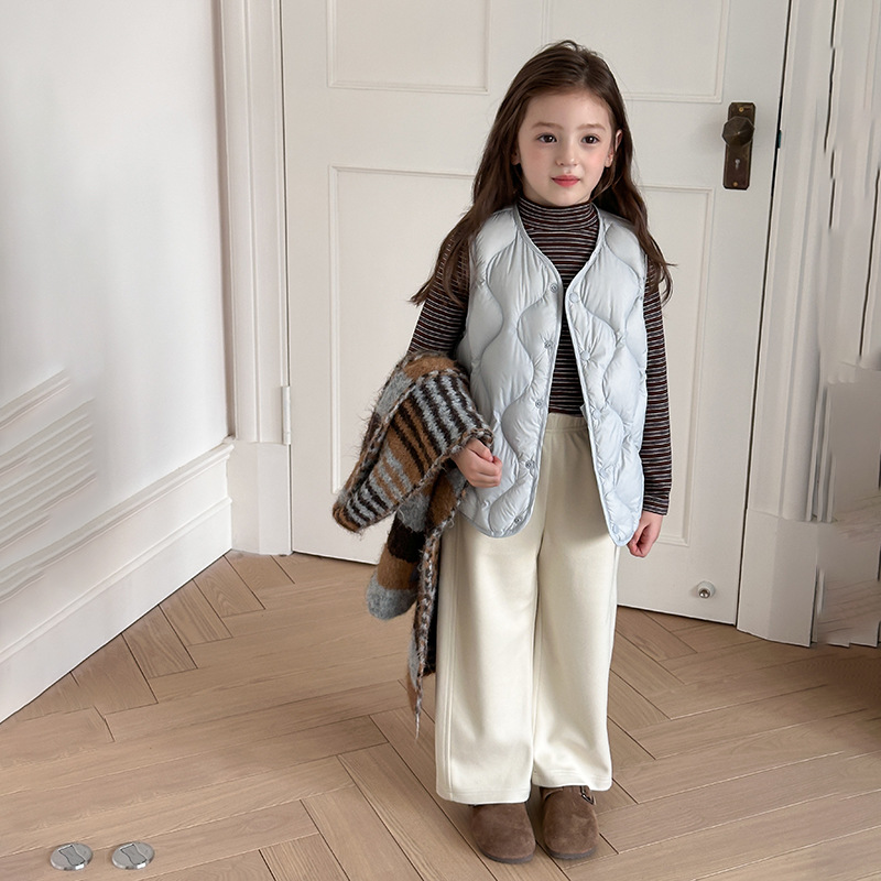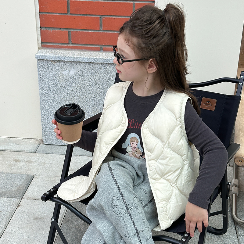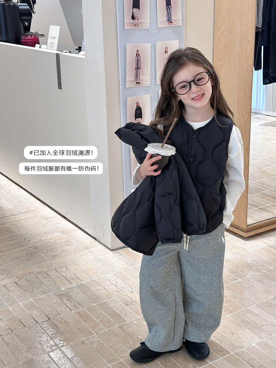 Новый национальный стандарт: белый утиный пух с возможностью отслеживания происхождения. Легкий и теплый пуховый жилет с ромбовидным узором для взрослых и детей.
