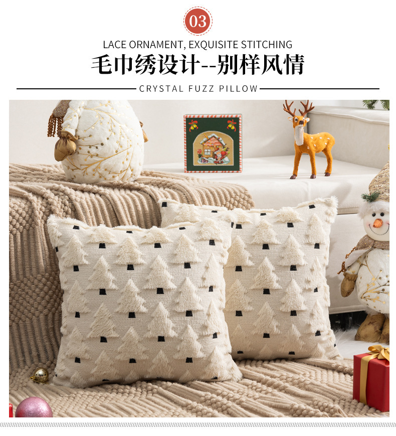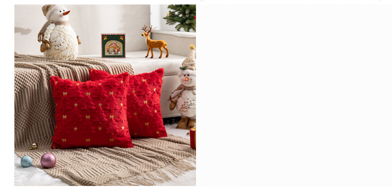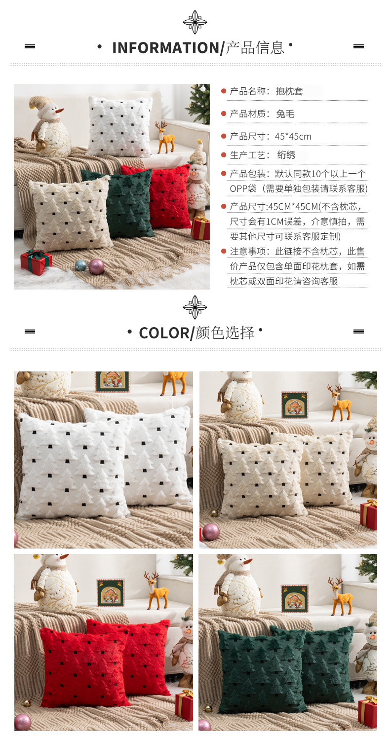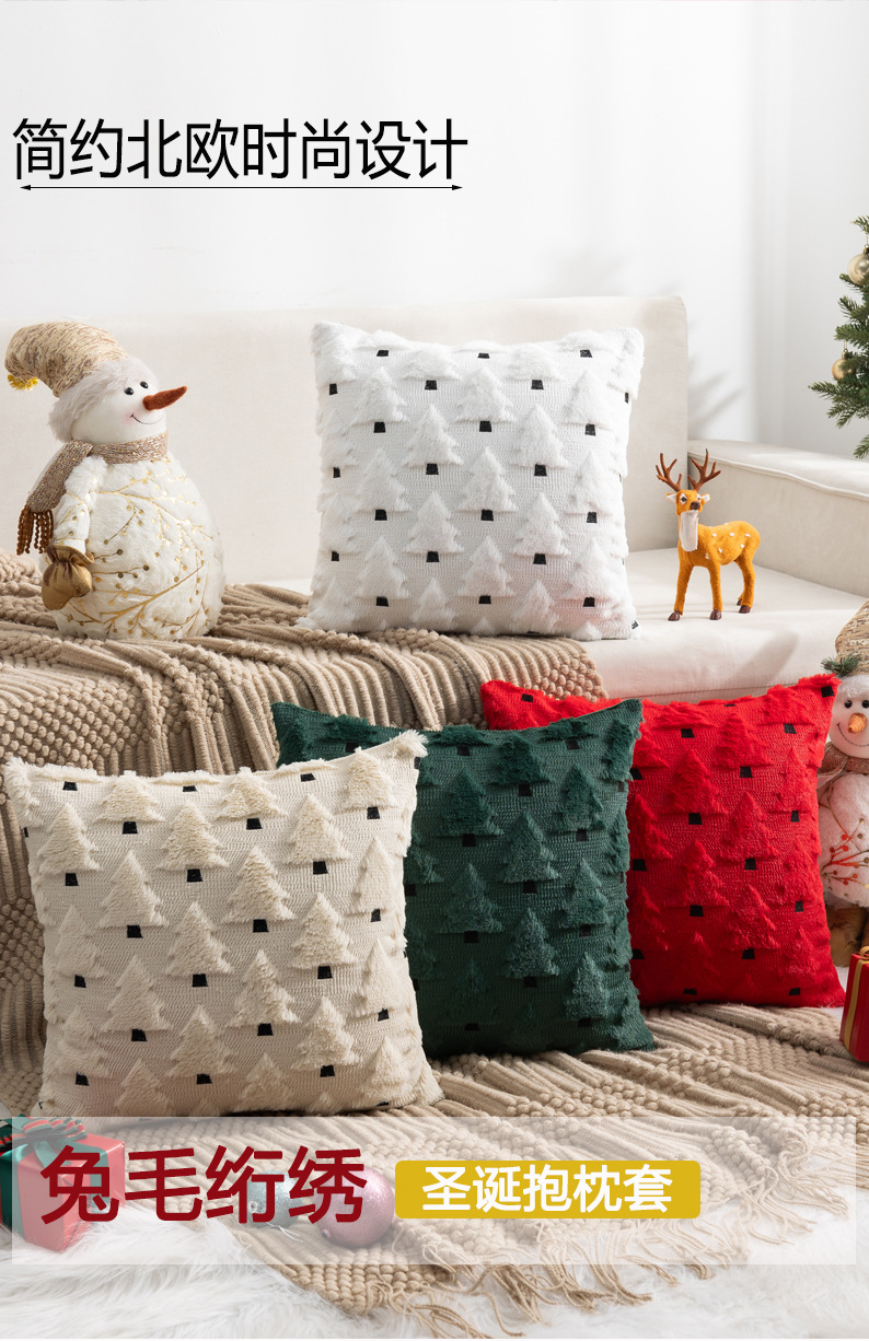 圣诞节抱枕套兔不含芯兔毛绗绣圣诞树家居沙发靠枕垫节日靠垫套