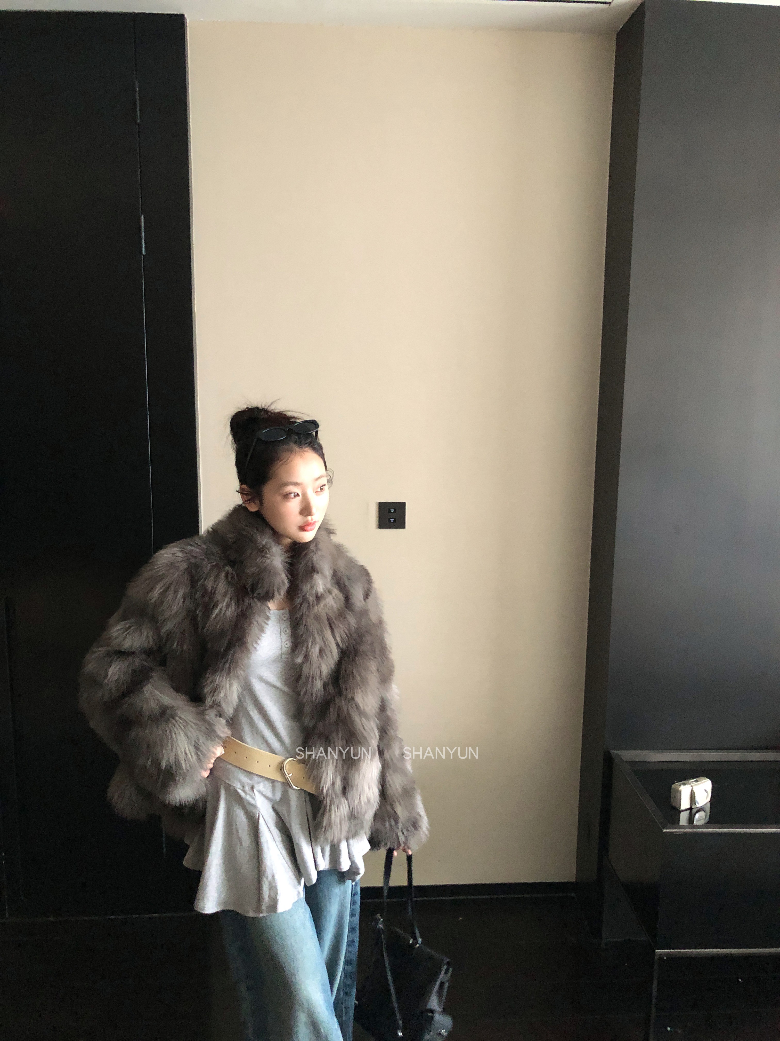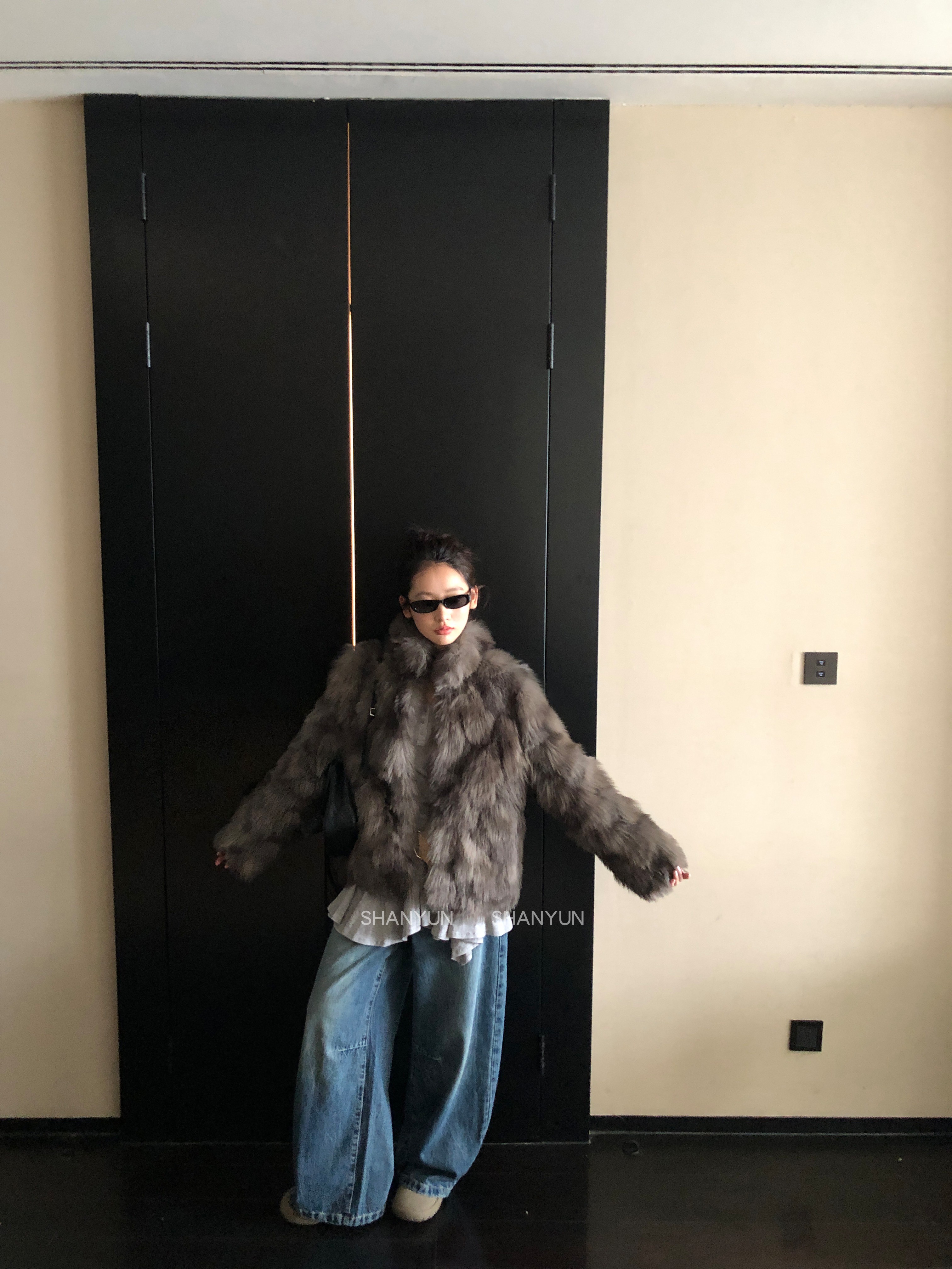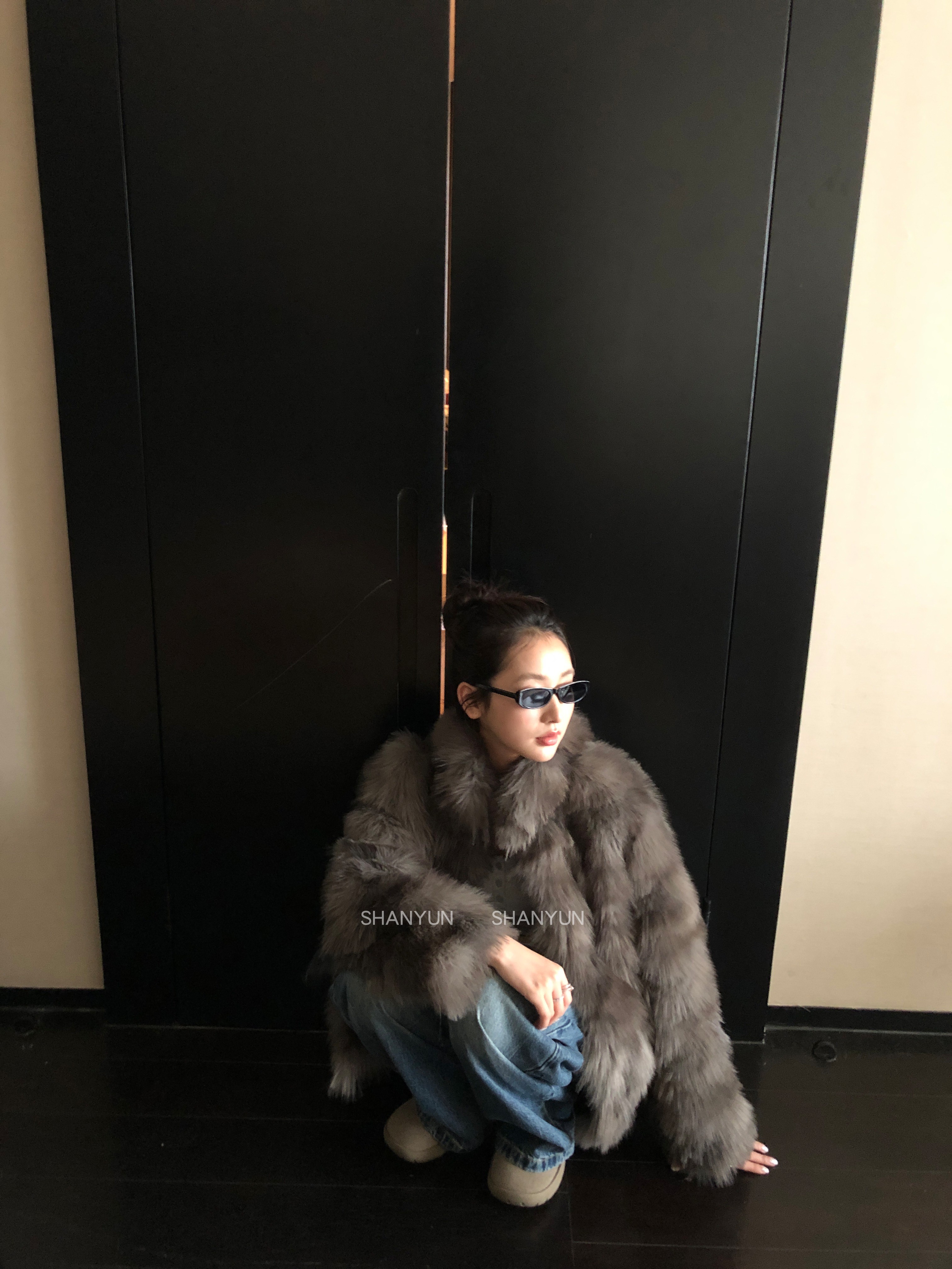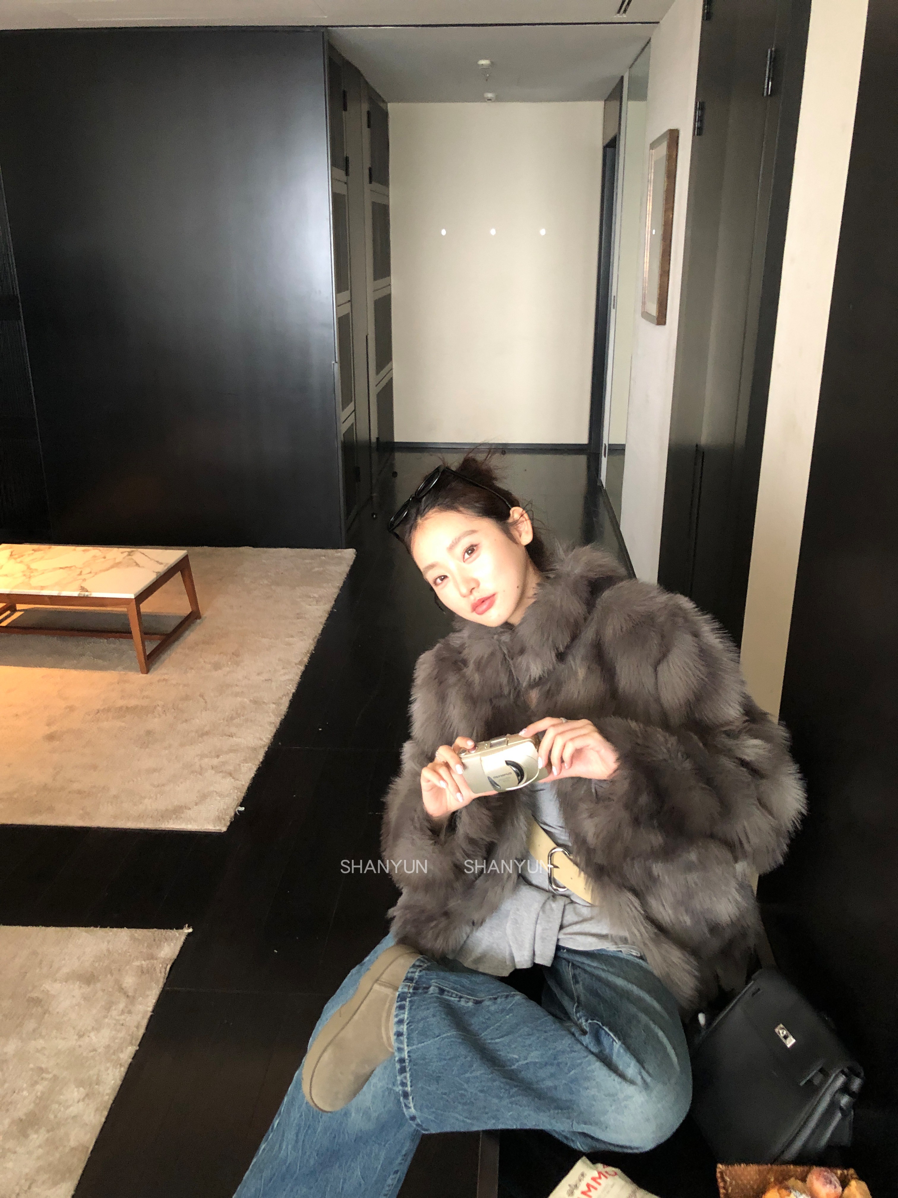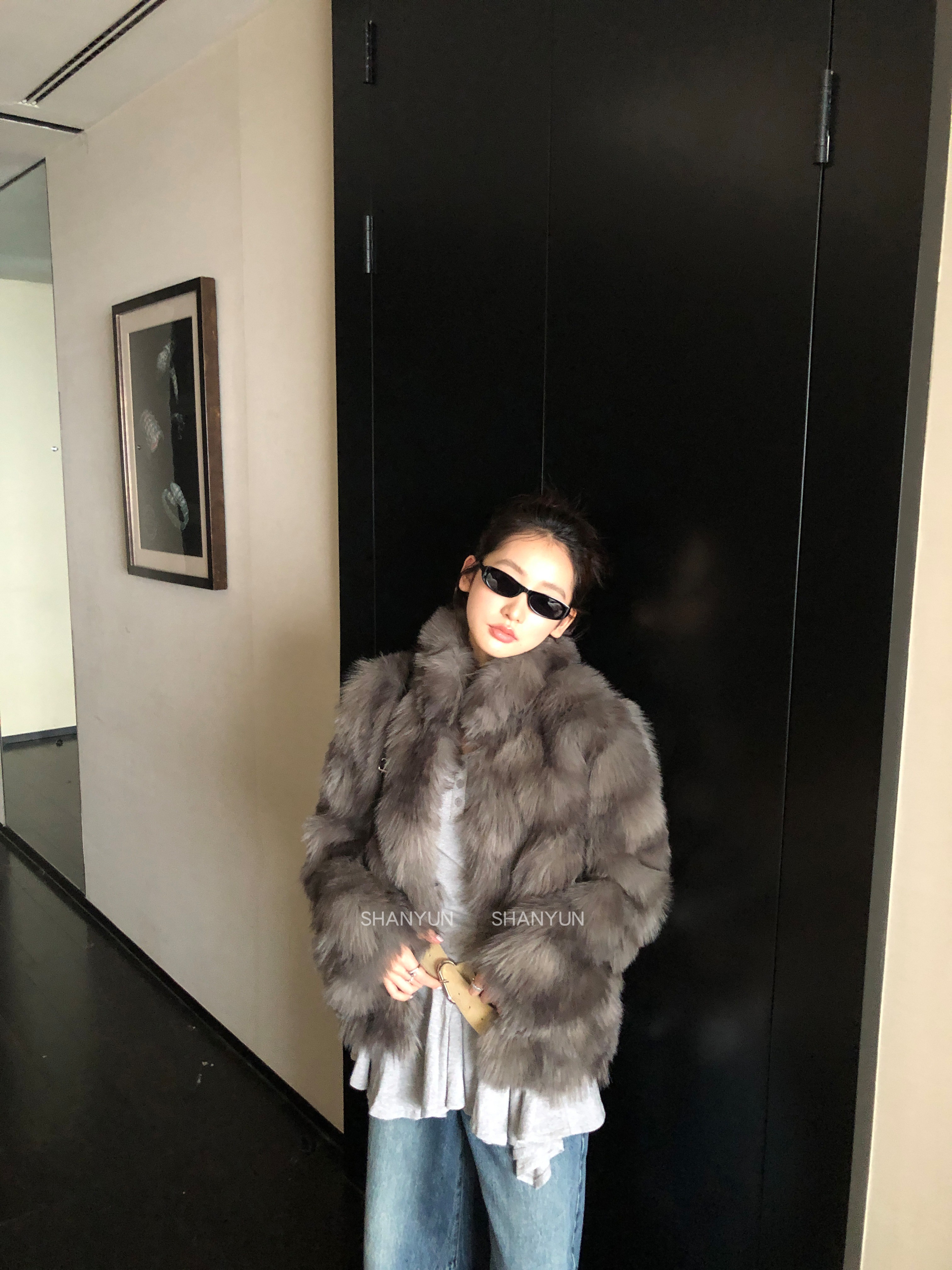 崇福衫韵“幻影柔狐”仿狐狸毛环保皮草高级贵气冬装毛毛大衣