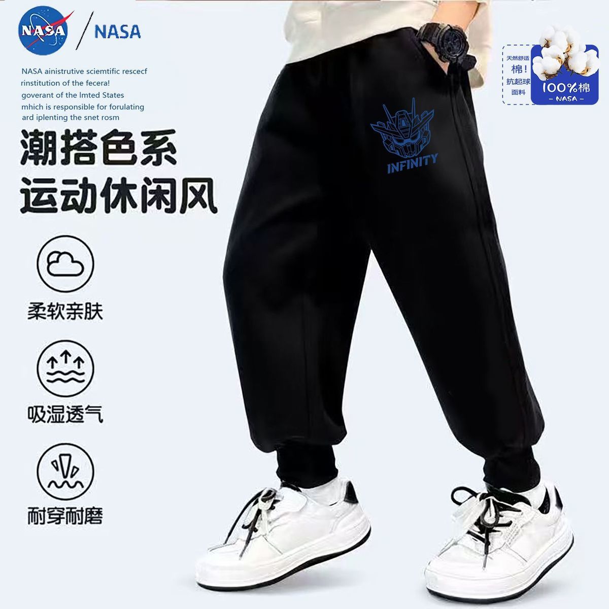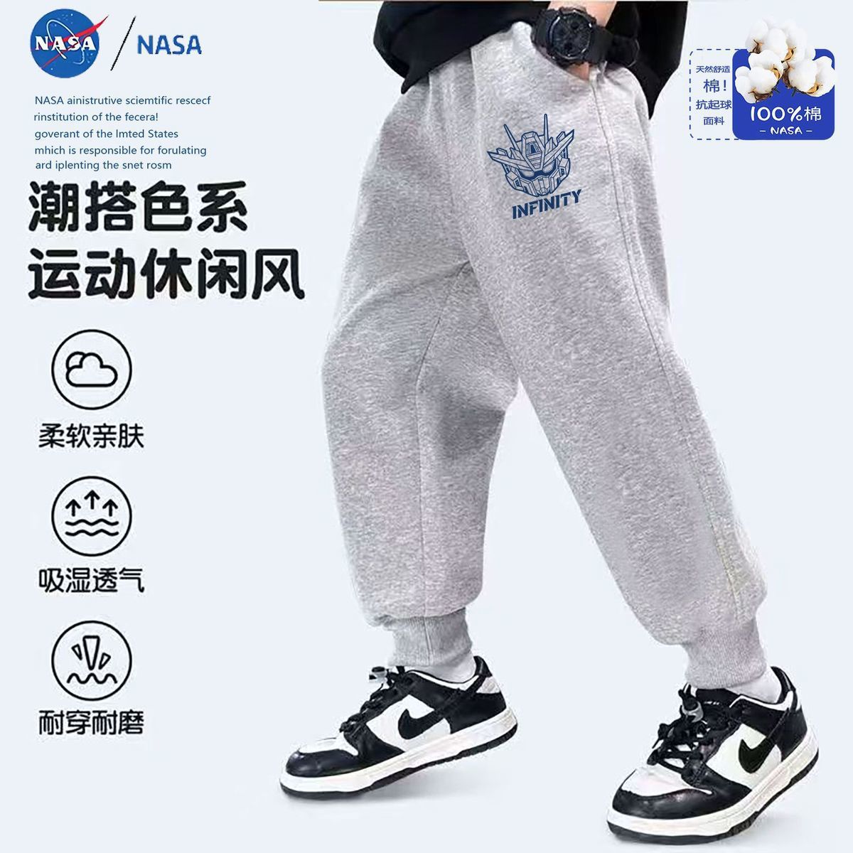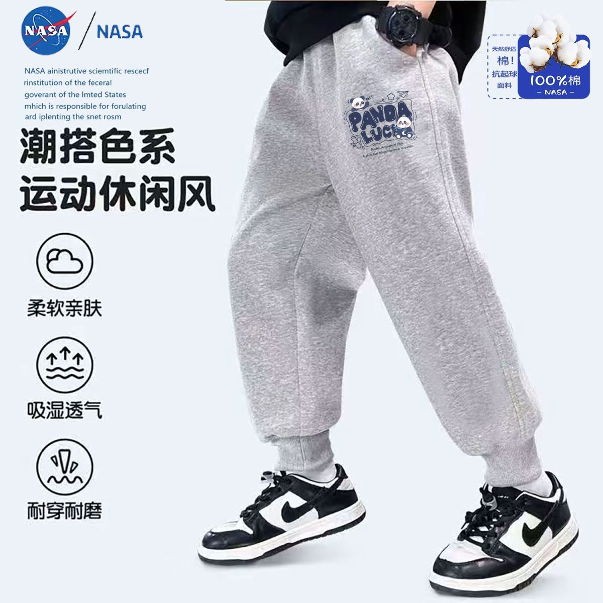 Новые детские длинные брюки с милым принтом панды НАСА, осенние спортивные штаны, утолщенные модные брюки для детей старшего возраста
