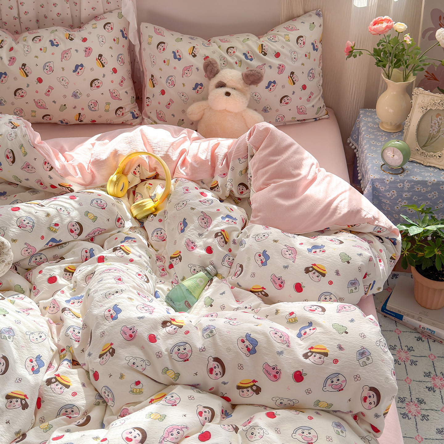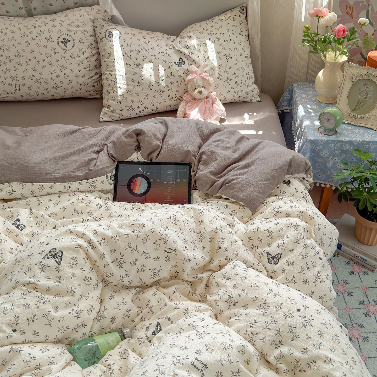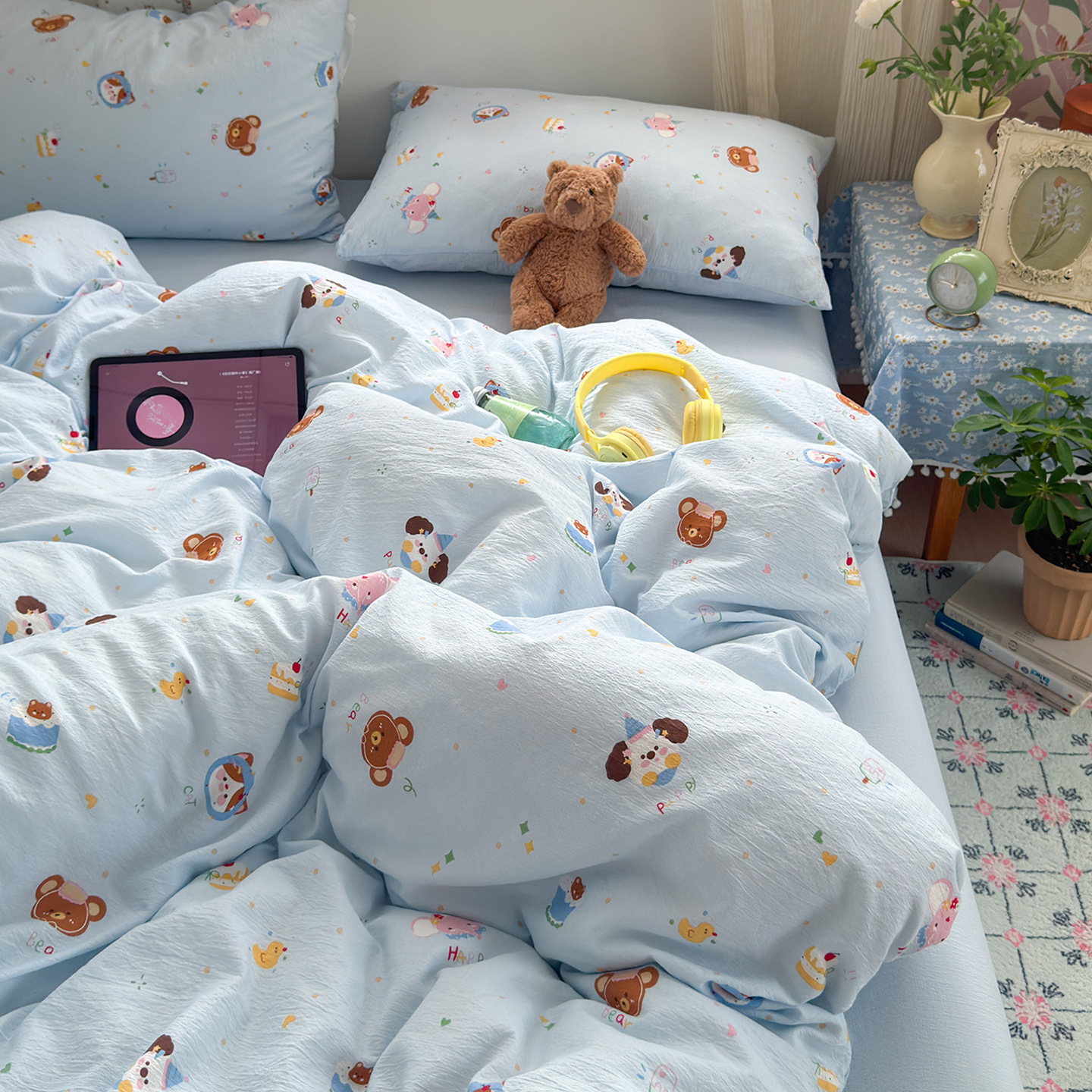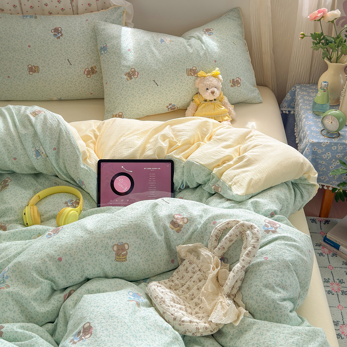Аутентичный комплект из четырех предметов для кровати класса А из чистого хлопка, двухслойная пряжа для матери и ребенка, простыни для сна, пододеяльник, комплект из трех предметов для общежития