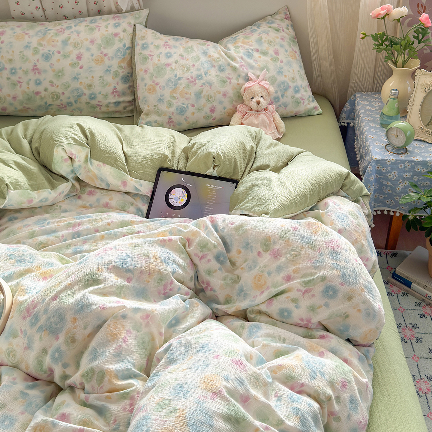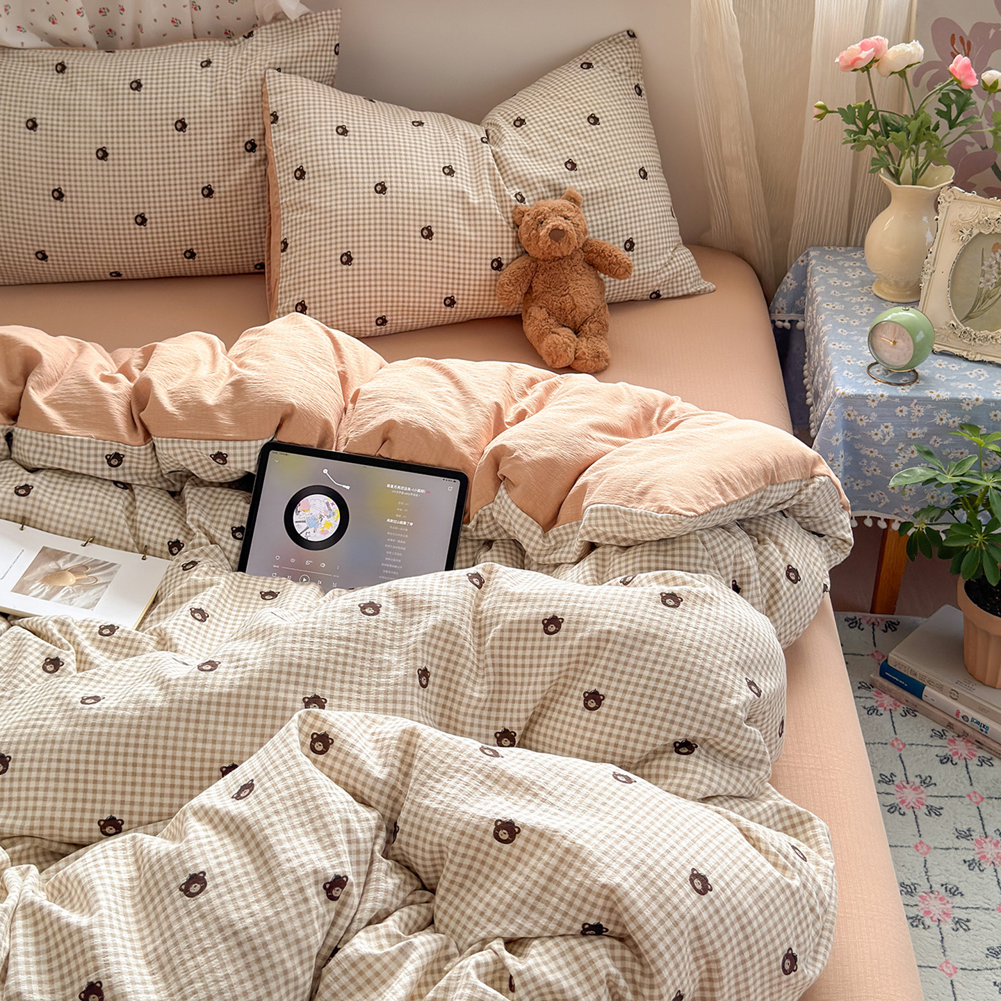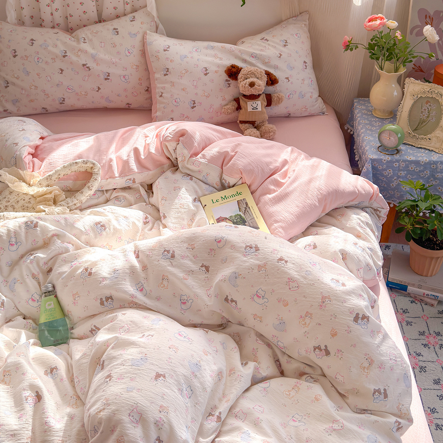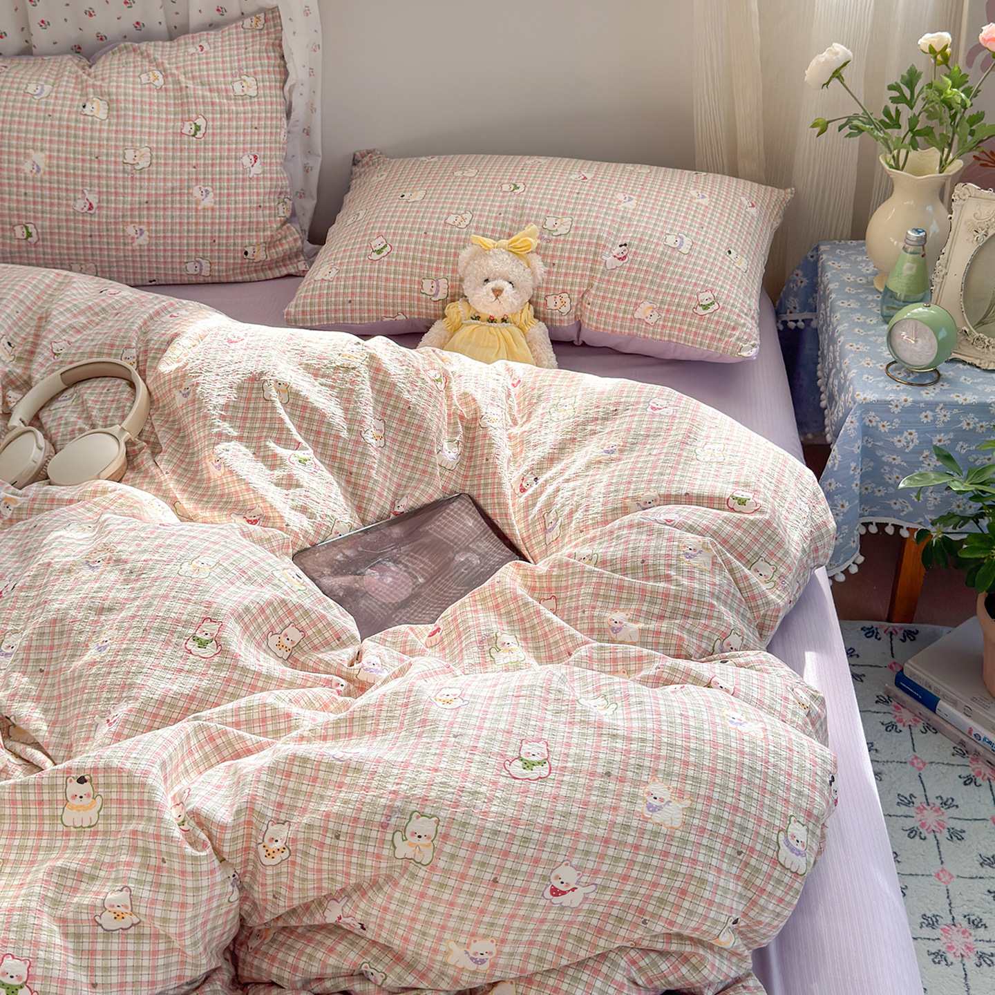 Аутентичный комплект из четырех предметов для кровати класса А из чистого хлопка, двухслойная пряжа для матери и ребенка, простыни для сна, пододеяльник, комплект из трех предметов для общежития