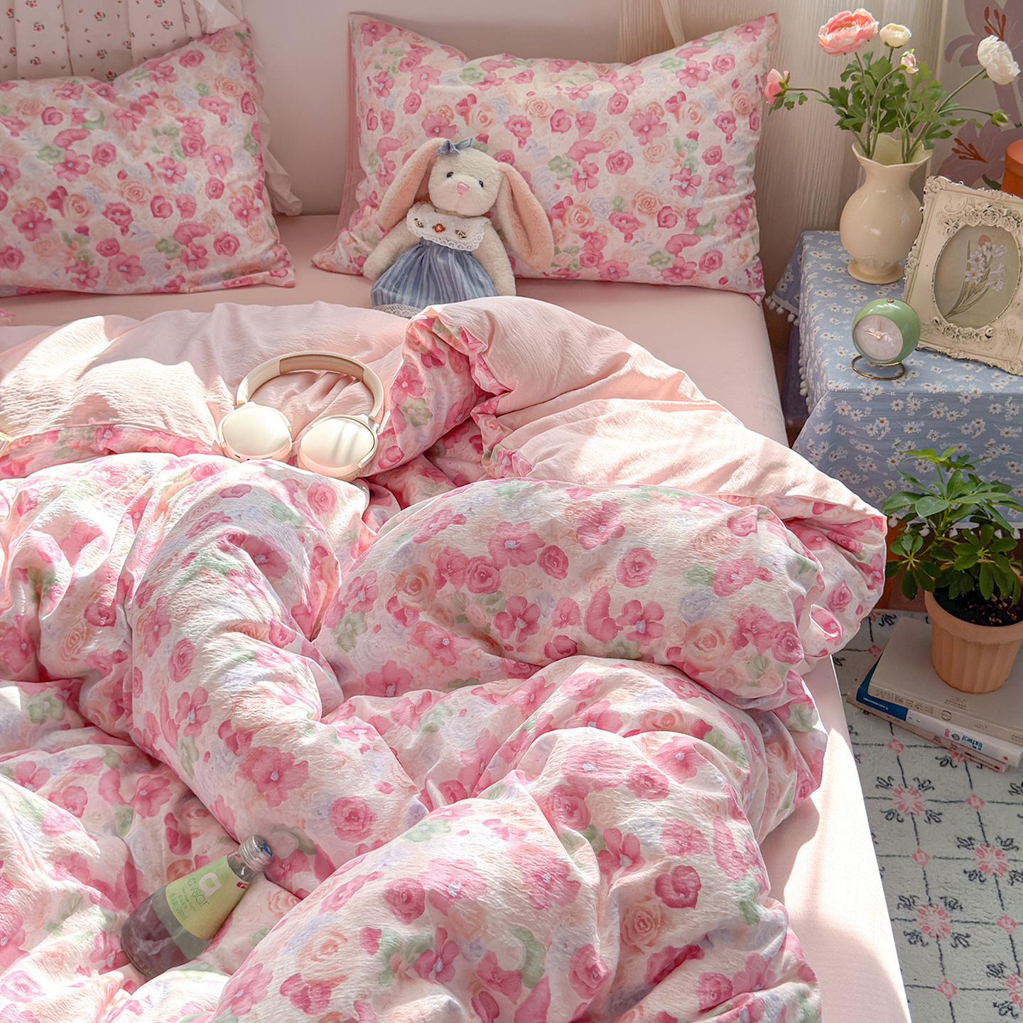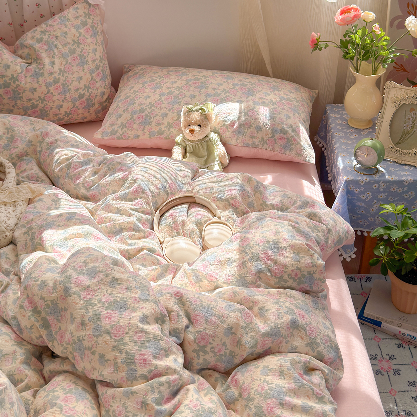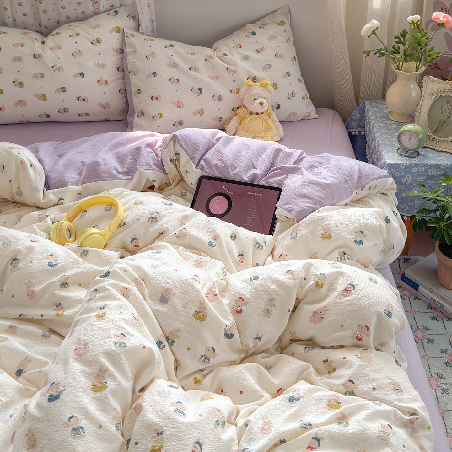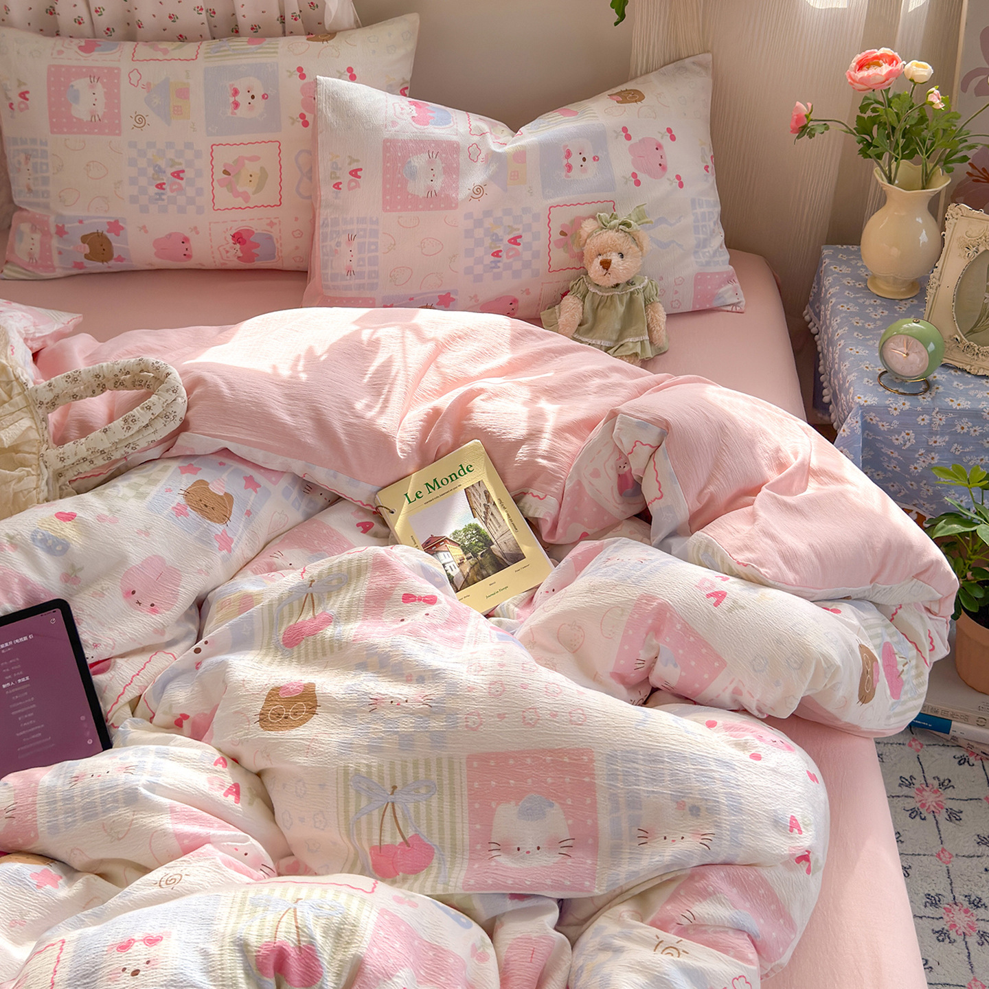 Аутентичный комплект из четырех предметов для кровати класса А из чистого хлопка, двухслойная пряжа для матери и ребенка, простыни для сна, пододеяльник, комплект из трех предметов для общежития