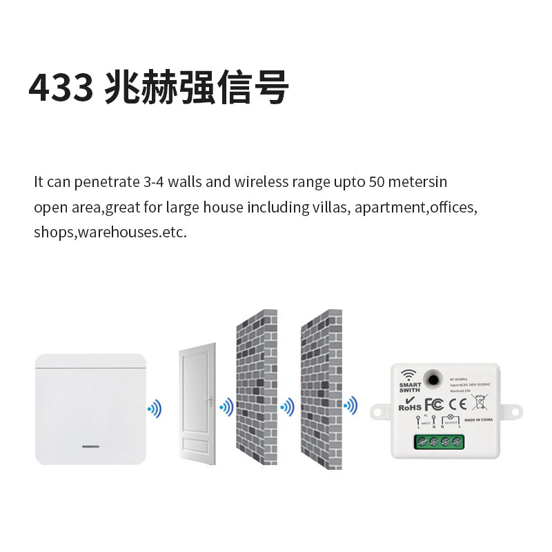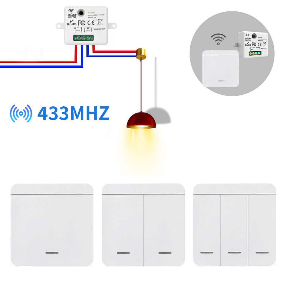Беспроводной трансграничный выключатель дистанционного управления, не требует проводки, прост в установке, запчасти для модификации, устройство 433 МГц для включения/выключения, интеллектуальное управление освещением и бытовой техникой.