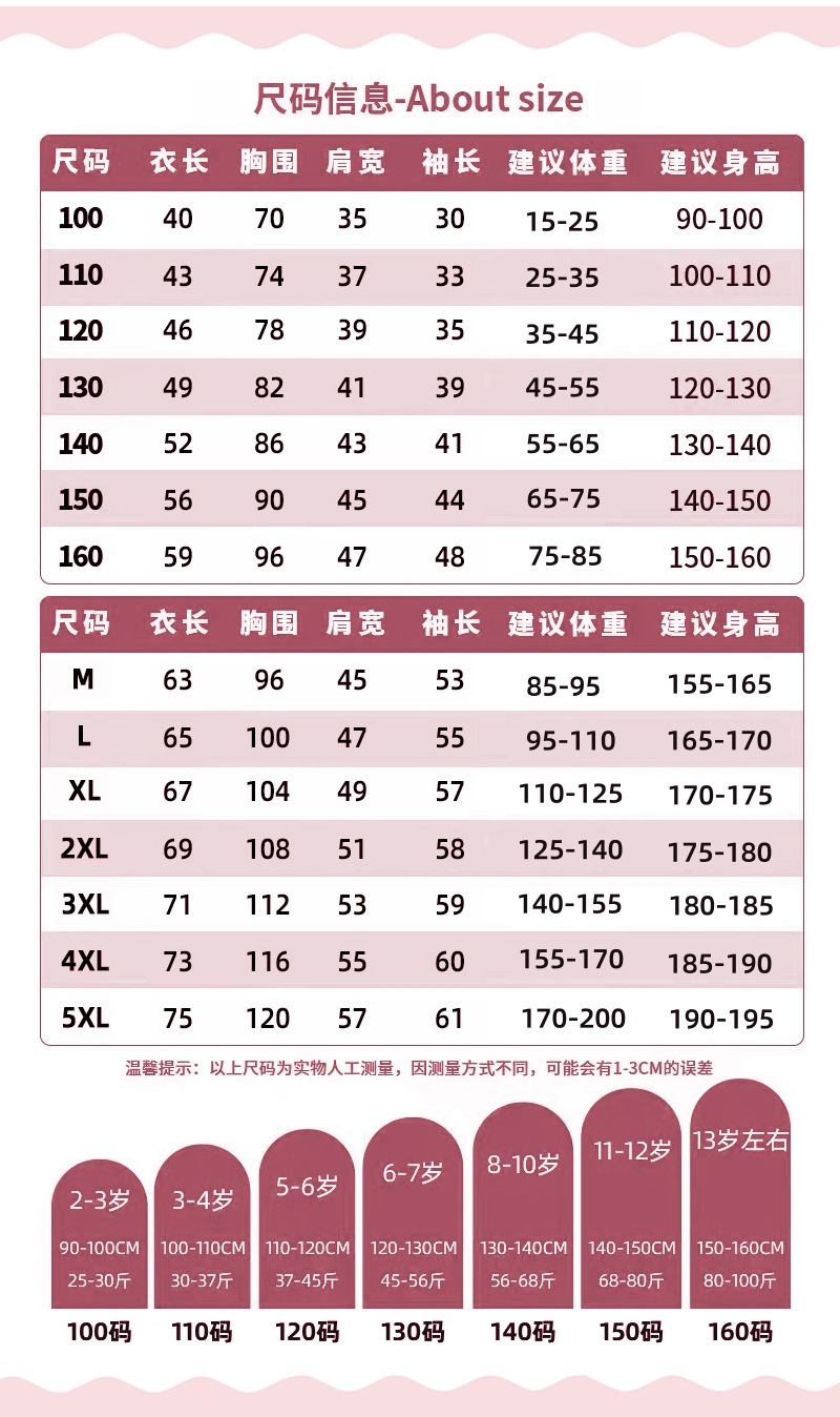 100 см; 110 см; 120 см; 130см; 140см; 150 см; 160см