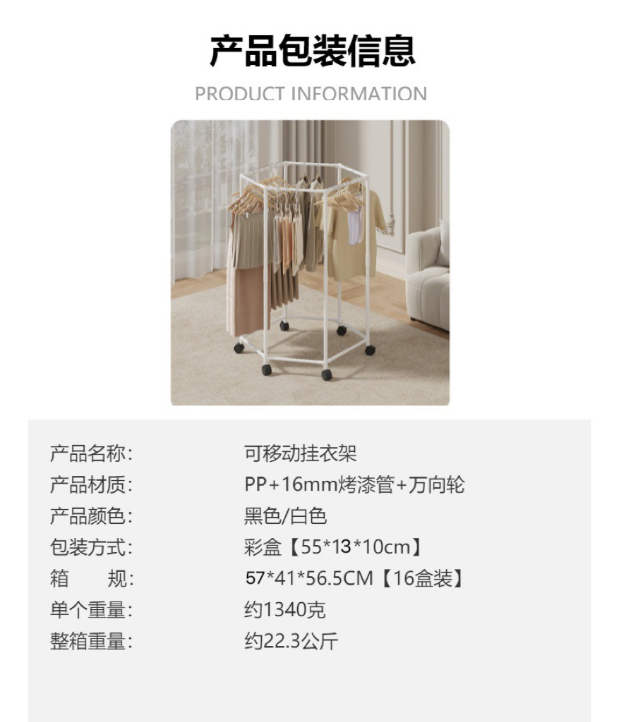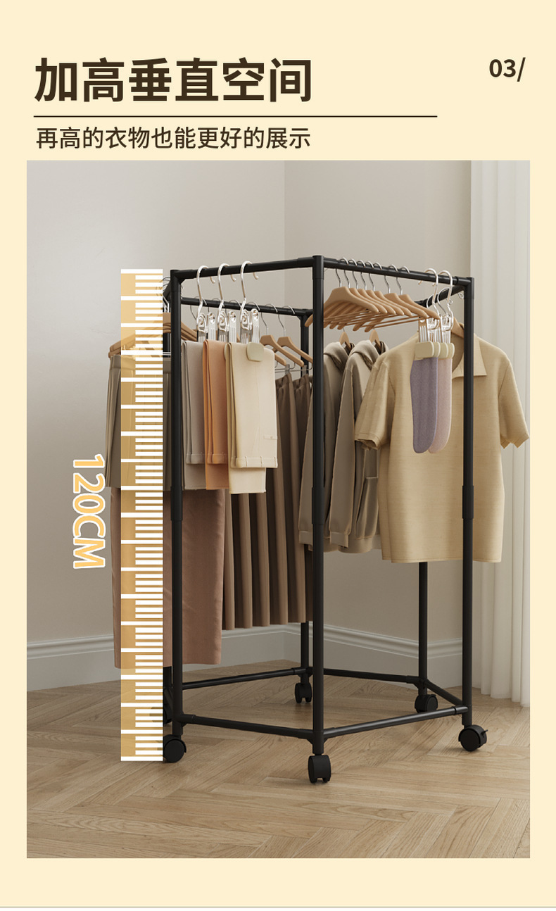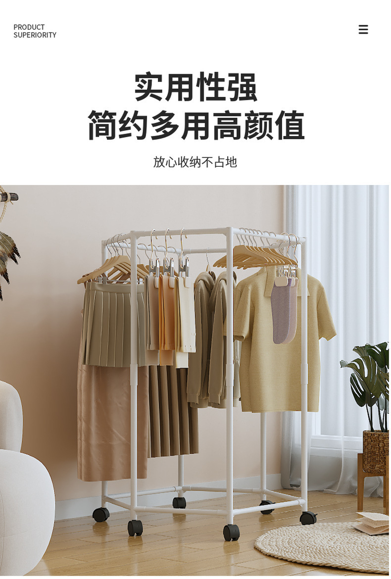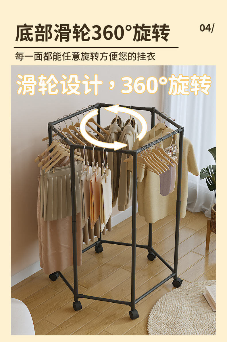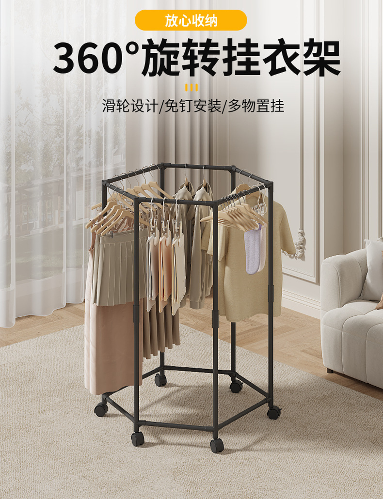 跨境日用品晾衣架六边形落地式简易旋转衣架多功能可移动衣服收纳