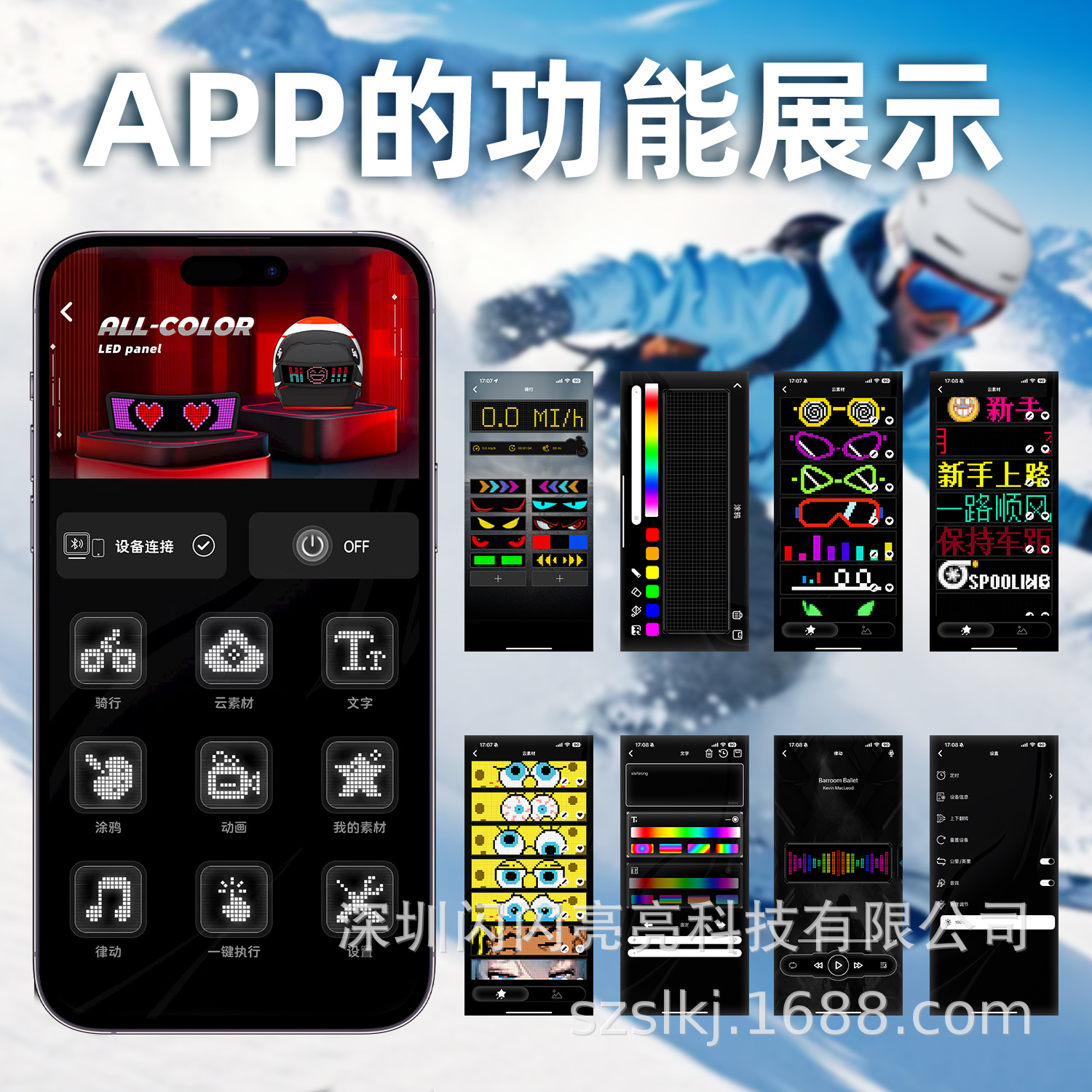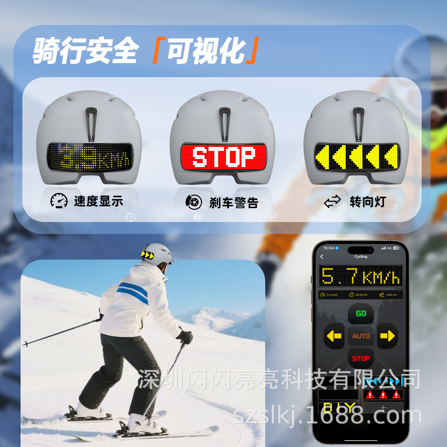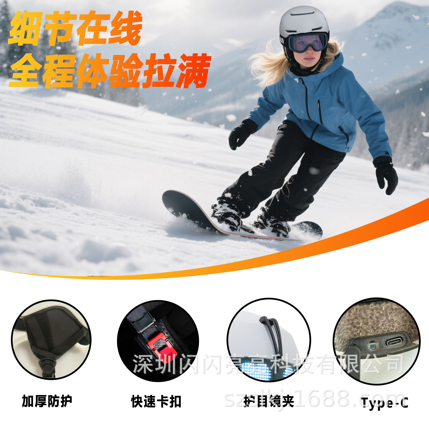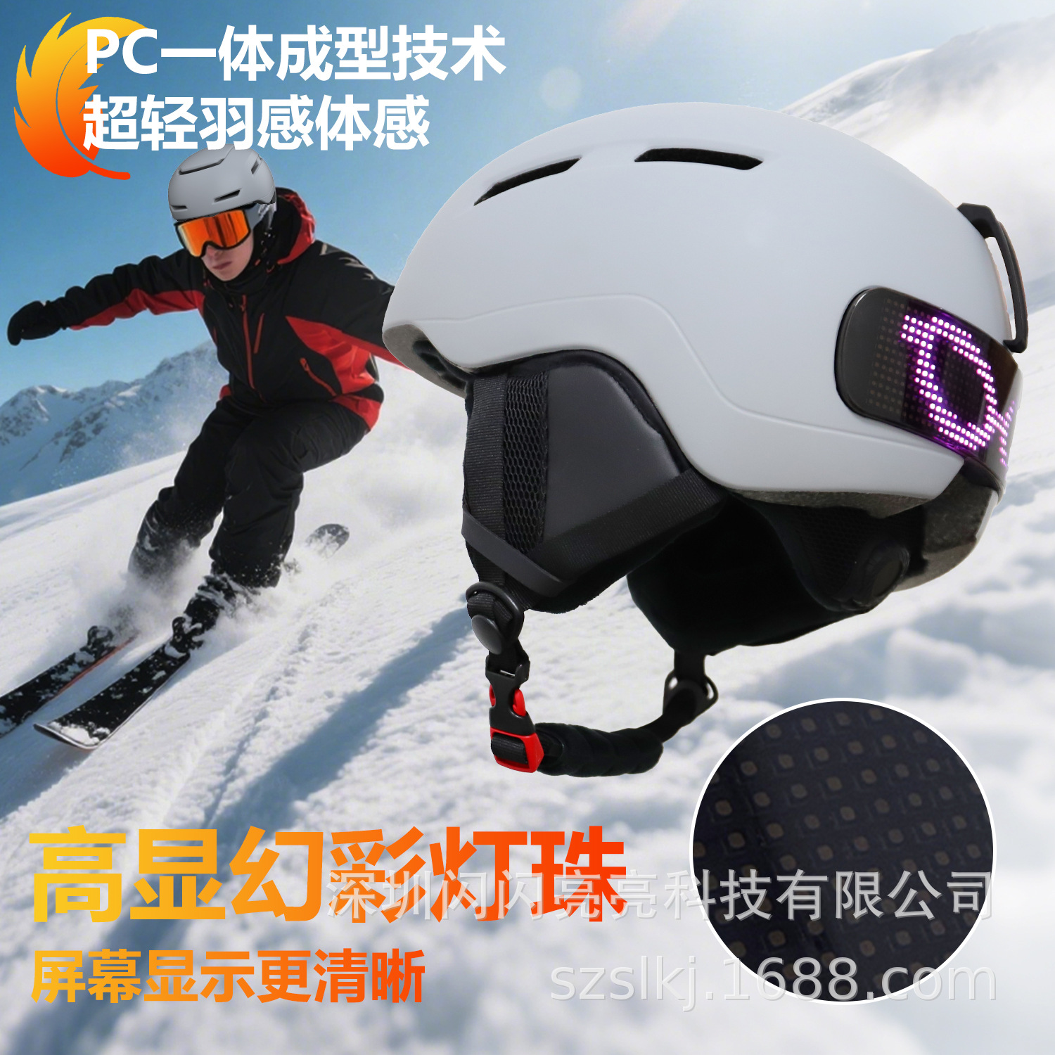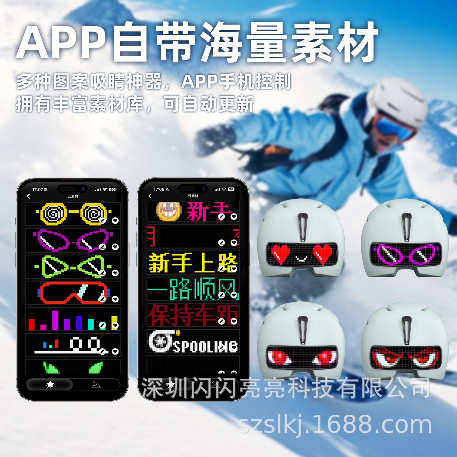 2025年新款滑雪头盔带显示屏,内置丰富图案,可遥控/手机APP双控制,自带高清幻彩灯珠,让滑行更有趣,感兴趣的老板咨询客服!