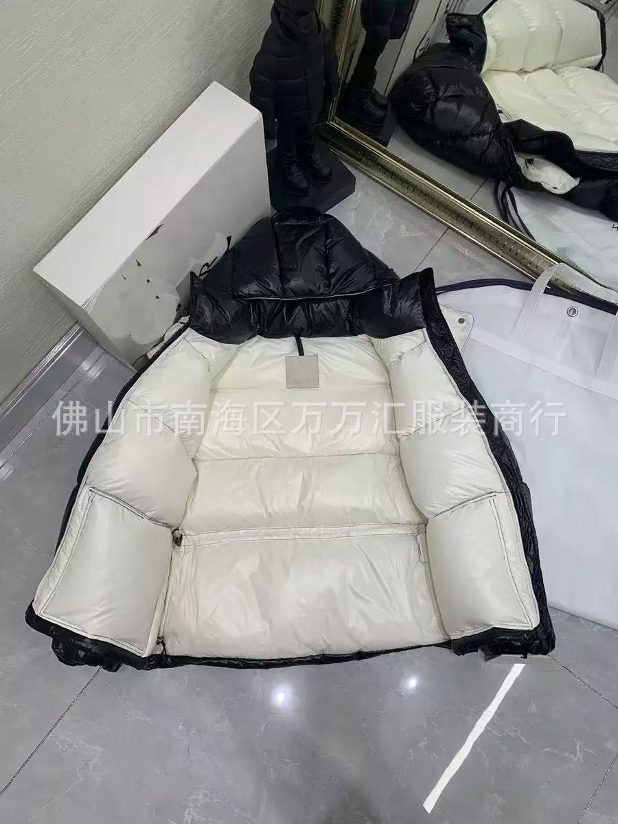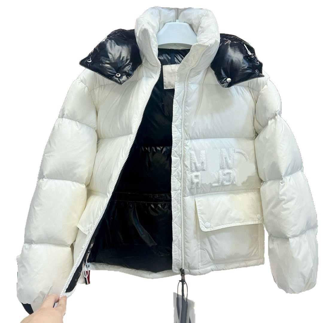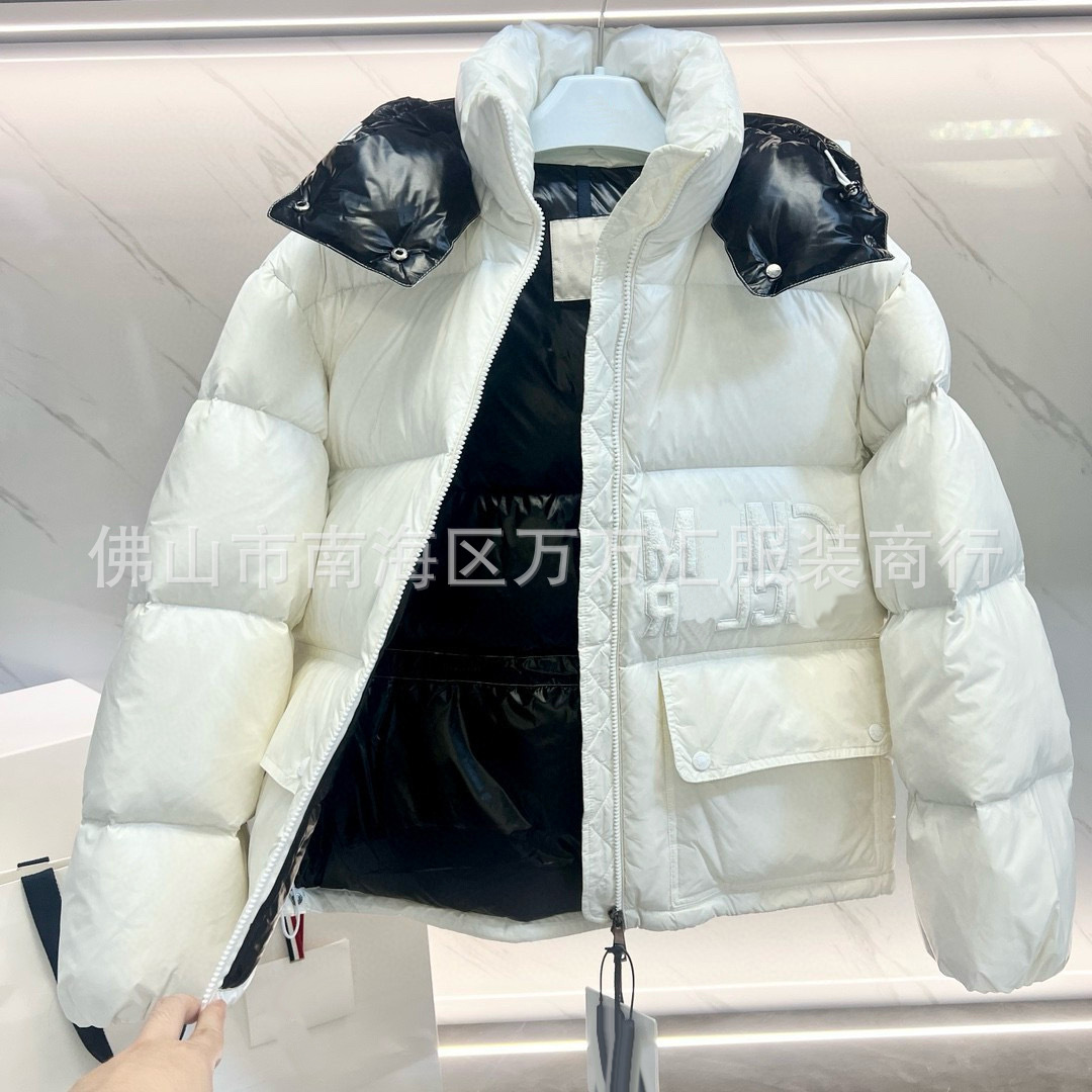 高品质撞色拼接加厚面包羽绒服新款冬季白鹅绒字母连帽保暖外套女