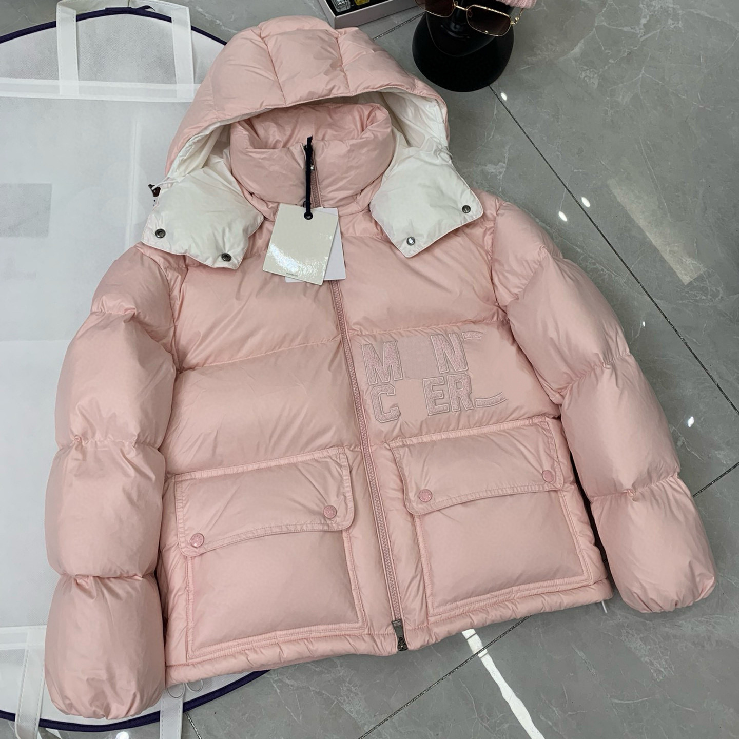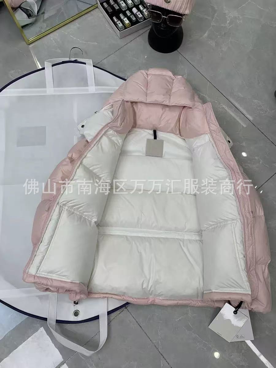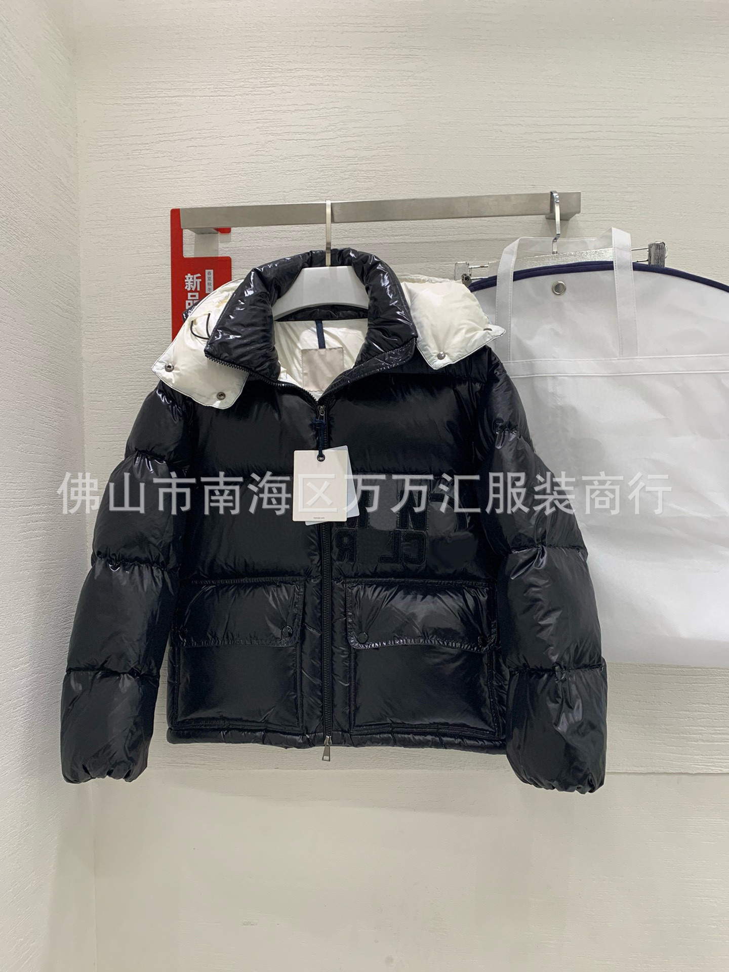 高品质撞色拼接加厚面包羽绒服新款冬季白鹅绒字母连帽保暖外套女