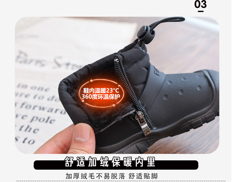 运动风防水儿童雪地靴加绒加厚男童大棉鞋宝宝冬季棉鞋女童雪地棉